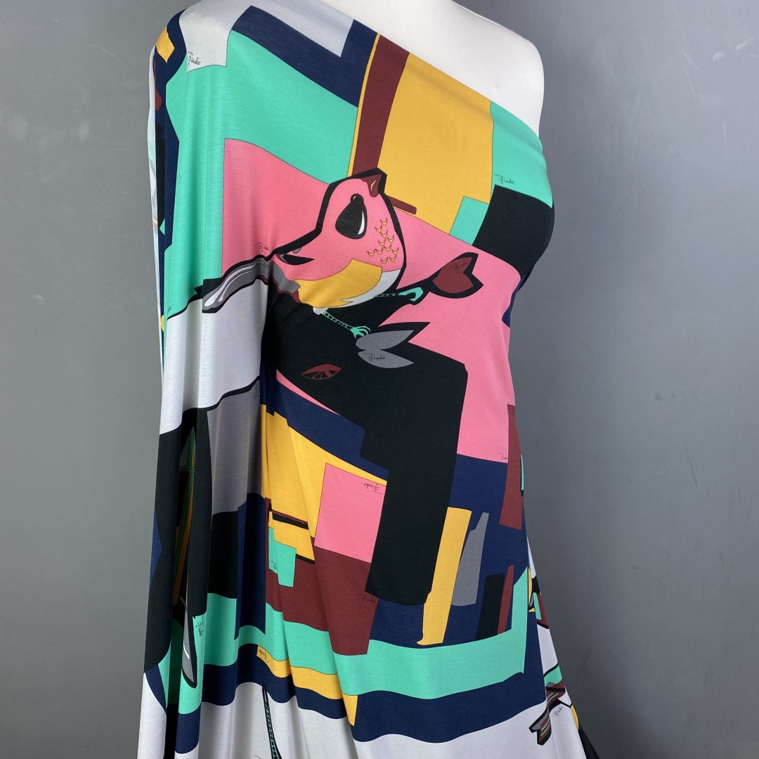 Abstract Tech Nature is a super soft rayon elastane, 145cm wide. This stunning cloth is from a very well known international fashion designer. This fabric is perfect for long maxi dresses, jumpsuits, trousers, leggings, skirts, tops, kaftans and so much more. The print will create a unique fancy summer dress and/ or evening wear. A pleasure to sew with and has a soft smooth feel to it. Our washing recommendations for this fabric are dry clean only or if unsure, test-wash a small 10x10cm square in cool water at 30 degrees first.