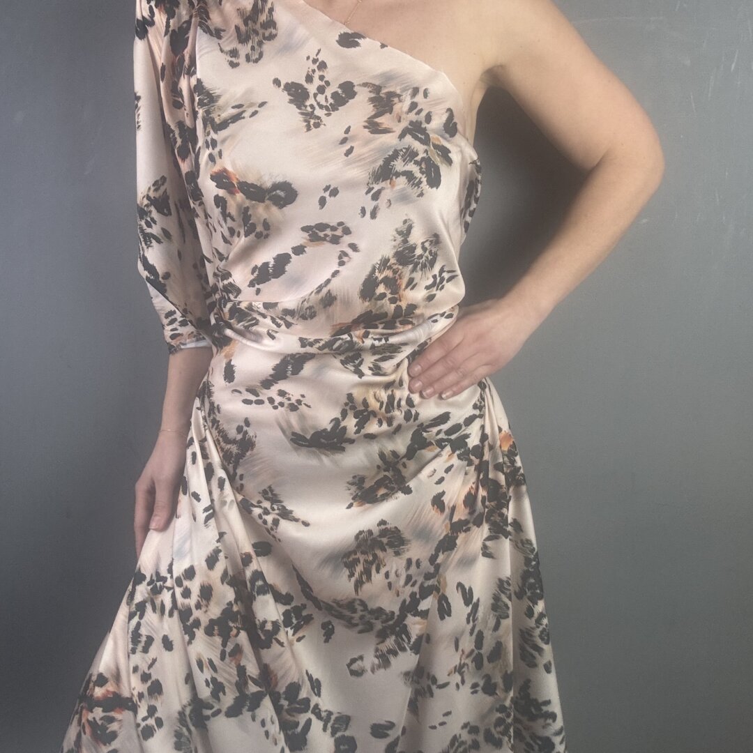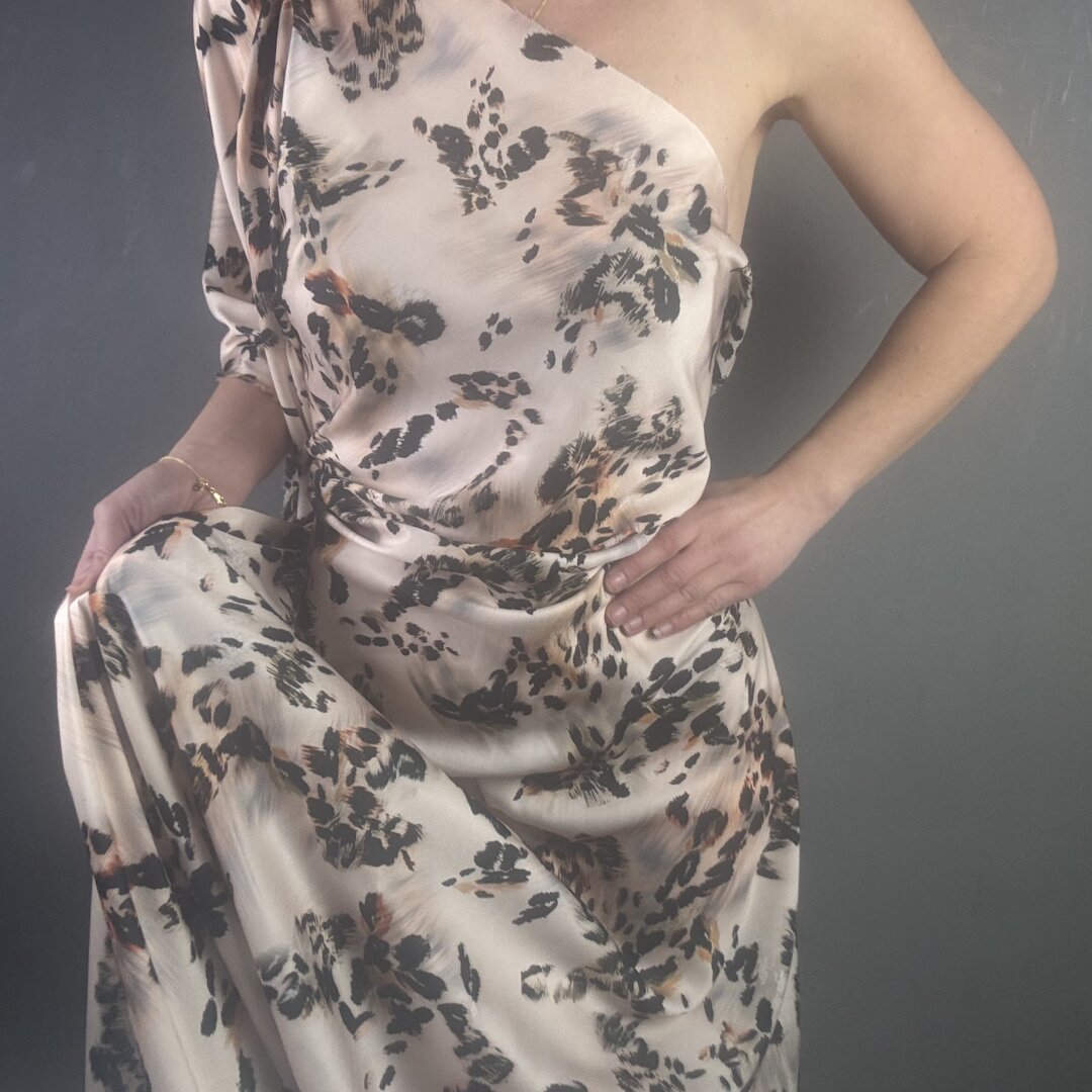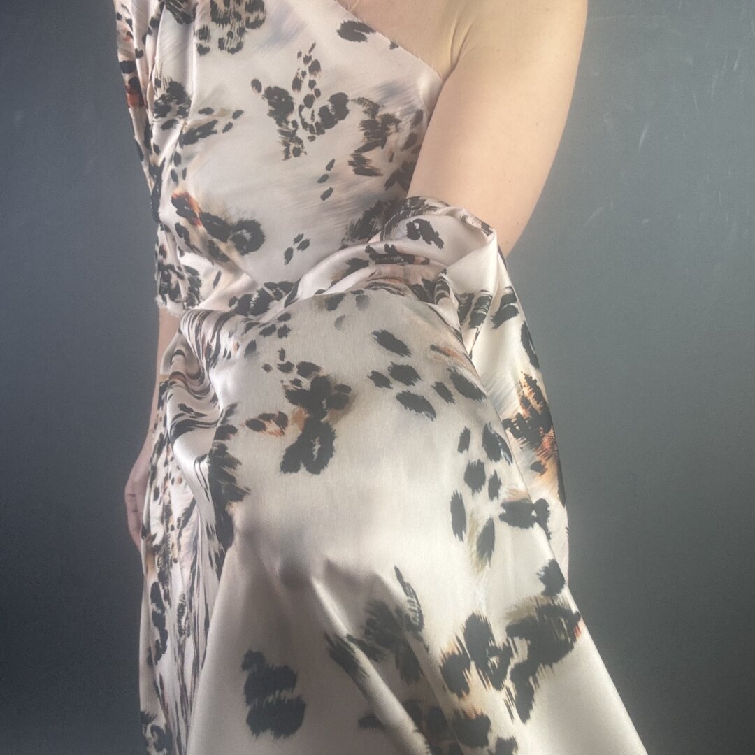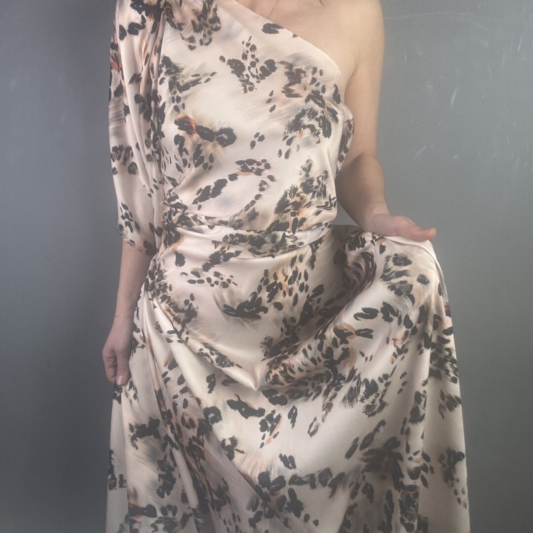 Animal De Chine is 148cm wide. You can’t go wrong with an animal print crepe de chine with a beautiful fluid drape. This fabric is perfect for swishy dresses, wrap skirts, wide leg trousers, playsuits, jumpsuits, tops, beach wraps and so much more.