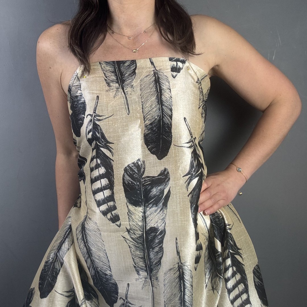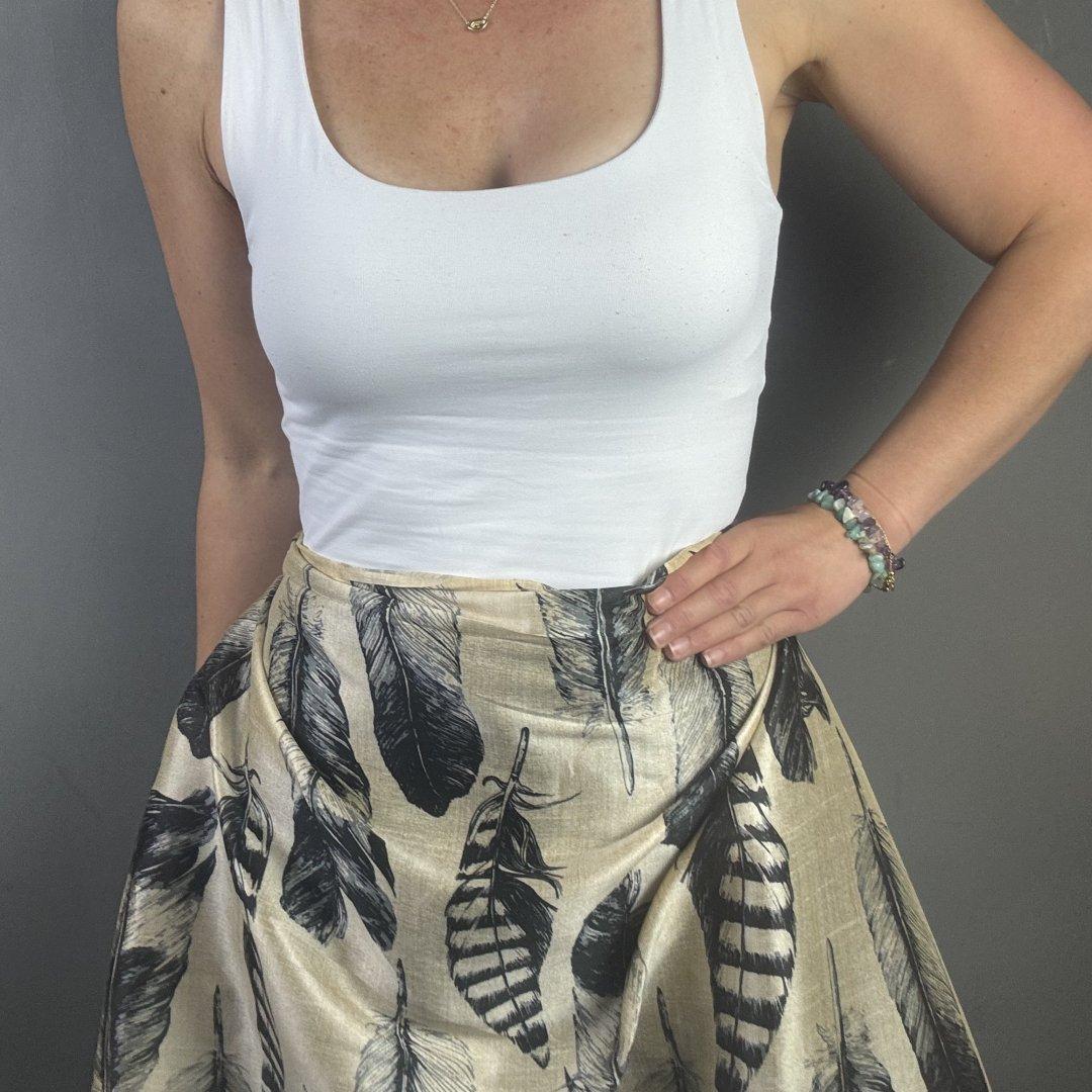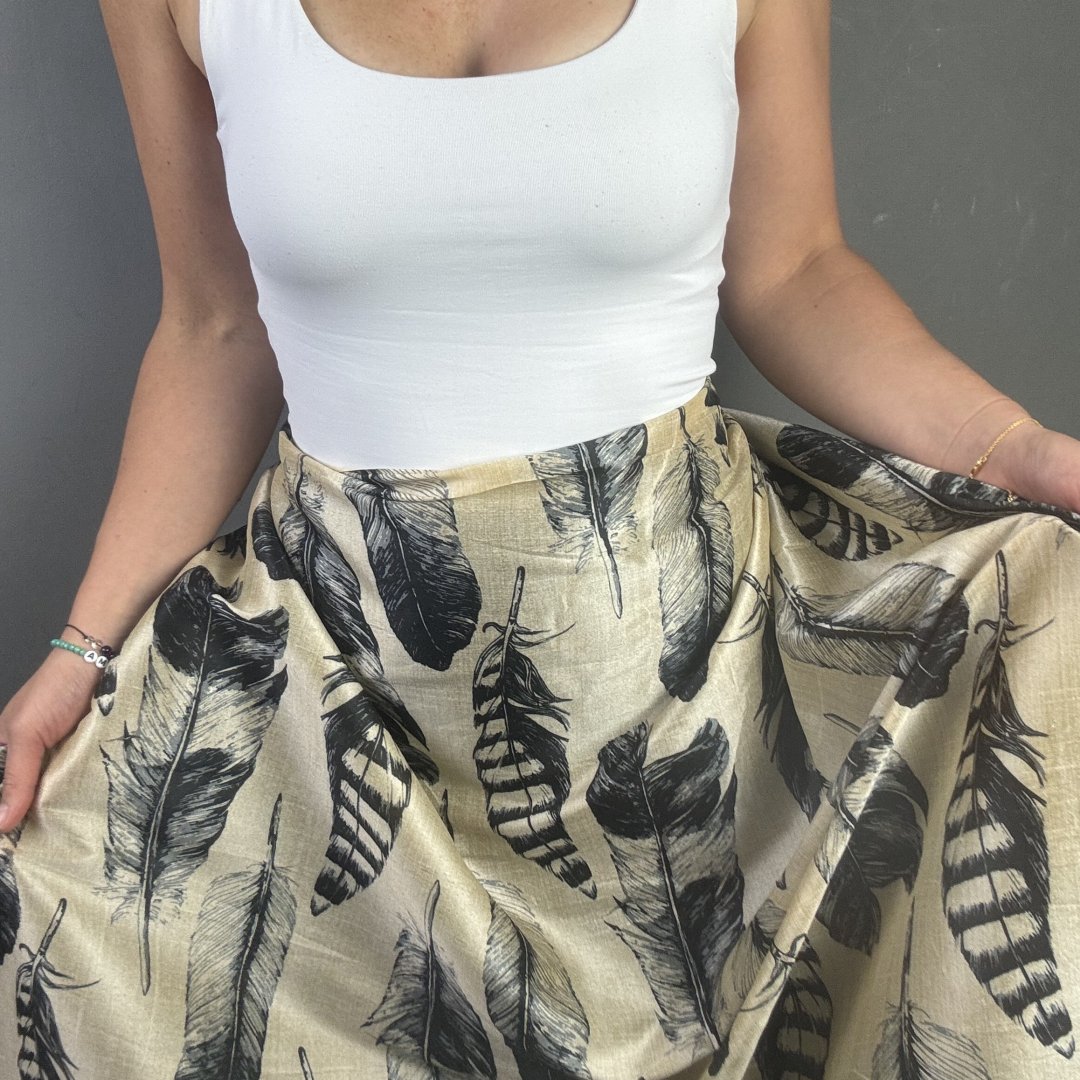 Bamboo Feathers is 20% Bamboo / 40% Viscose / 40% polyester, 110cm wide. This is a light weight, breathable fabric that is perfect for shift dresses, circler skirts, pleated skirts, shirts, tunic tops, straight skirts, summer weight jackets, A- line skirts/ dresses and so much more.