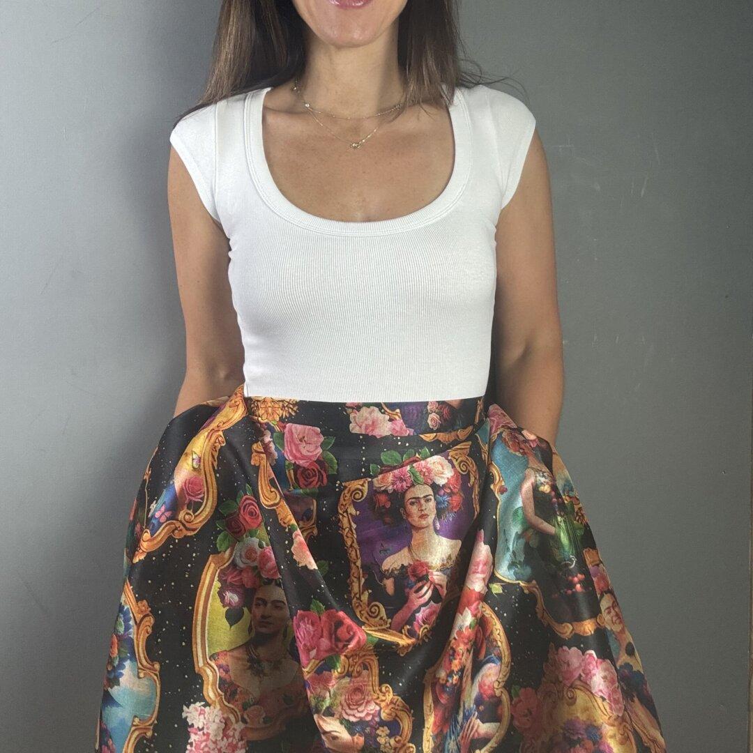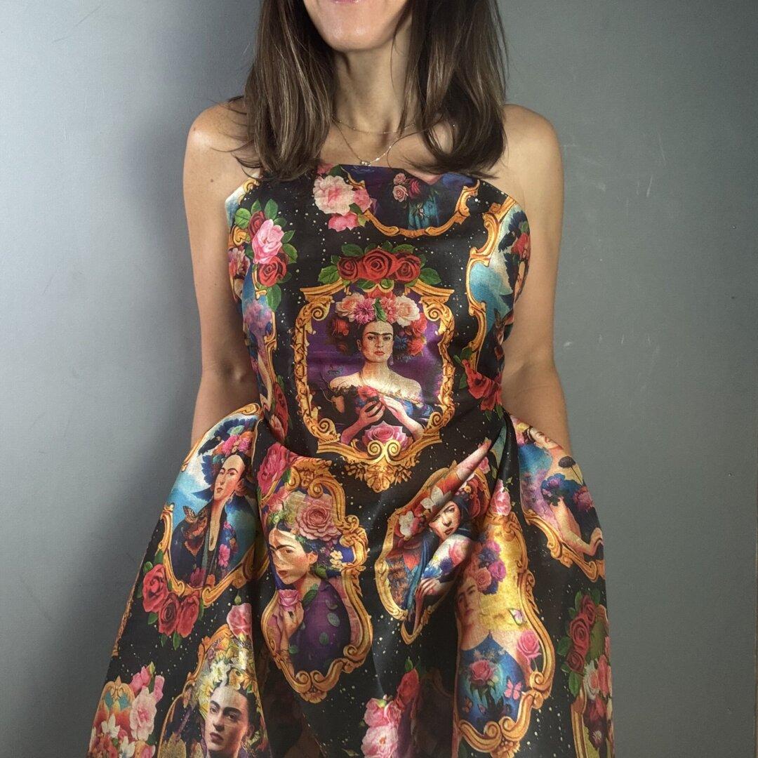 Bamboo Pictures is 20% Bamboo / 40% Viscose / 40% polyester, 110cm wide. This is a light weight, breathable fabric that is perfect for shift dresses, circler skirts, pleated skirts, shirts, tunic tops, straight skirts, summer weight jackets, A- line skirts/ dresses and so much more.