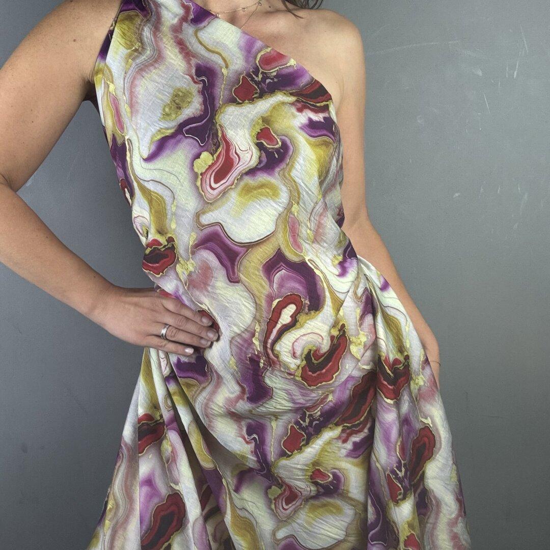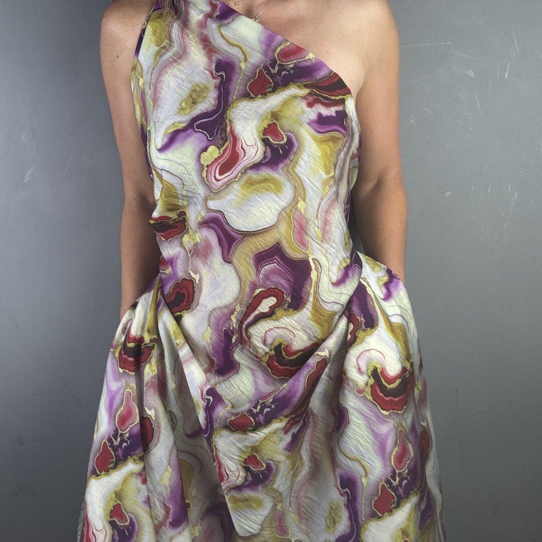 This cloth will be a pleasure to sew and look fabulous in most garments. It’s a busy, colourful fabric that is suitable for day and occasional wear. Enjoy this cloth while stocks last!!!