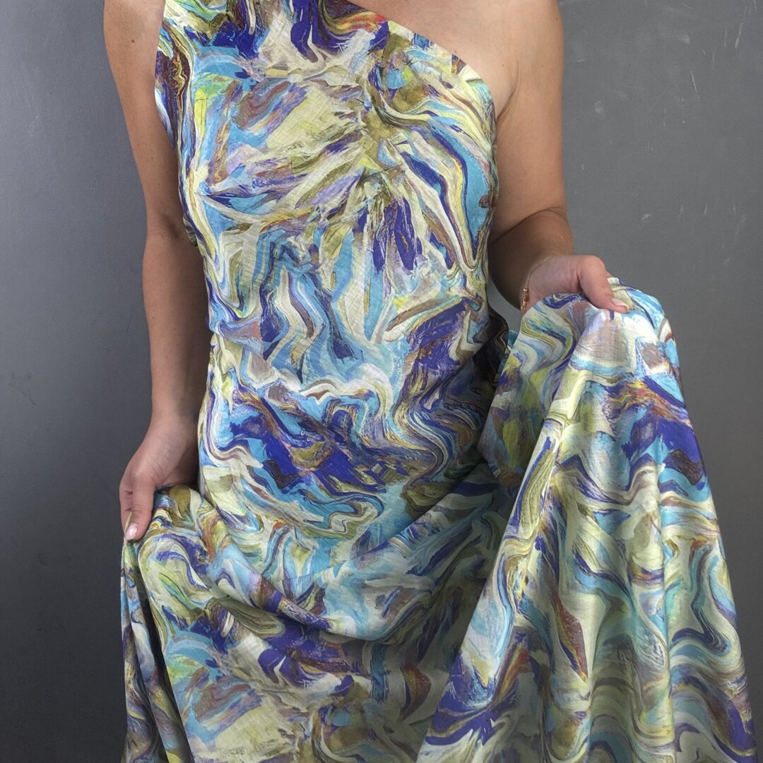This cloth will be a pleasure to sew and look fabulous in most garments. It’s a busy, colourful fabric that is suitable for day and occasional wear. Enjoy this cloth while stocks last!!!
