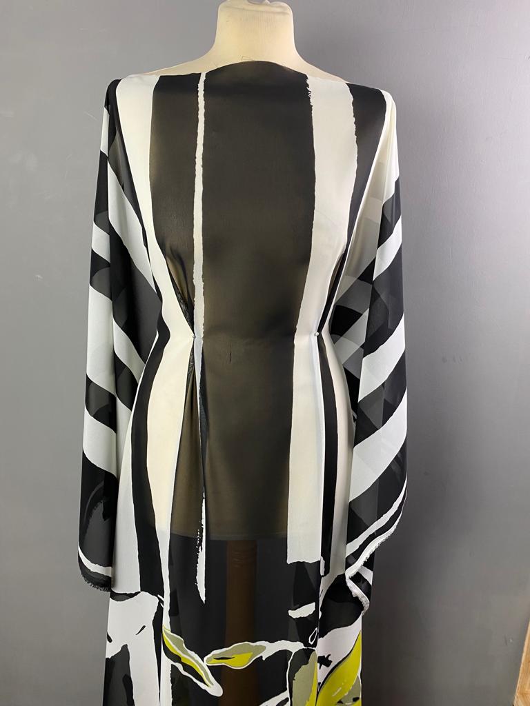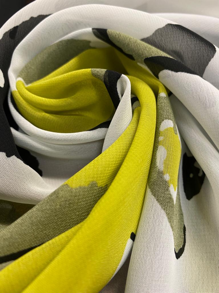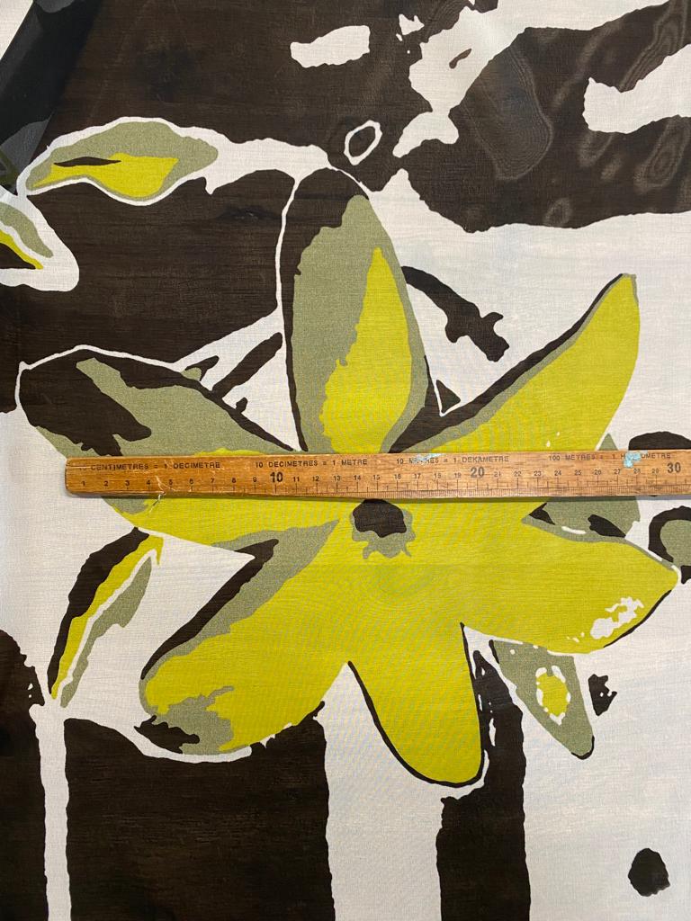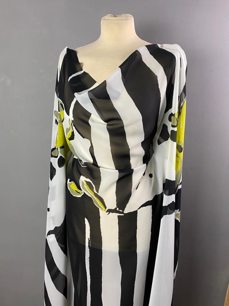 Beatle Juice Panel Lime is a polyester chiffon, 145cm wide. This amazing cloth is sold in panels measuring approximately 115cm. Polyester chiffon is a transparent cloth which will require a lining depending on what you are making. Perfect for day to evening wear, dresses, tops, kaftans and more. Get creative and enjoy this one of a kind cloth. To purchase one panel type 1 in the quantity box, to purchase two panels type 2 in the quantity box, and so on.