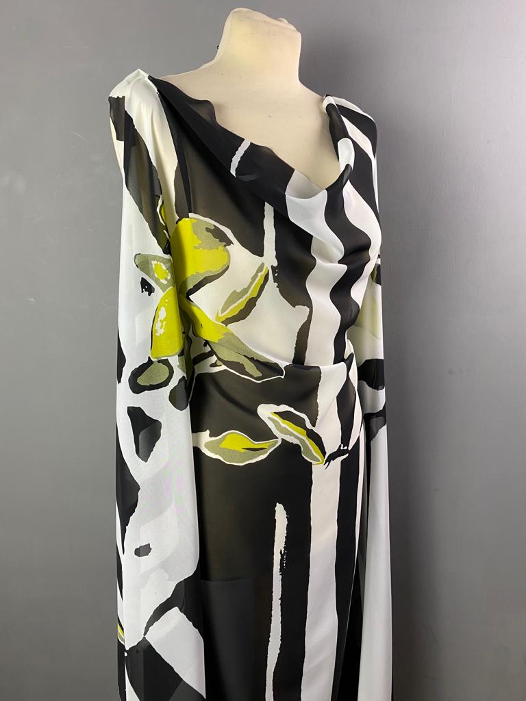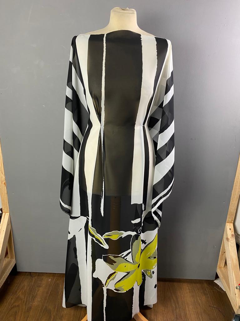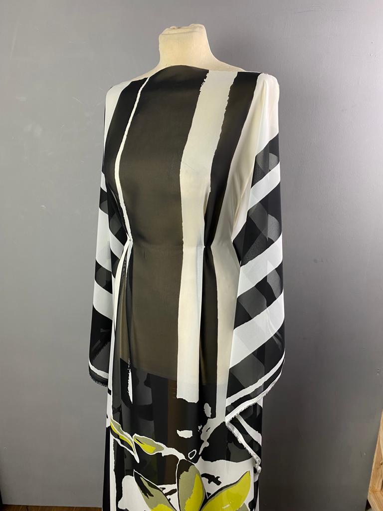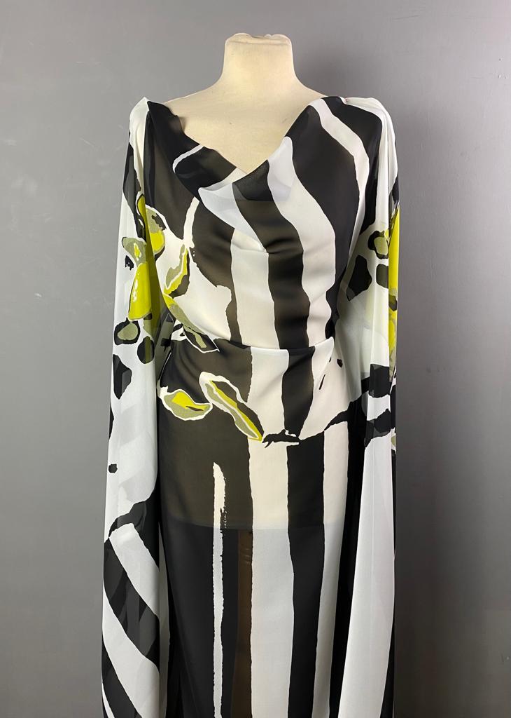 Beatle Juice Panel Lime is a polyester chiffon, 145cm wide. This amazing cloth is sold in panels measuring approximately 115cm. Polyester chiffon is a transparent cloth which will require a lining depending on what you are making. Perfect for day to evening wear, dresses, tops, kaftans and more. Get creative and enjoy this one of a kind cloth. To purchase one panel type 1 in the quantity box, to purchase two panels type 2 in the quantity box, and so on.