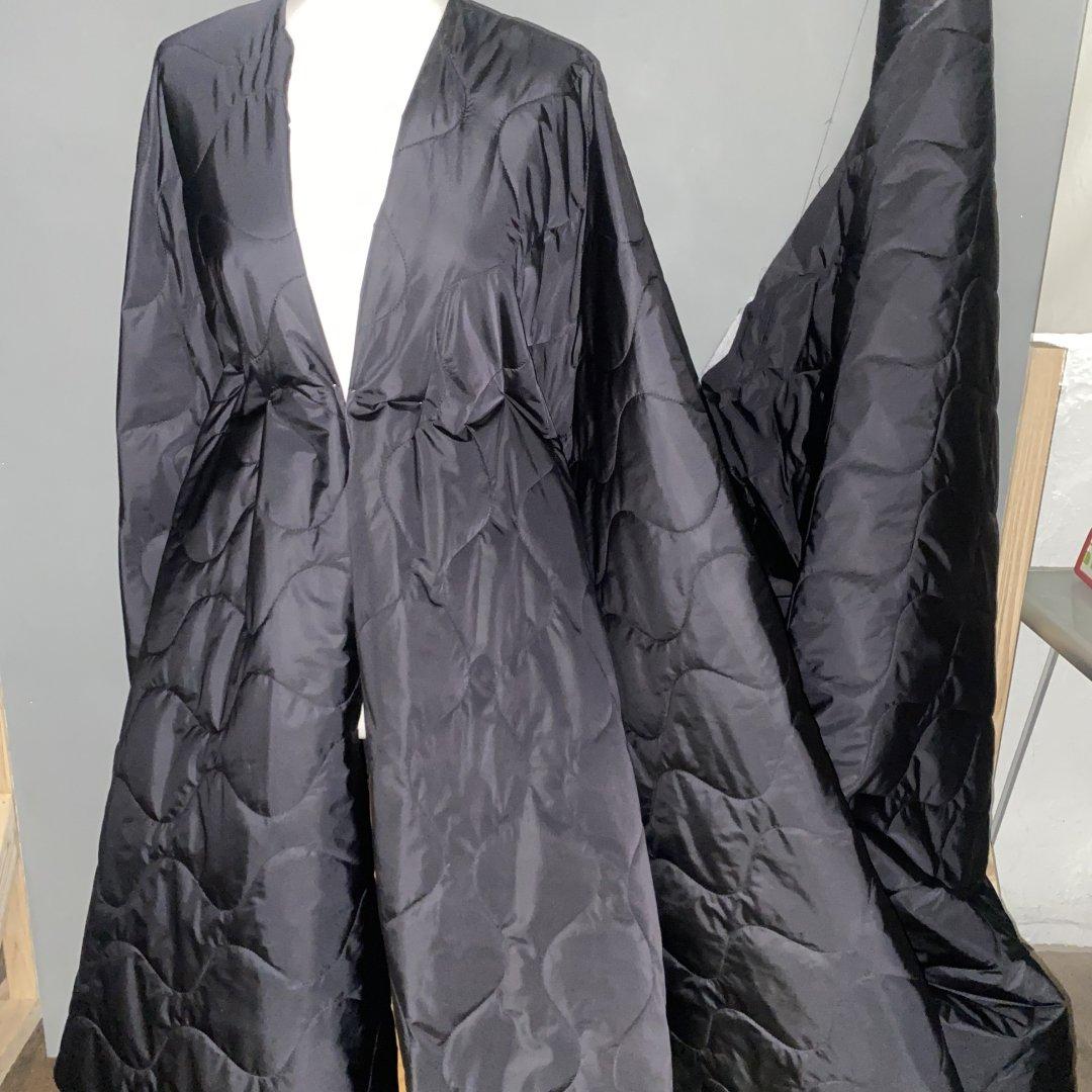 Black Quilted Jacketing is 150cm wide. This is a luxurious, smooth, soft and warm smart/ casual fabric that is ideal for coats and jackets. Little bomber jackets, long sleeping bag coats, gilets, kids jackets, drawstring coats, 3 quarter length coats and more. You can fall inlove with this quilted jacketing because it’s thin and isn’t bulky making this cloth easy to easy and perfect for getting in and out of the car in.