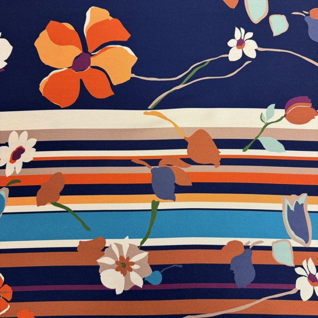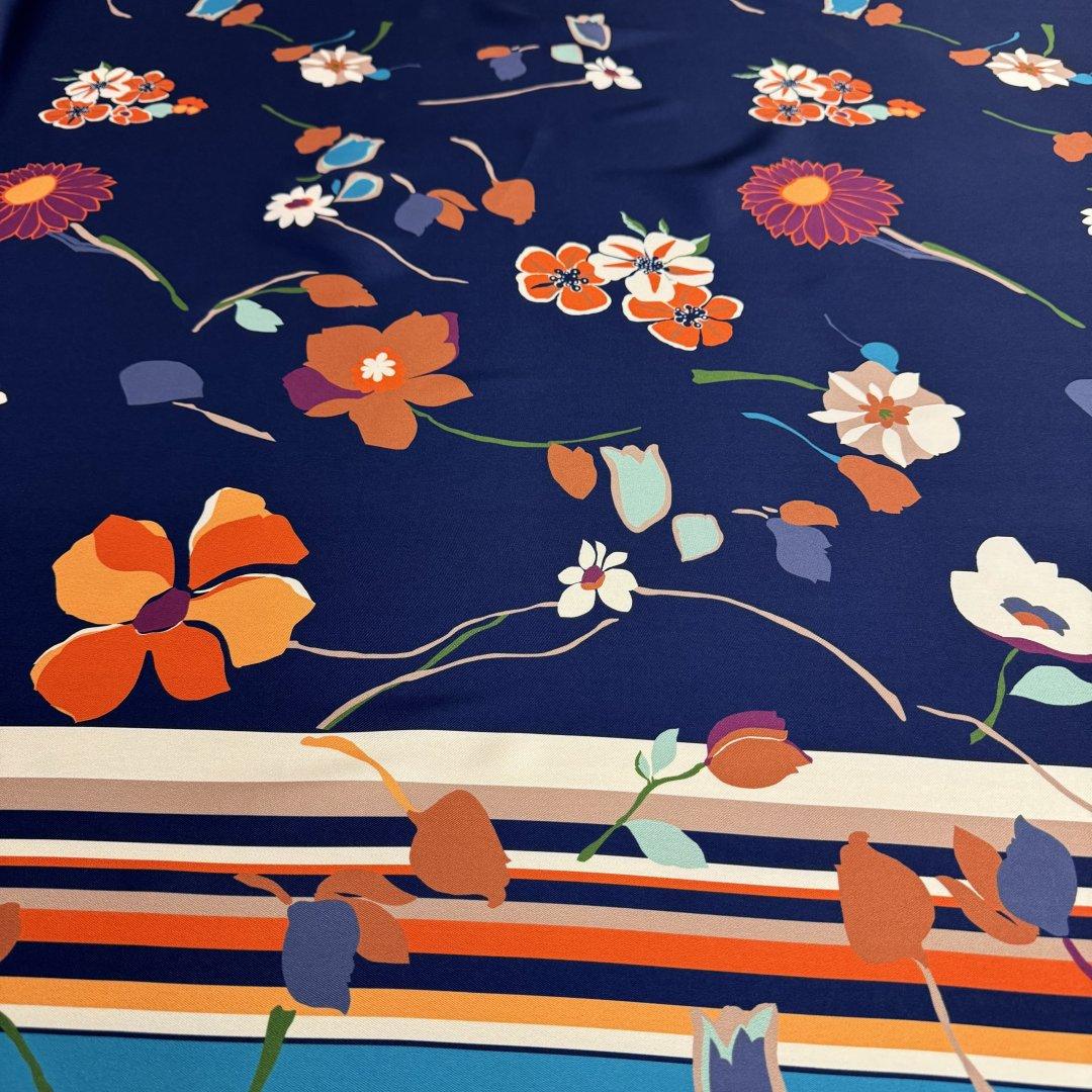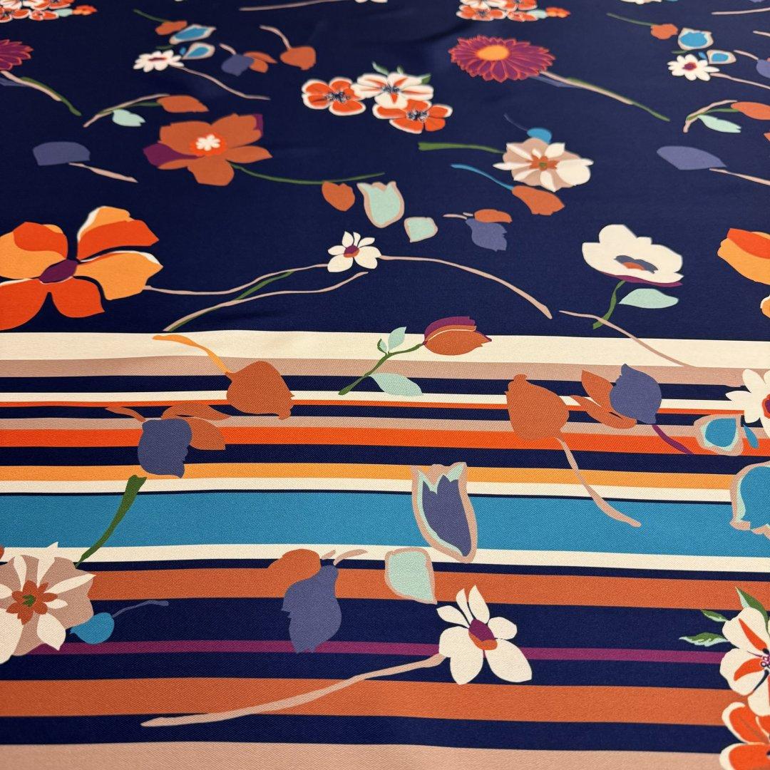 Border Flowers is 145cm wide. This is a light to medium weight polyester perfect for maxi dresses, box pleat skirts, wide leg trousers, light weight jackets, tops, shift dresses, beach wraps and more. A border print is the perfect way to get creative as the choice is yours to where you place the border.