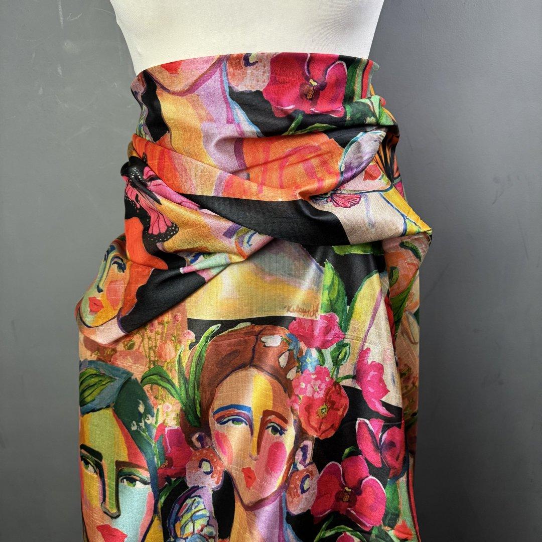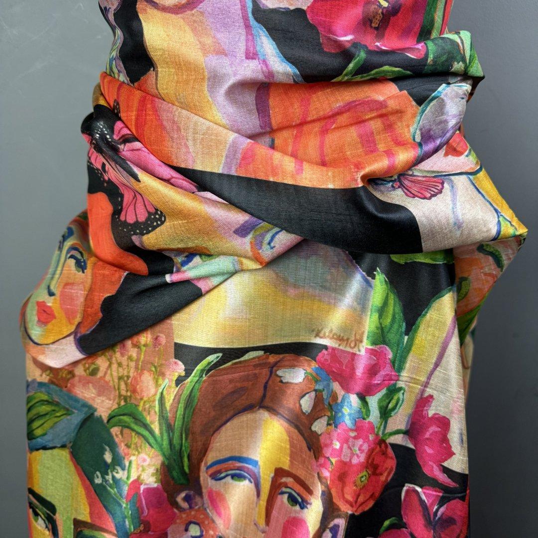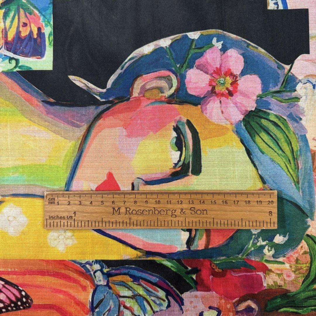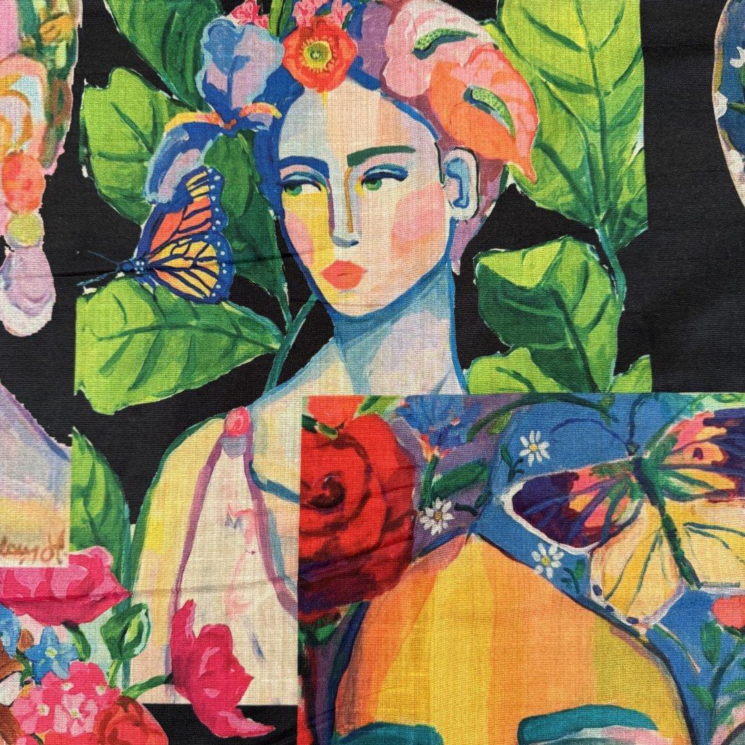 This cloth is slightly sheer in the light. It will be a pleasure to sew and look fabulous in most garments. It’s a busy, colourful fabric that is suitable for day and occasional wear. Enjoy this cloth while stocks last!!!
