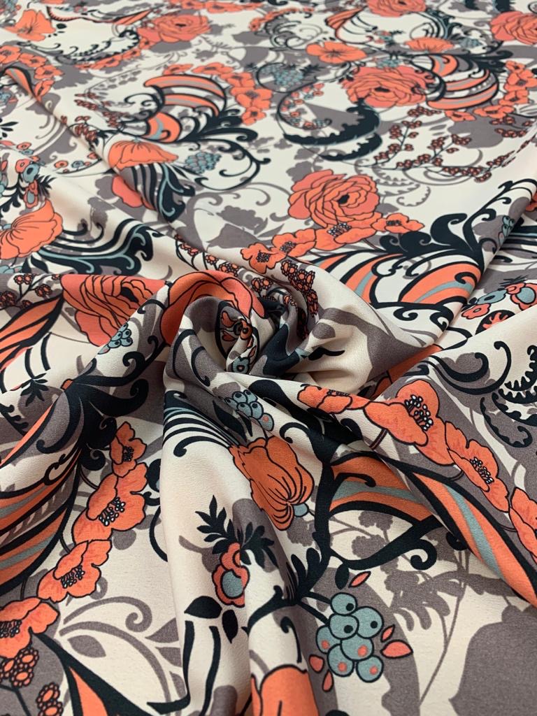 Crepe De Chine is Polyester, 58″ wide (150cm). This is a light weight, floaty cloth with a heavy drape. Perfect for kaftans, floaty dresses, maxi skirts, shirts, wide leg trousers and more. Easy to sew and washes well at 30 degrees.