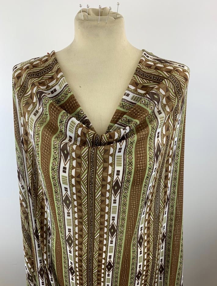 Crinkled Georgette, 58″ wide (150cm). This fabric is slightly transparent and very light weight. Georgette is perfect for floaty summer dresses, maxi skirts, over sized shirts, kaftans, wraps, kimonos and more. Easy to sew and washes well at 30 dresses. Try McCalls pattern M7537.