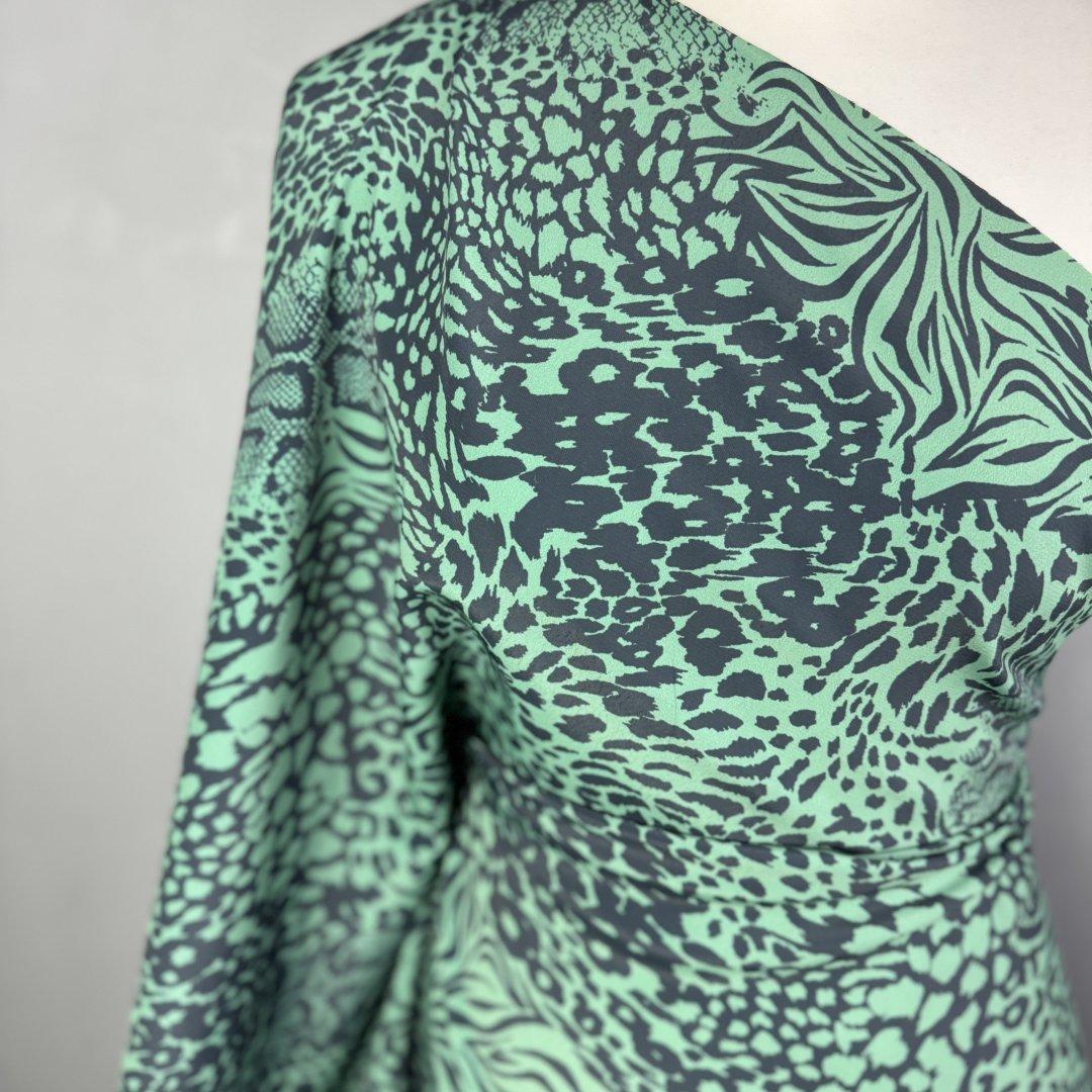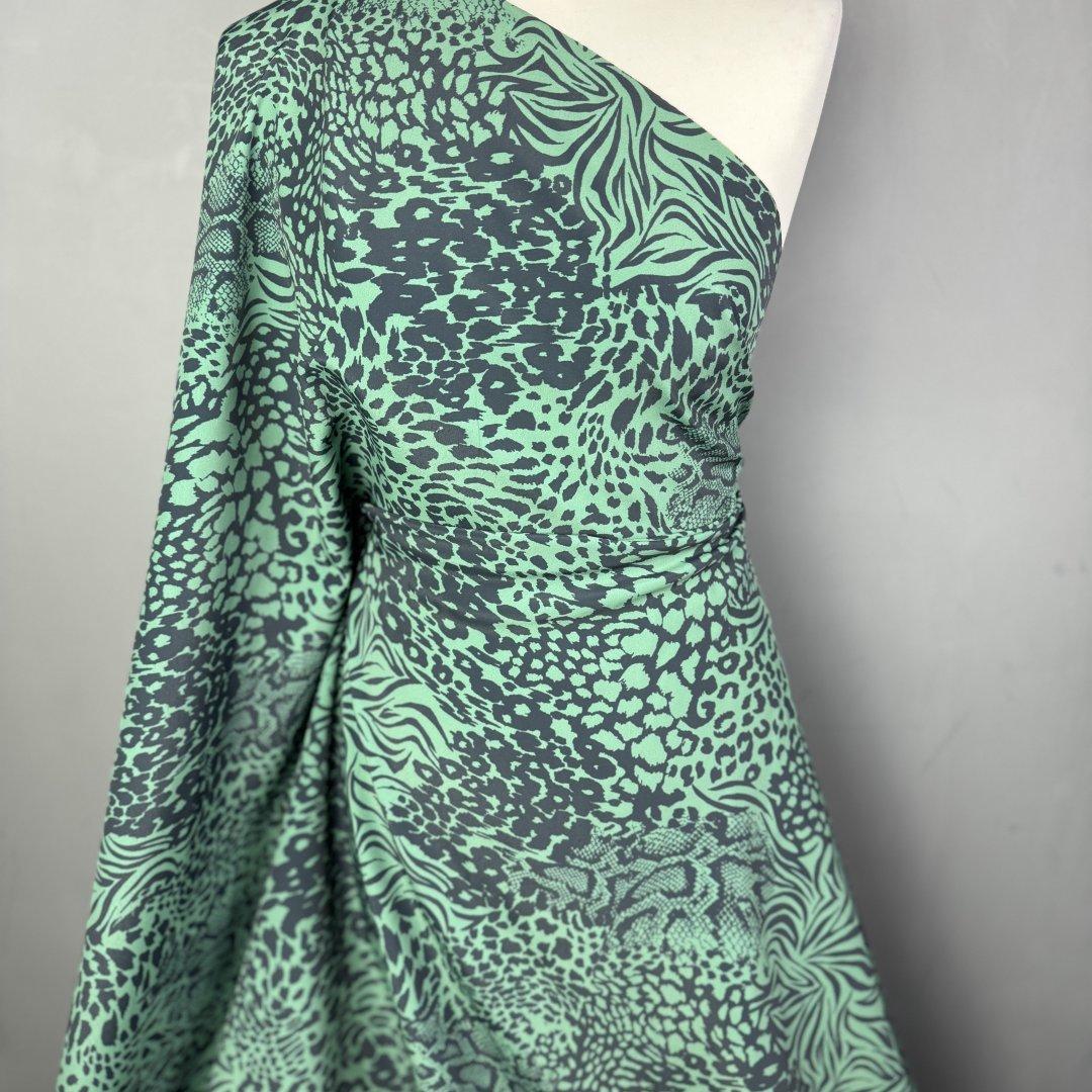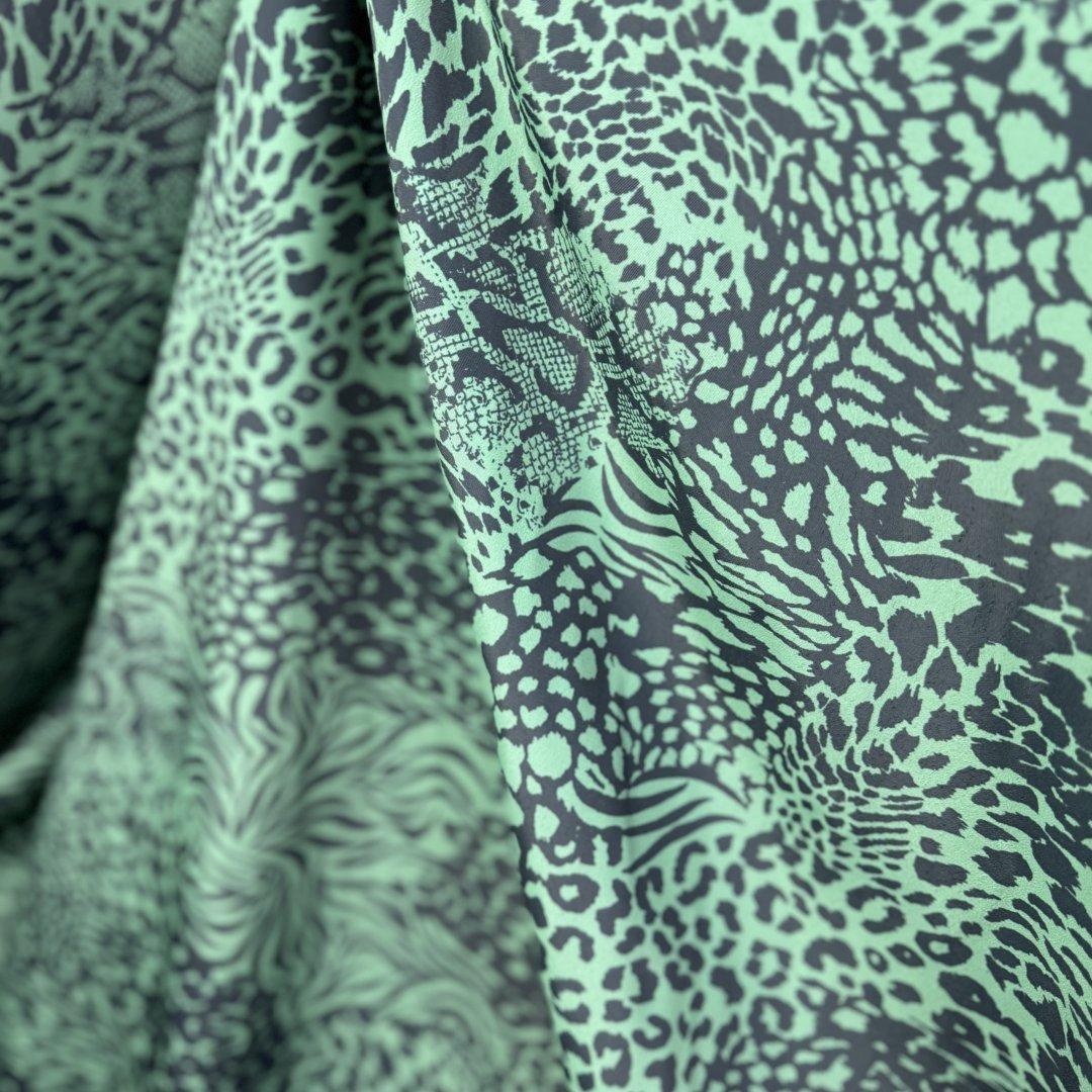 Deep Green Crepe De Chine is 150cm wide. This is a light weight polyester with a fluid drape. Deep Crepe De Chine is ideal for slip dresses, maxi dresses, shirred dresses, wrap skirts, wide leg trousers, summer shorts, shirts and so much more.
