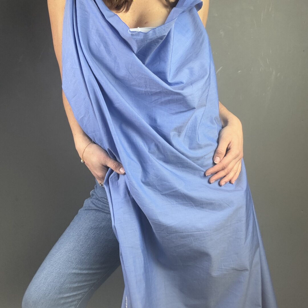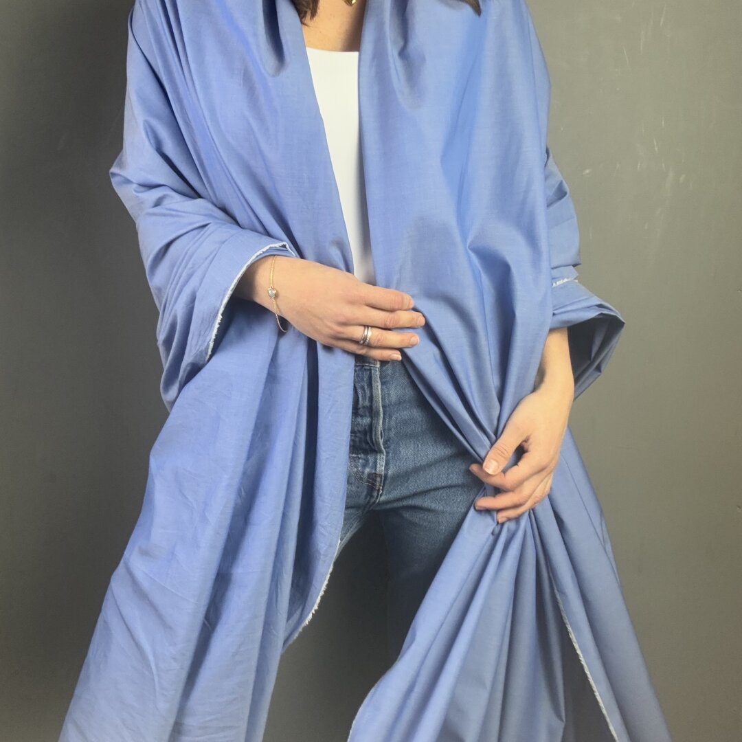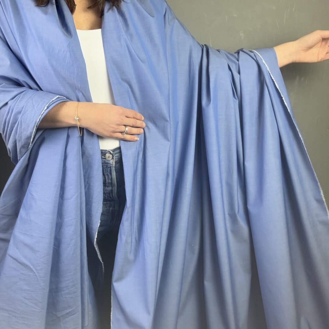 Denim Bella Blue is an Italian lightweight chambray cotton of exceptional quality. Soft, breathable, and beautifully fluid, this fabric is perfect for summer shirts, tops, kaftans, A-line skirts, loose-fitting dresses, wide-leg or relaxed trousers, and shirred garments. Designed to keep you cool in warm weather, it offers an effortlessly stylish and glamorous feel. The unique drape and colour create a high-fashion–inspired finish, making it ideal for elevated everyday pieces. Very easy to sew.
