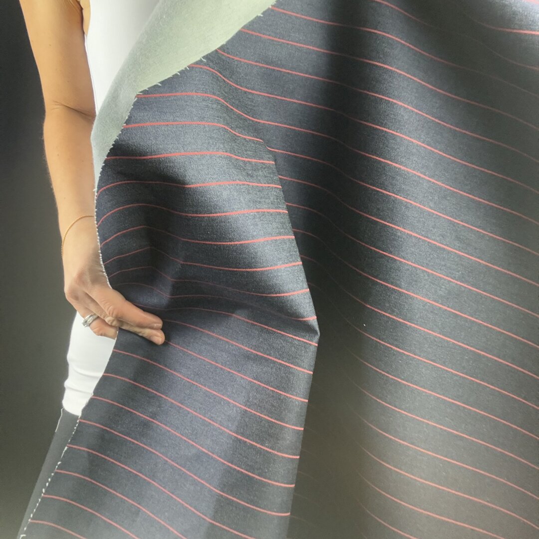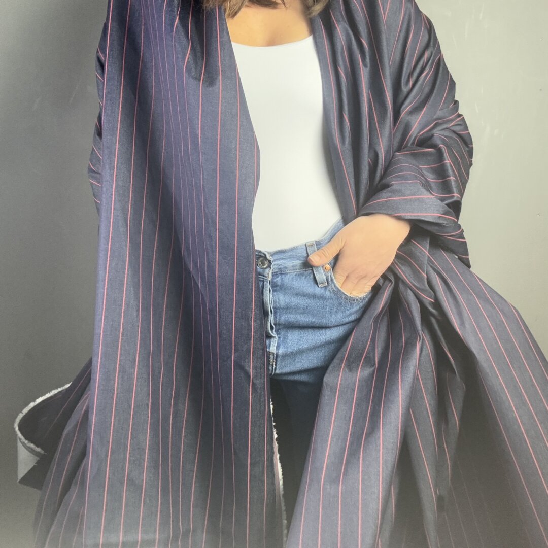 Back by popular demand, Denim Margot Blue and red is available however we have limited stock. This sturdy denim has excellent structure, holding pleats and shape beautifully while remaining easy to sew. Ideal for everyday pieces such as denim jackets, straight-leg trousers, A-line skirts and dresses, straight skirts, beach bags and more. A versatile cloth designed to create effortless, everyday statement pieces. This fabric will create a statement peplum jacket.