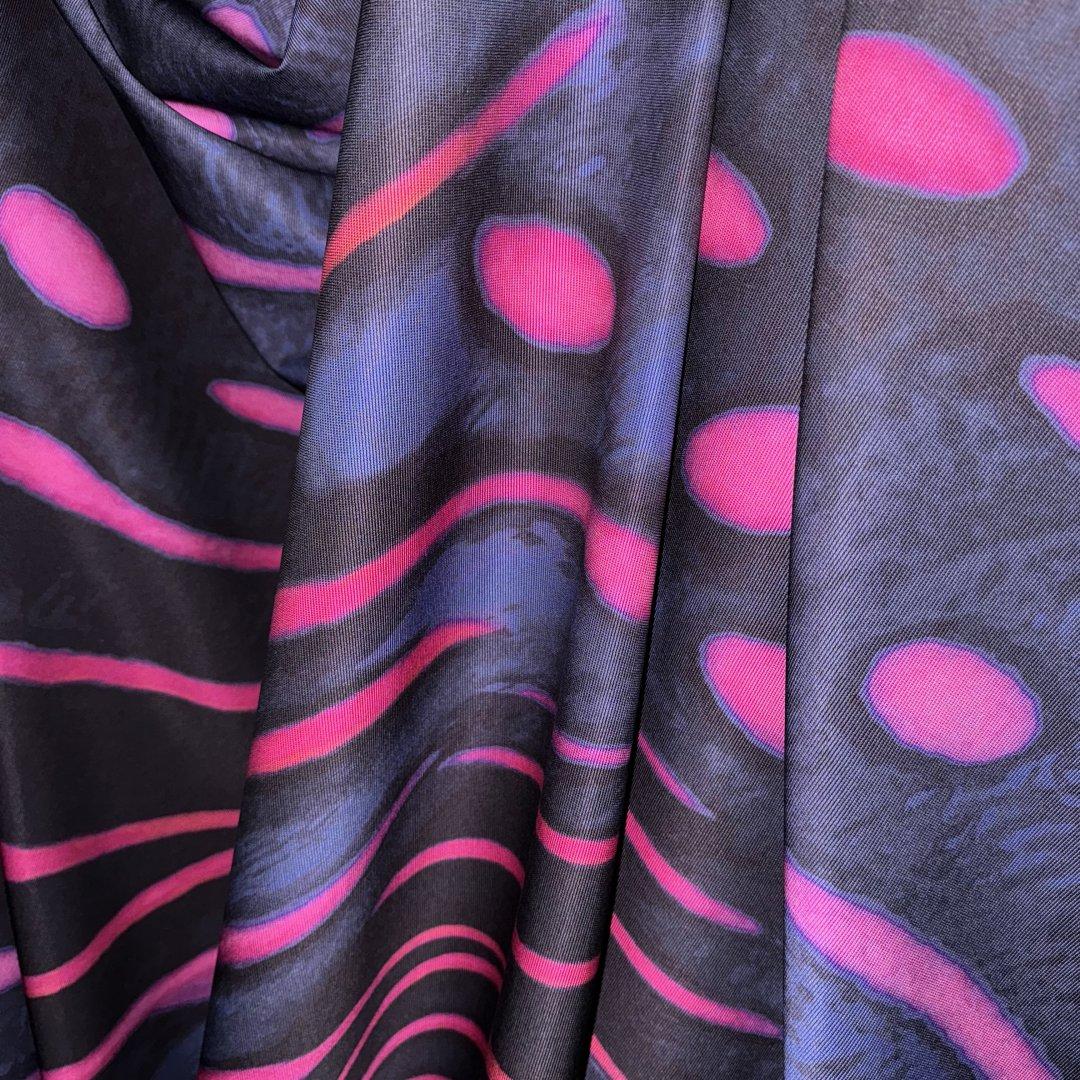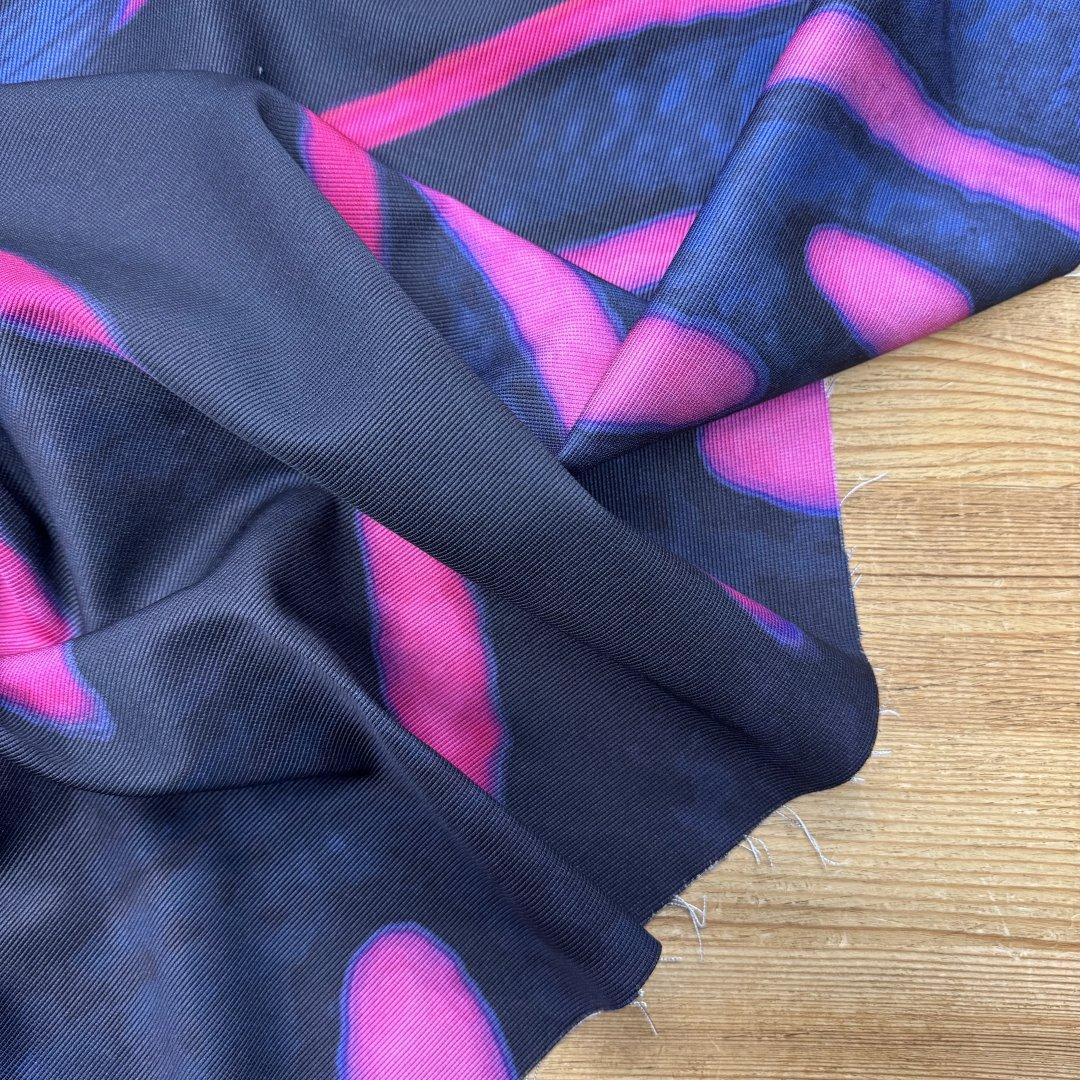 It’s a little heavier than I thought but still has a superb drape and the pink absolutely pops against the blues. It will probably be a jumpsuit but might be culottes and a jacket. I’m such a happy bunny❤️❤️.