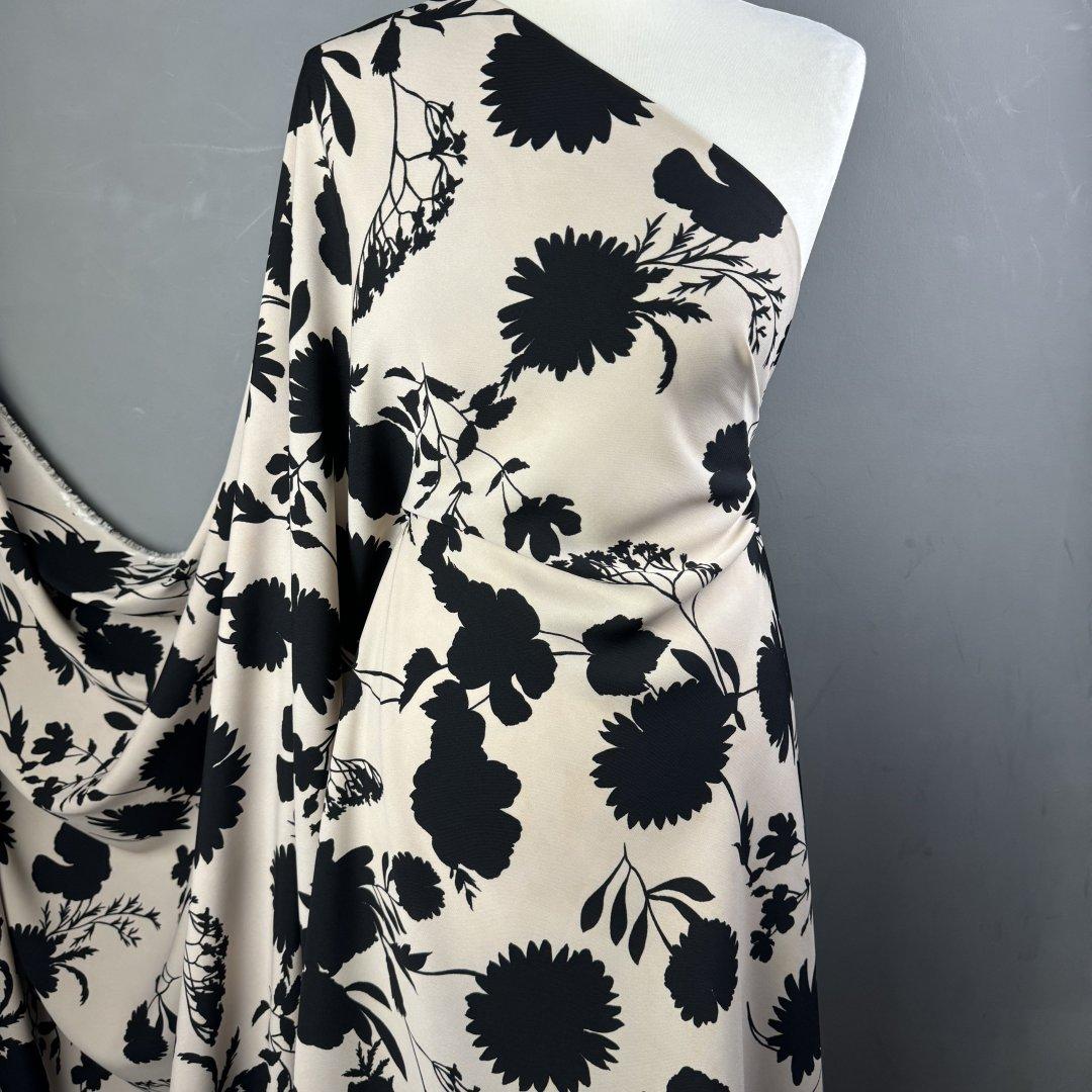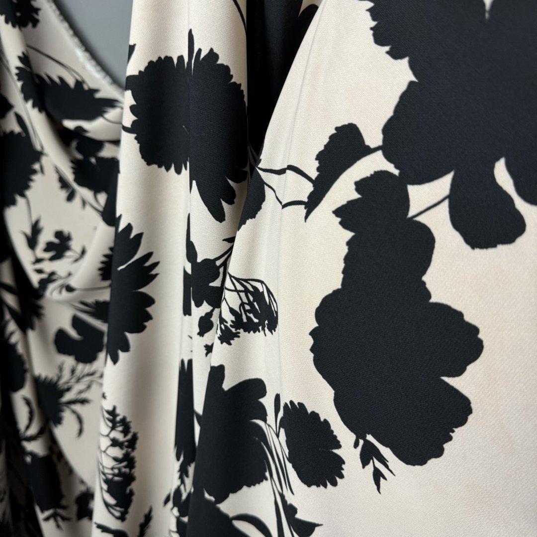 Dramatic Polyester is 150cm wide. This is a gorgeous light weight polyester with a fluid drape that is perfect for tunic tops, shirts, shirt dresses, wide leg trousers, jumpsuits, wrap dresses, shift dresses and so much more.