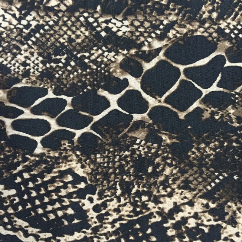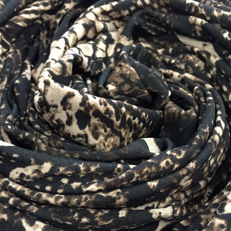 Ella Jersey is a Spandex Elastane, 60″ wide (150cm). Spandex Elastane never creases and is an extremely versatile cloth. This fabric is perfect for maxi dresses, cow neck tops, wrap around dresses, waterfall cardigans, harem pants, leggings, swimwear and any garment that requires stretch and/or draping. There is usually no need to use a zip when using jersey fabric. Jersey is a flimsy fabric to sew as it is light weight with a heavy drape. Wash at 30 degrees and the minimum cut is 0.50cm.