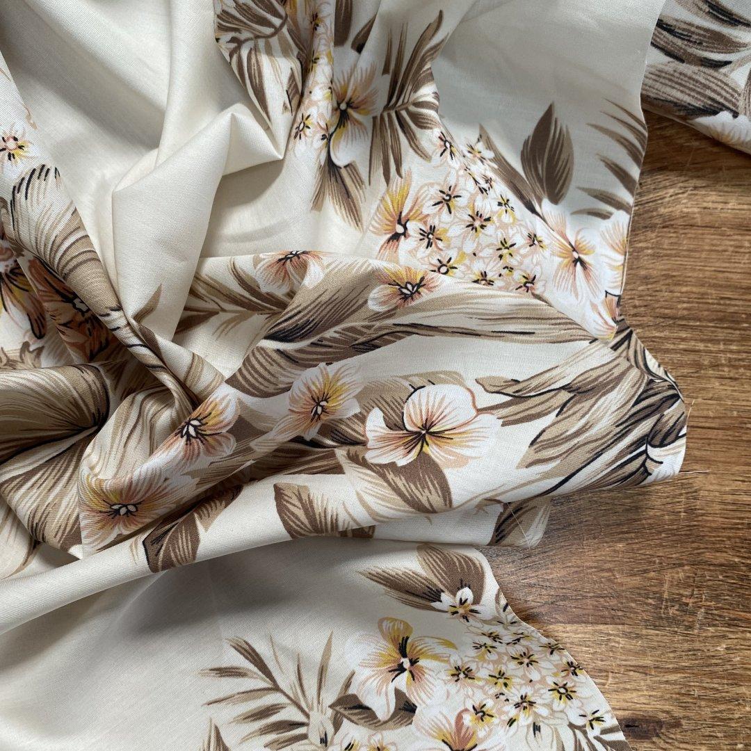 Festival Cotton is 150cm wide. This is a gorgeous light weight cotton with a beautiful subtle print. This fabric is perfect for summer maxi dresses, shirred dresses, tiered skirts, shorts, shift dresses, shirt dresses and so much more. A beautiful fabric for those long summer days. Cotton will keep you nice and cool in the summer time and is easy to wash. This fabric mix and matches well with Camel Wool and Lycra.