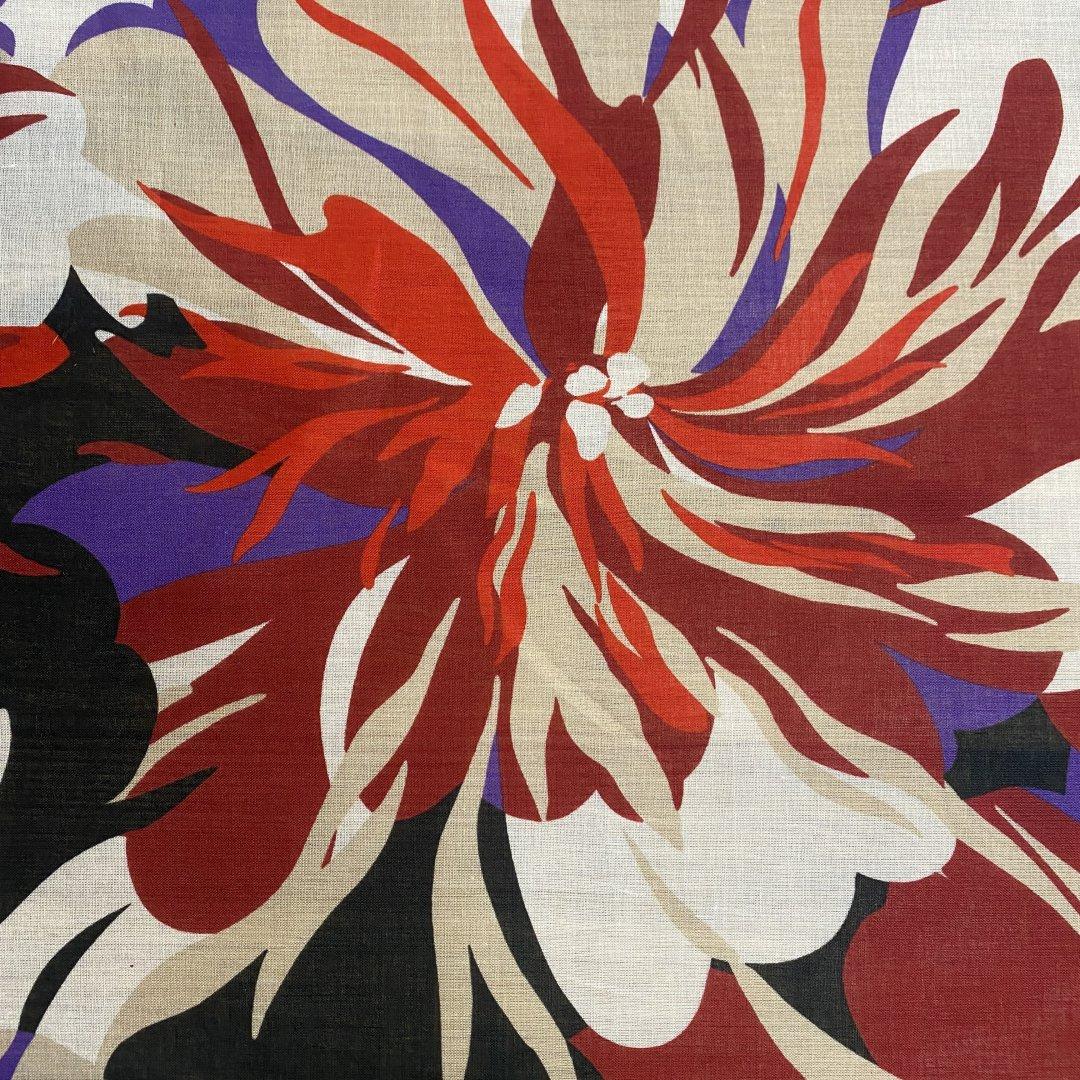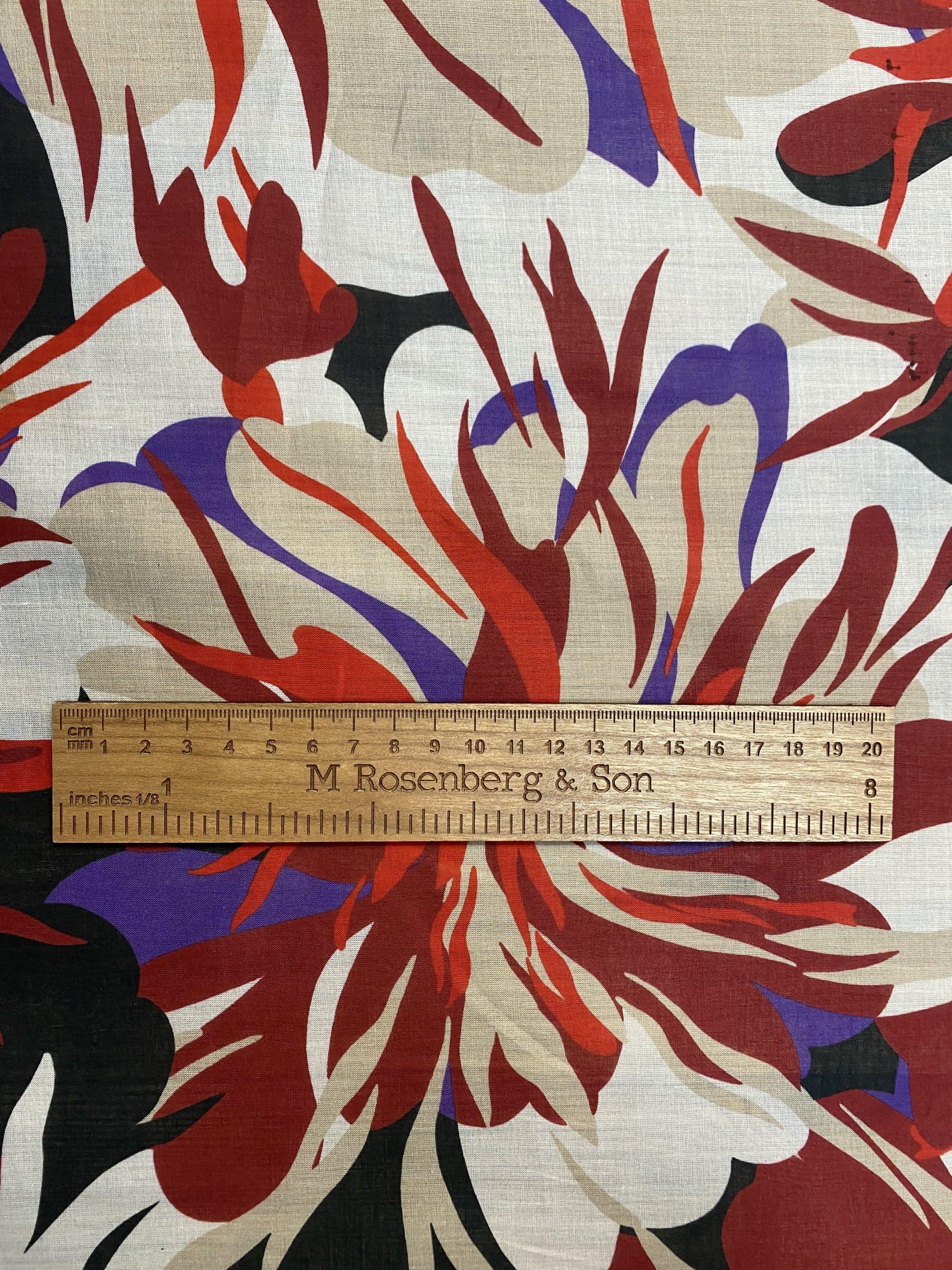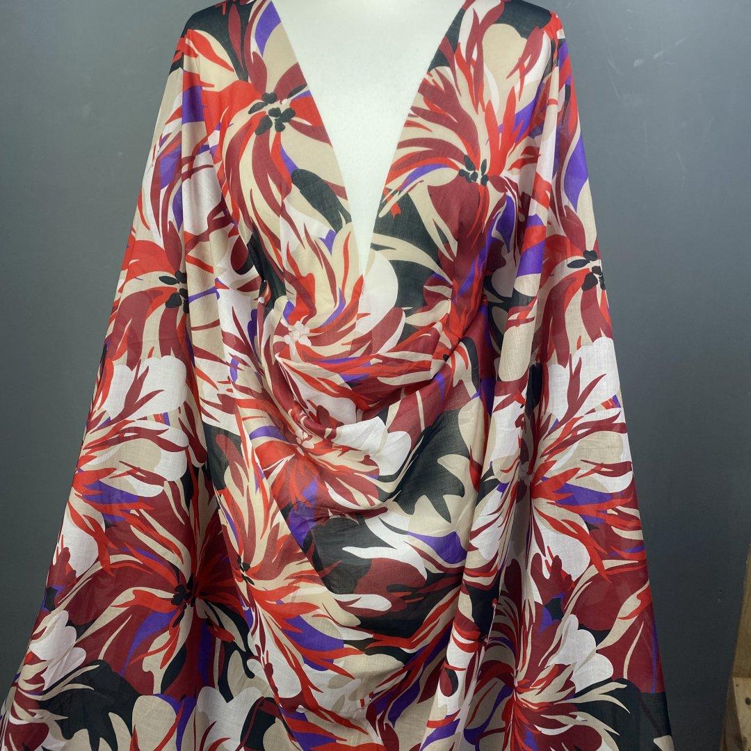 Firework Summer is 150cm wide. This is a light weight, Italian fine lawn cotton with a beautiful busy print. This fabric is perfect for shirts, tops, wrap dresses, shift dresses, kaftans, floaty tops and more. This fabric is very easy to sew and will create that must have summer garment for day and evening wear.