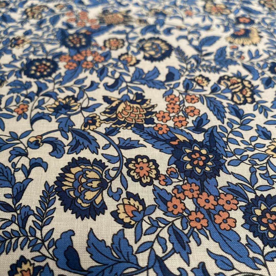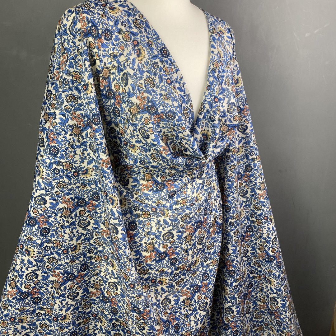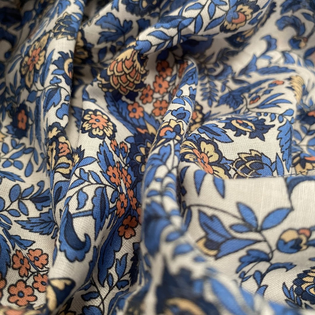 Flower Cotton Voile is 145cm wide. This is a light weight floaty fabric that is perfect for summer dresses, shirts/ blouses, skirts, shirred dresses, tiered skirts and more. Easy to sew and washes well at 30 degrees.