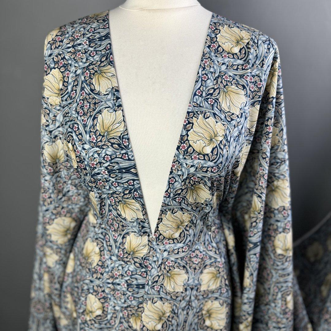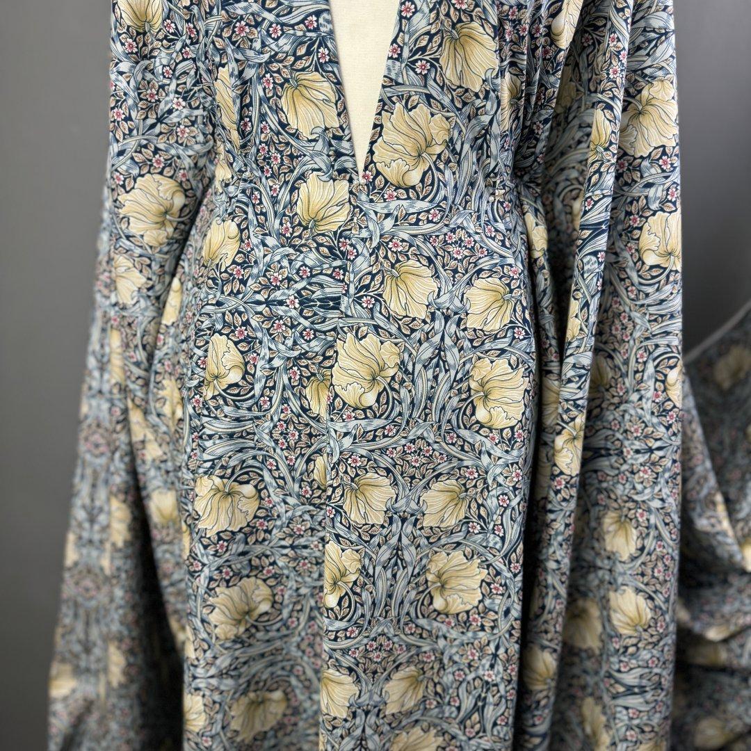 Flower Flow Sea Shore is a Fine Lawn, 140cm wide. Fine lawn is a light wight pure cotton that is easy to sew with and suitable for all sewing abilities. At first touch fine lawn is often compared to a floaty silk. This fabric is a natural fibre which means it will softy drape around the body keeping you nice and cool in hot climates. Fine Lawn is perfect for skirts, dresses, blouses, summer weight trousers, shorts, scarves , beach wear, kids clothes and more. Wash at 30 degrees- minimum cut 0.50cm.
