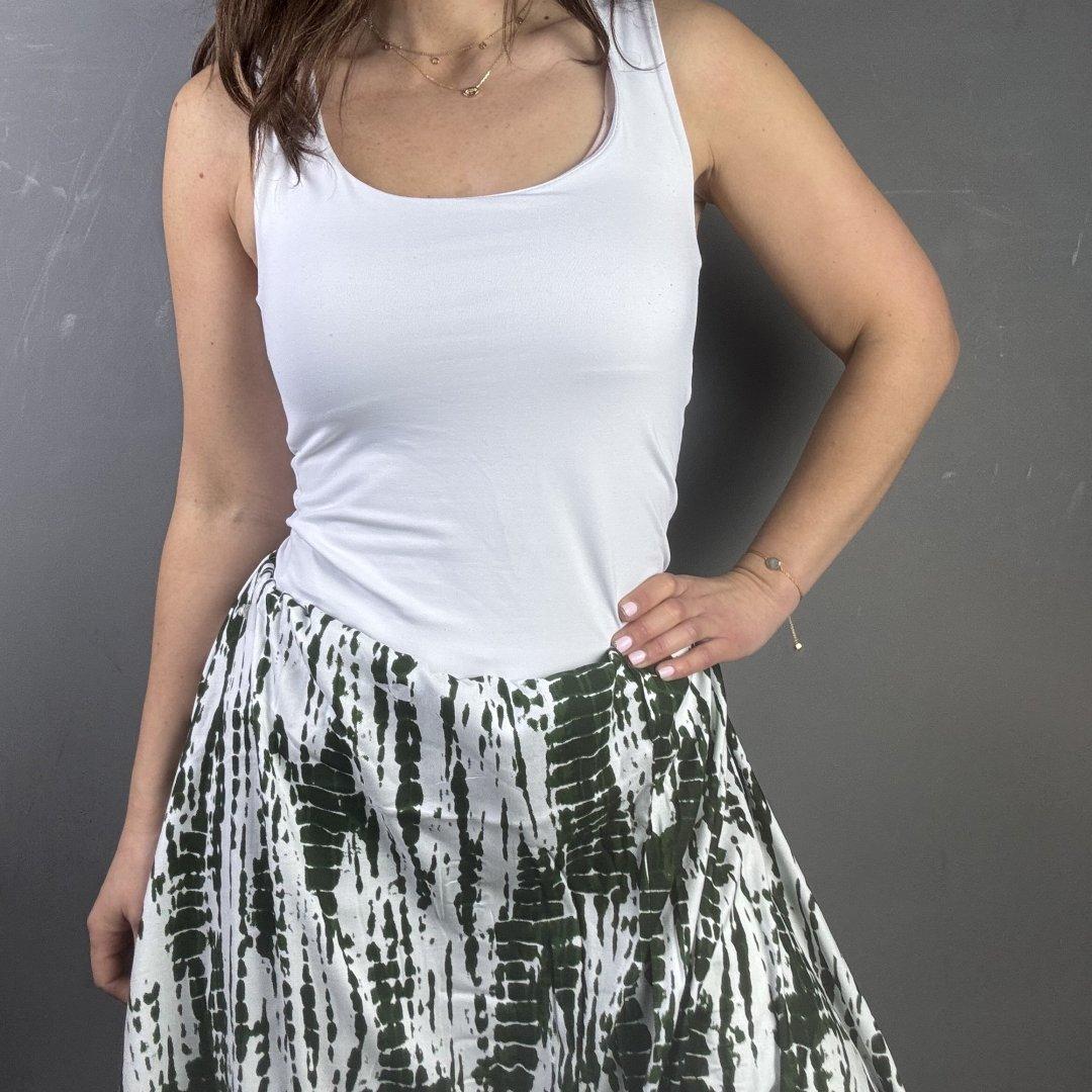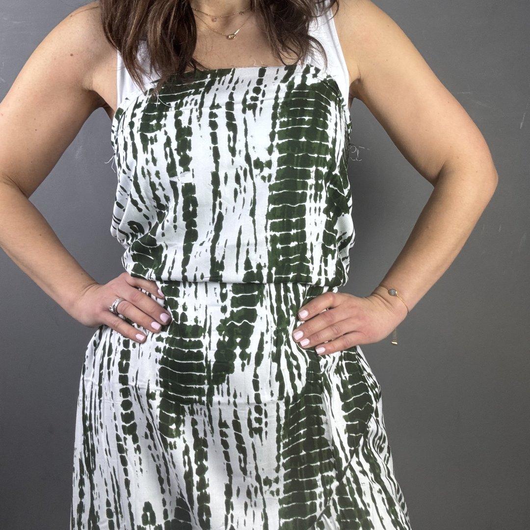 Green Chic Rayon is 140cm wide. This is a light weight, fluid fabric that is ideal for maxi dresses, skirts, tops, shirts, jumpsuits, playsuits, wide leg trousers, kaftans and so much more.