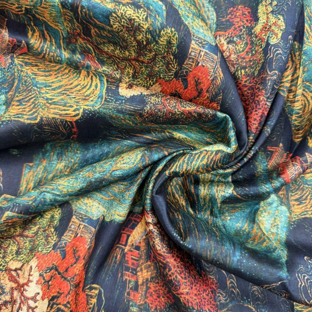This cloth is slightly sheer in the light. It will be a pleasure to sew and look fabulous in most garments. It’s a busy, colourful fabric that is suitable for day and occasional wear. Enjoy this cloth while stocks last!!!