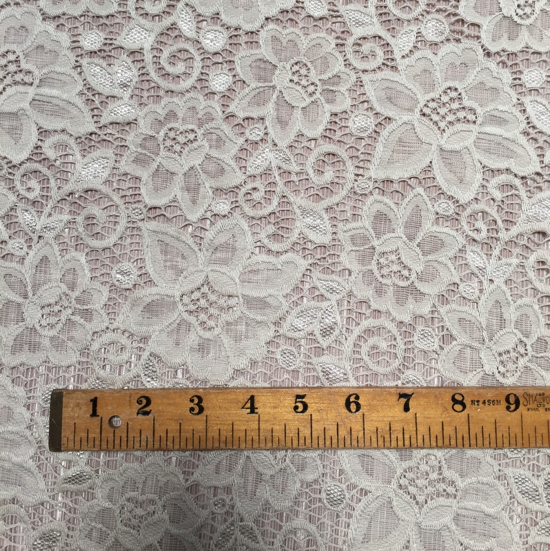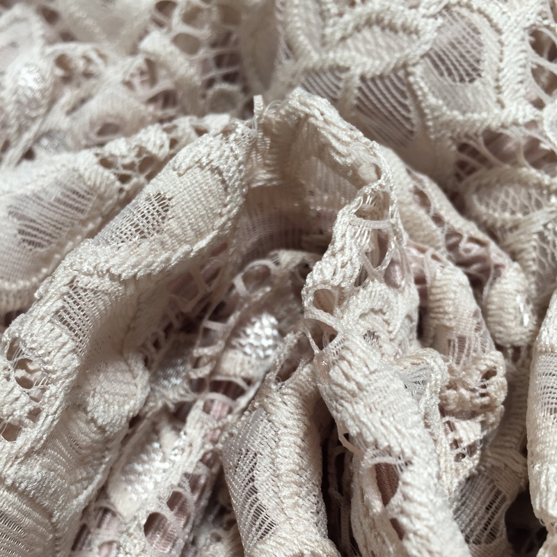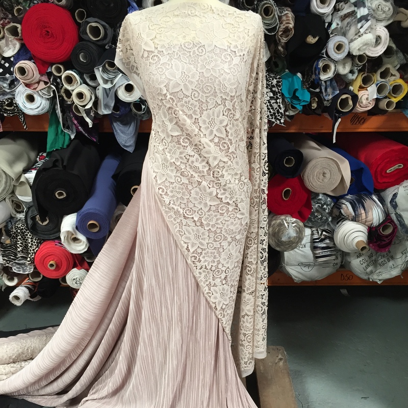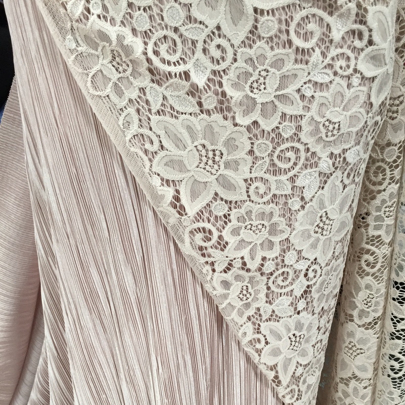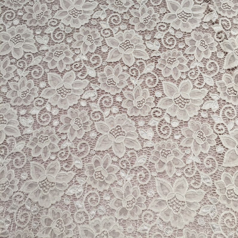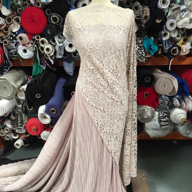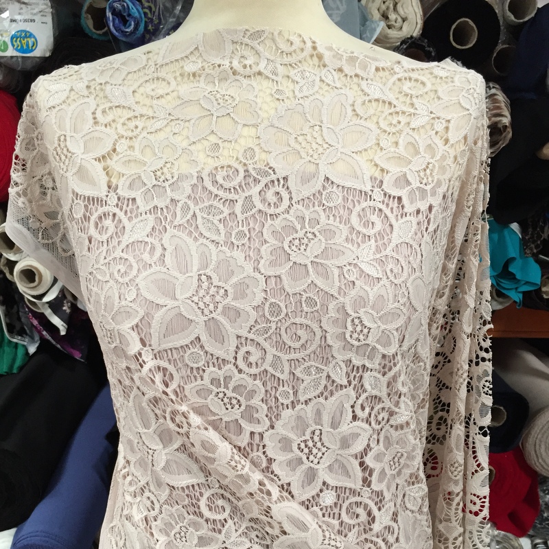 Isabella’s Lace is 56″- 58″ wide. This fabric is the perfect mix ‘n’ match for Stitch’s Pleated Polyester . This is a light weight lace that has a busy floral design all over it. An elegant fabric suitable for evening wear & occasional wear in skirts, dresses, tops, trousers and more. 30 degrees wash- minimum purchase 0.50cm.