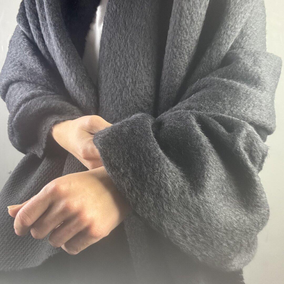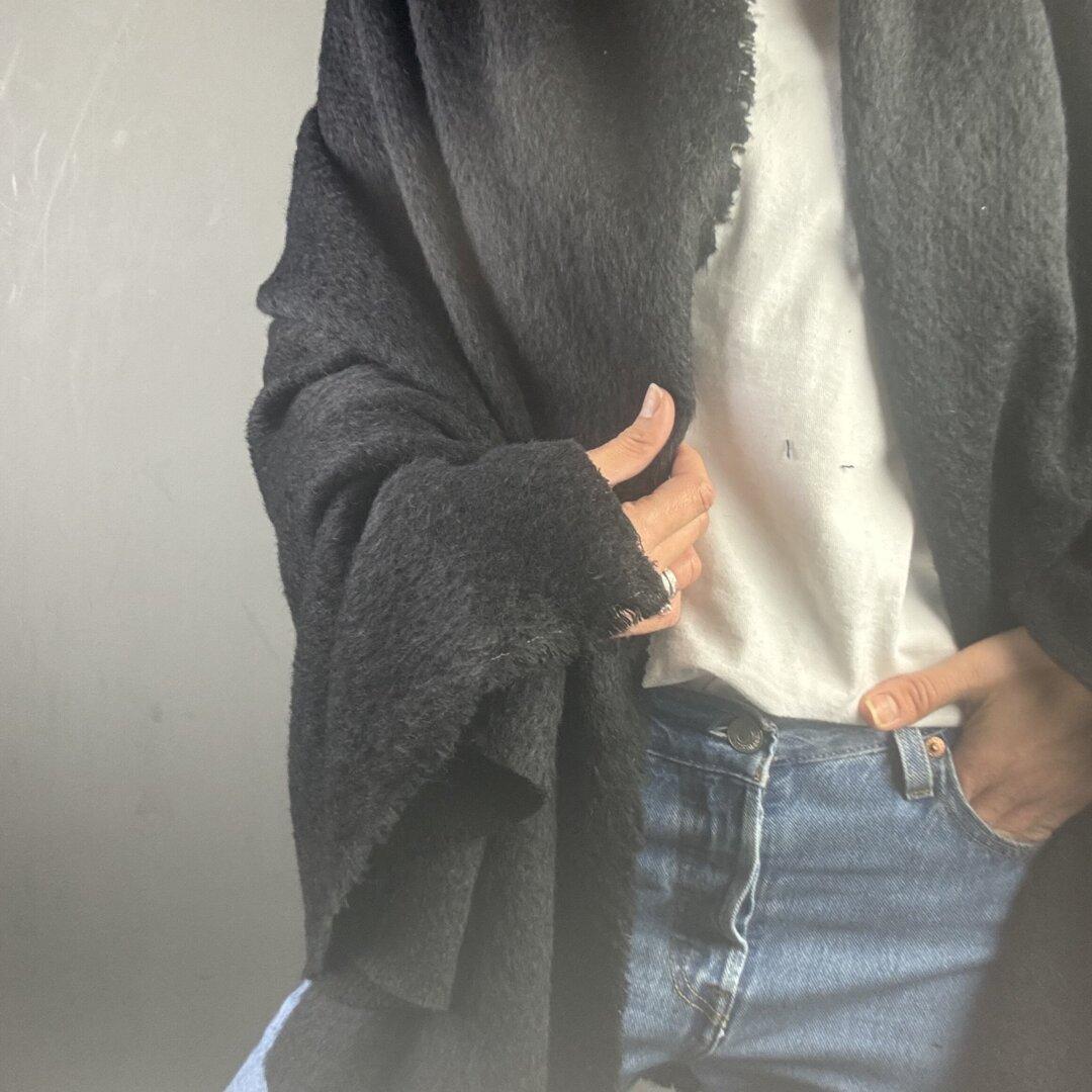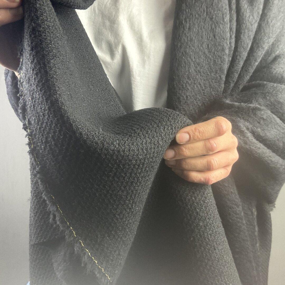 This Italian Black Wool and Mohair Knit is a luxurious, super-soft fabric measuring 150cm wide. Beautifully crafted with premium Italian quality, it’s perfect for creating elegant coats, Chanel-inspired jackets, and other timeless pieces.