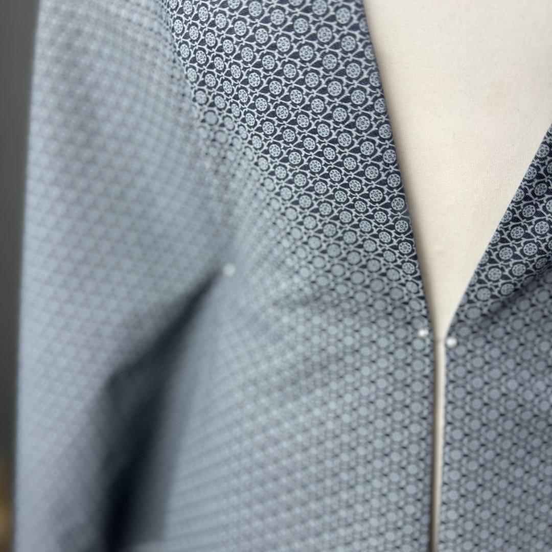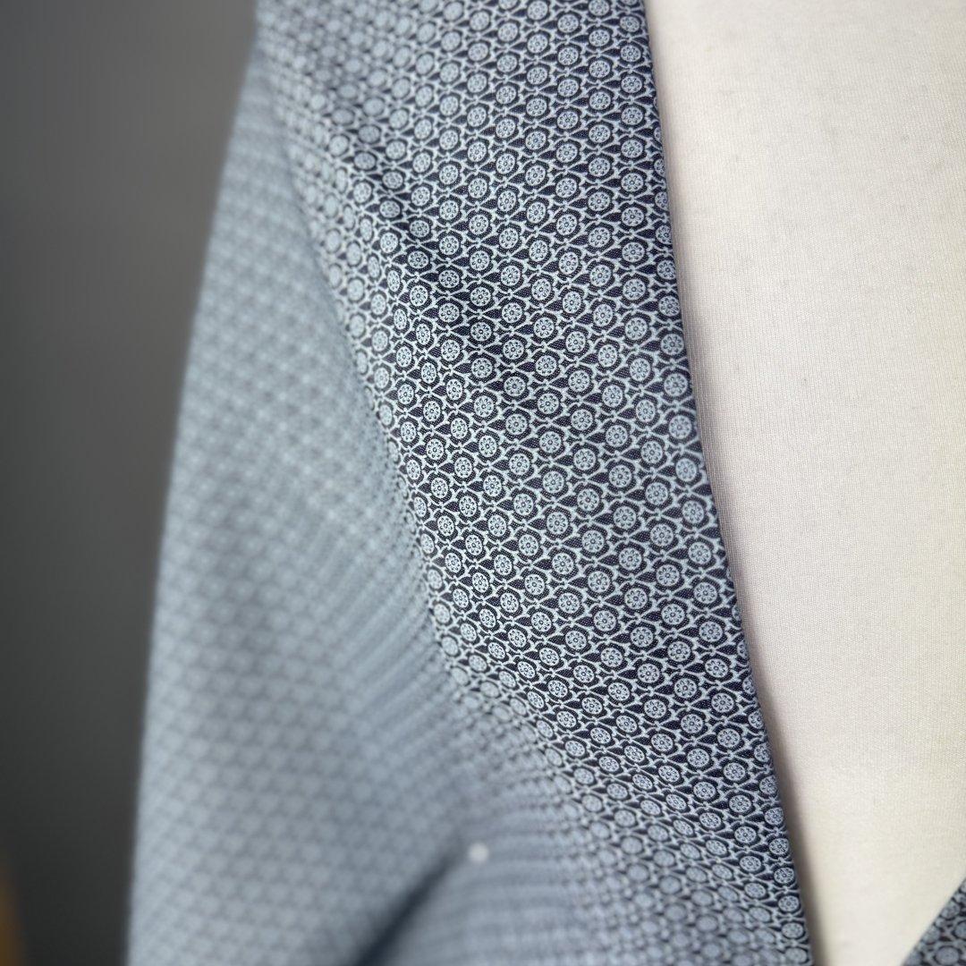 Italian Cotton Denim Shapes is 145cm wide. This is a light weight cotton denim with a small and detailed print. This fabric is perfect for everyday summer dresses, shirts, shorts, skirts, accessories and so much more. Italian Cotton Denim Shapes is very easy to sew and will create your everyday go- to spring/ summer outfit.