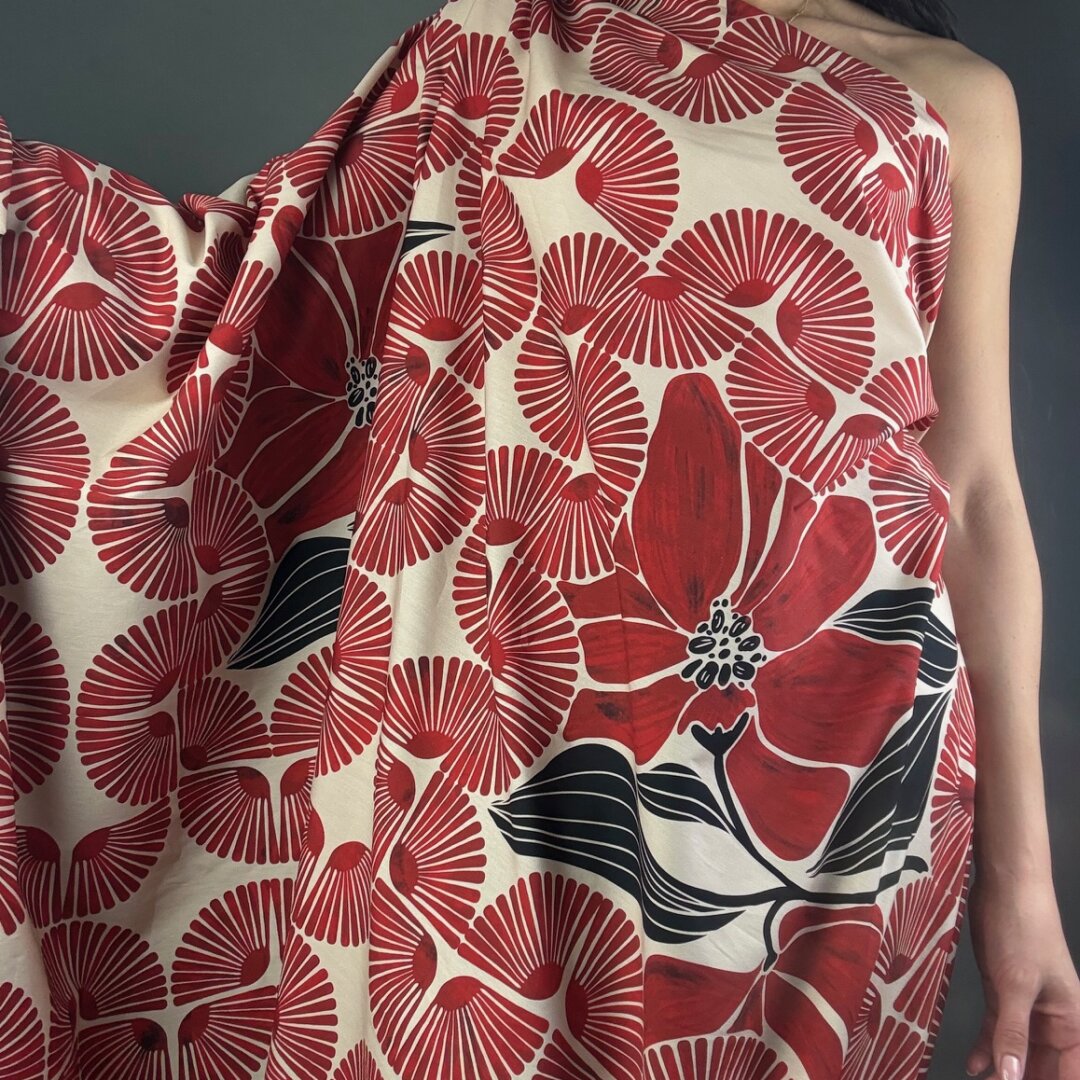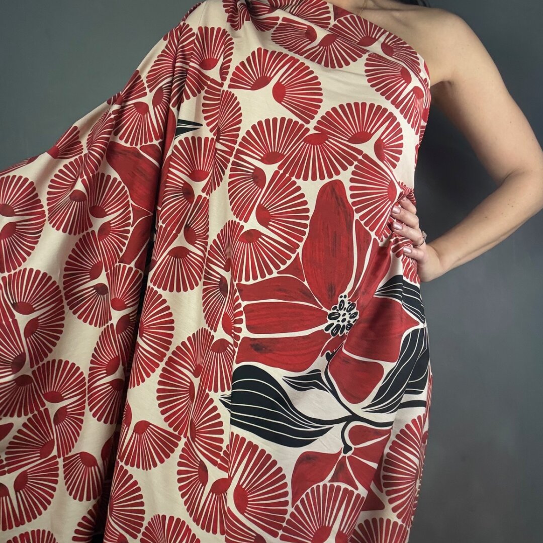 This is a truly interesting fabric, with rich colour tones that create beautiful depth and visual interest. Made from Italian cotton, it has a lovely weight that is perfect for creating statement pieces.