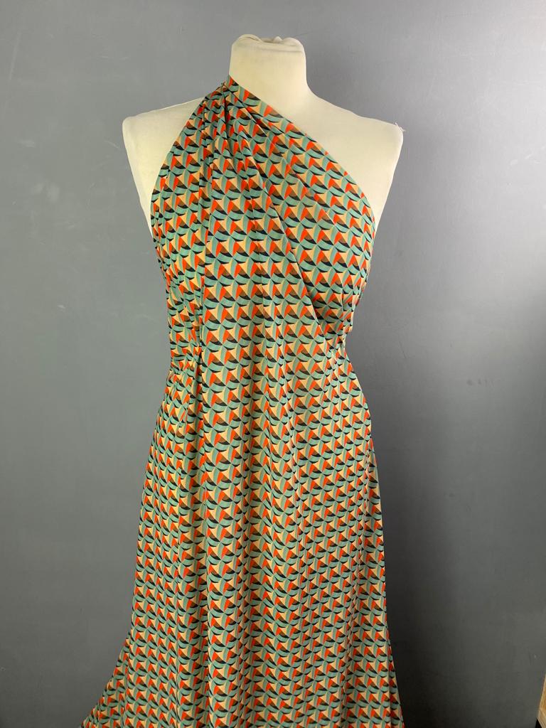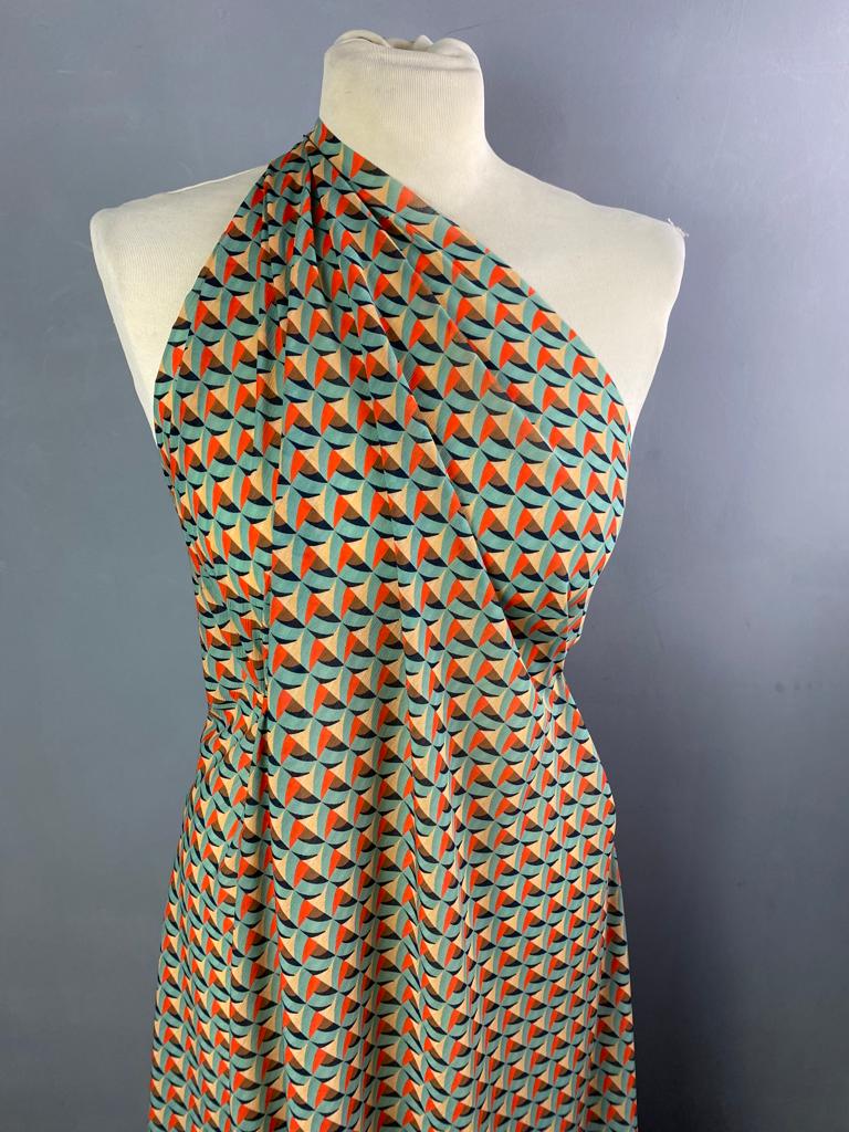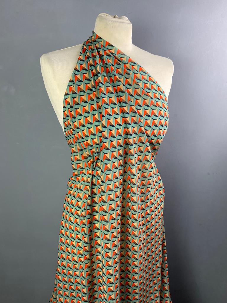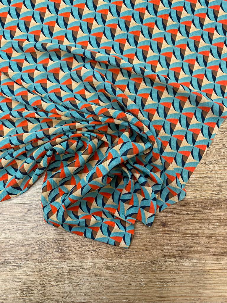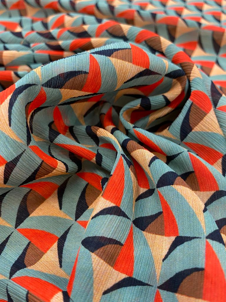 Italian Crinkle Polyester is 150cm wide. This is a light weight cloth that is slightly transparent meaning it will require a slip or lining depending on the type of garment you make. Suitable for maxi dresses, wrap dresses, swishy skirts, jumpsuits, play suits, wide leg trousers, shirts, tops and more.