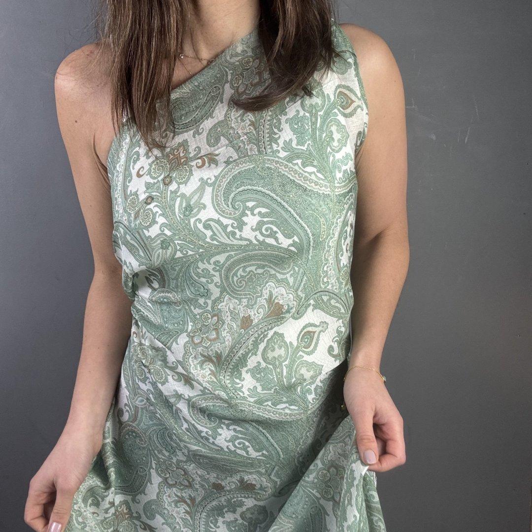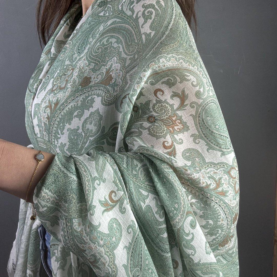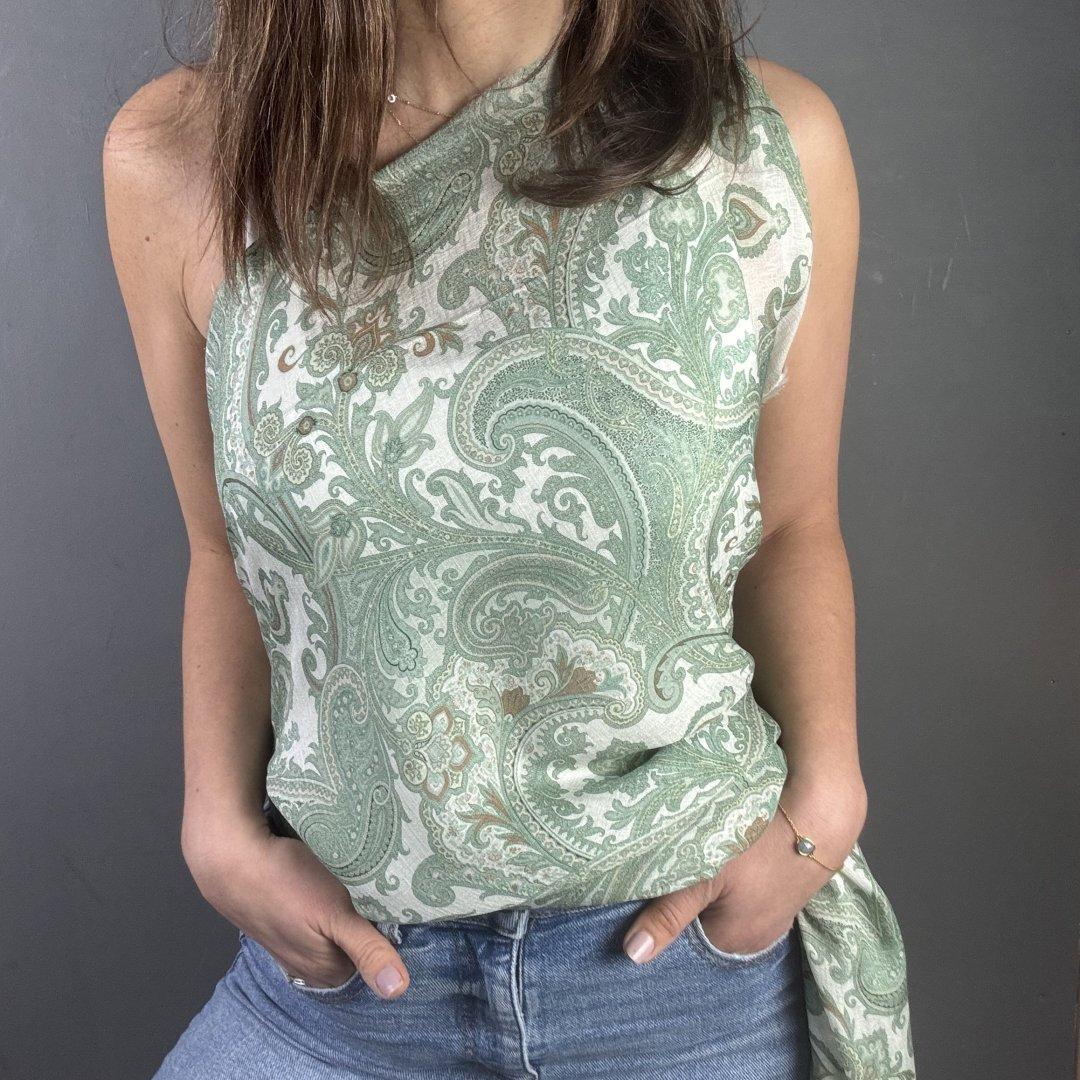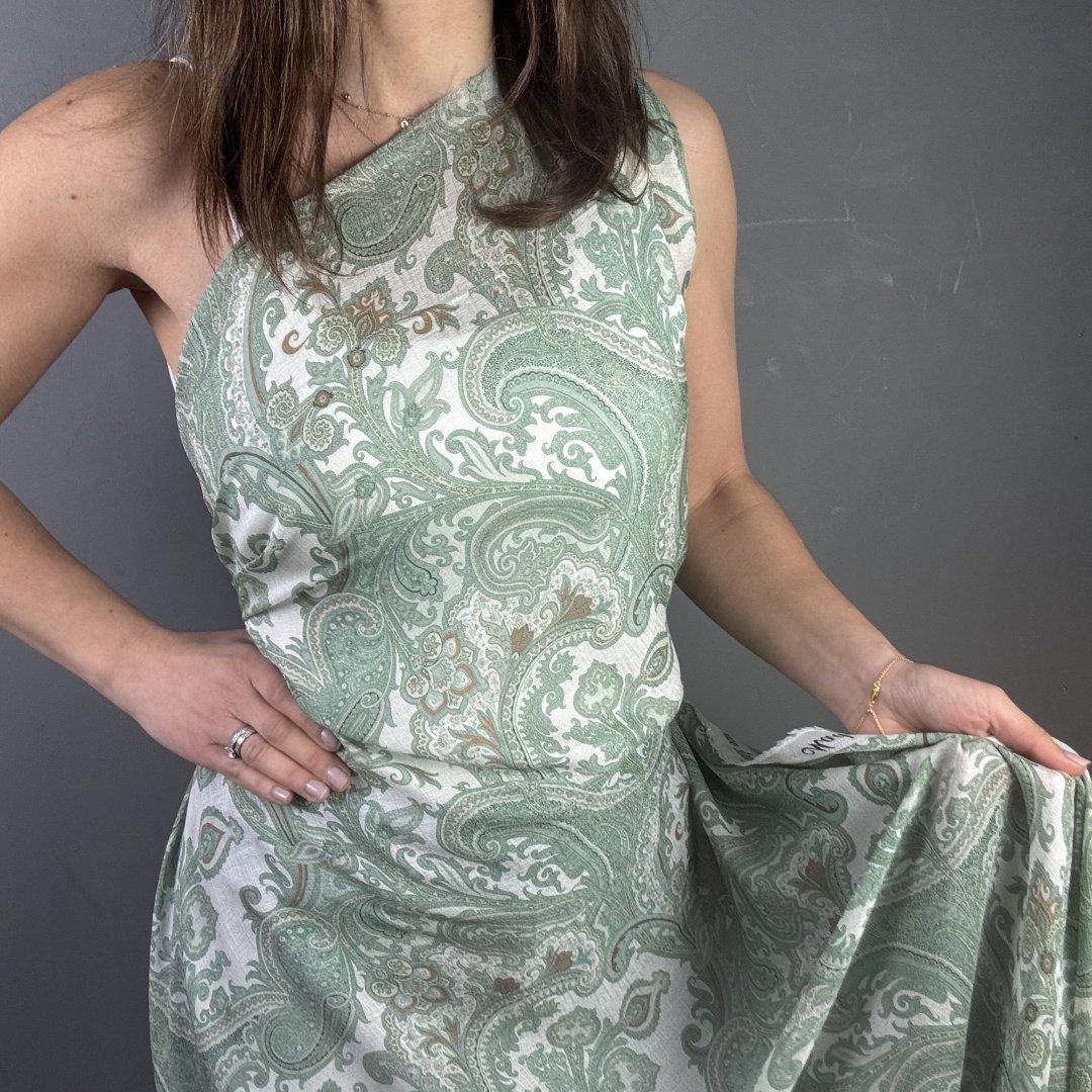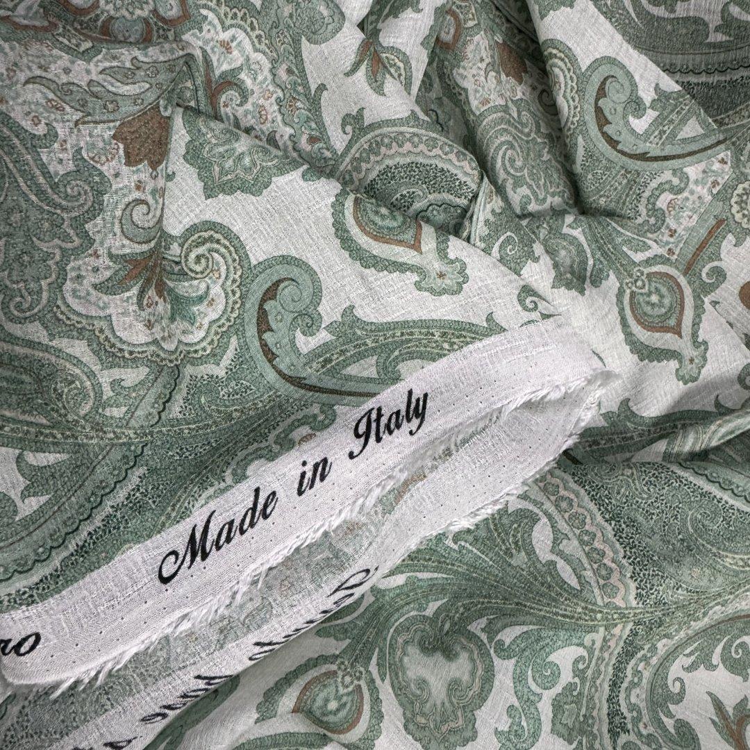 Italian Designer Green Paisley Silk is 135cm wide. This cloth is from a well known international fashion house and is part of a spectacular collection. We are super proud to introduce you to our new range of designer dressmaking fabrics.