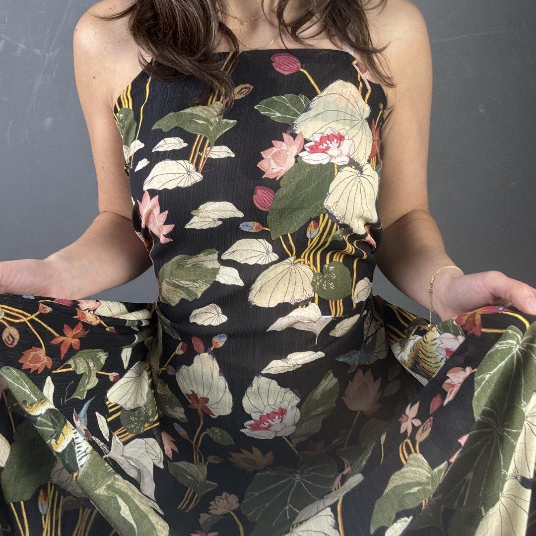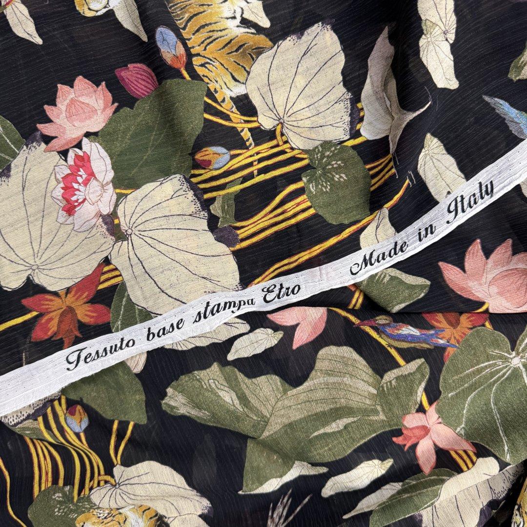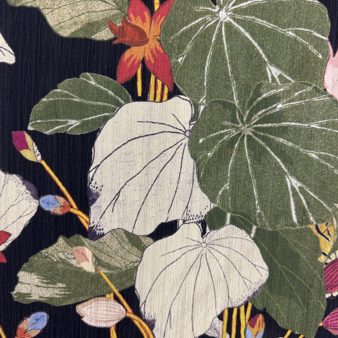 Italian Designer Retro Crinkle Silk is 130cm wide. This is a very special light weight fabric from a very well known international fashion house. With the most sensational quality feel this cloth was made for those special occasions and everyday feeling glamorous in the summer.