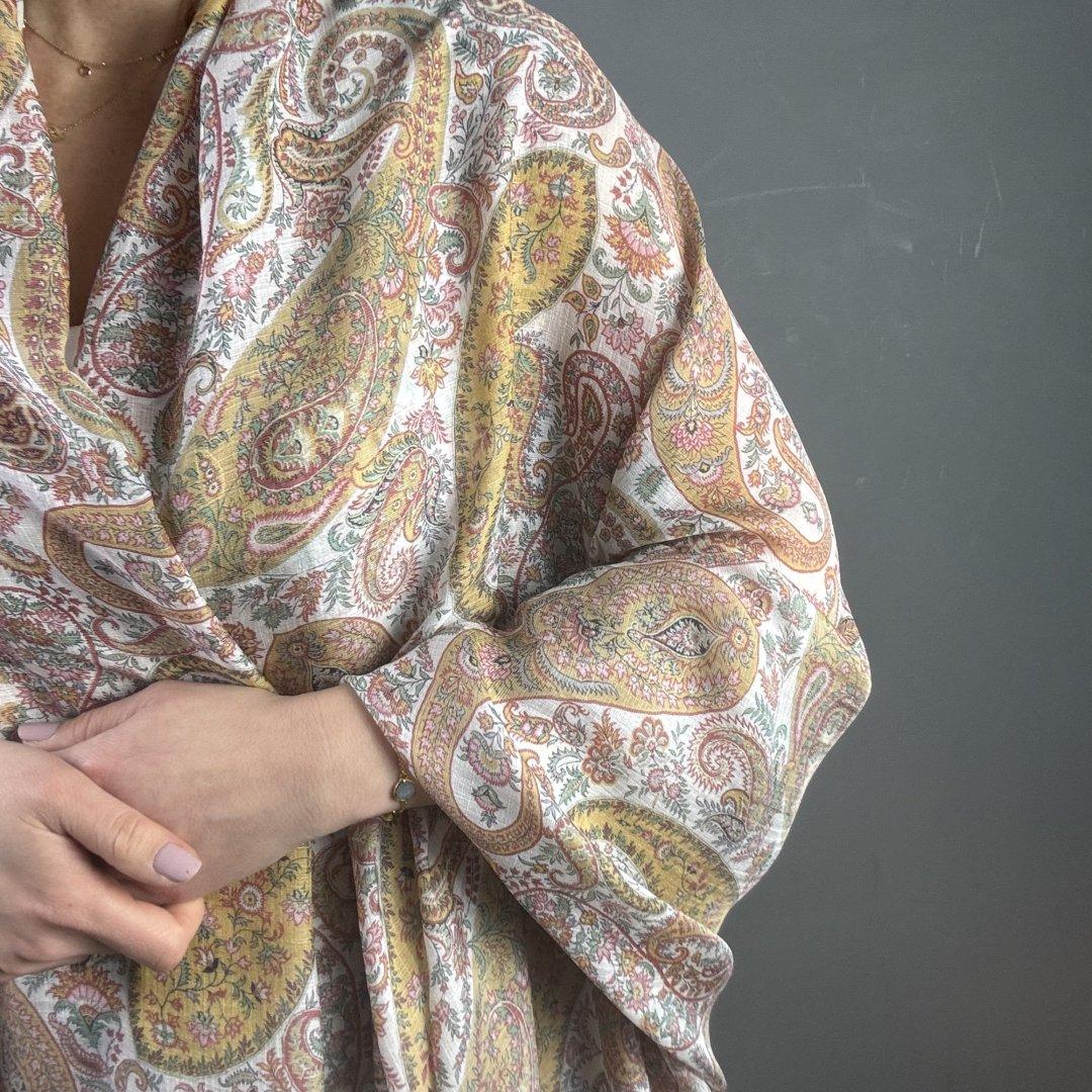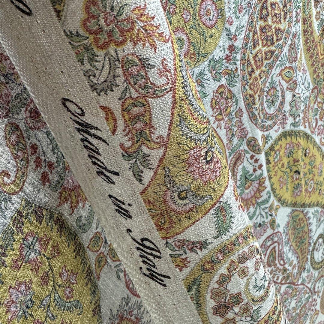 Italian Designer Sandy Paisley Silk is 135cm wide. This cloth is from a well known international fashion house and is part of a spectacular collection. We are super proud to introduce you to our new range of designer dressmaking fabrics.