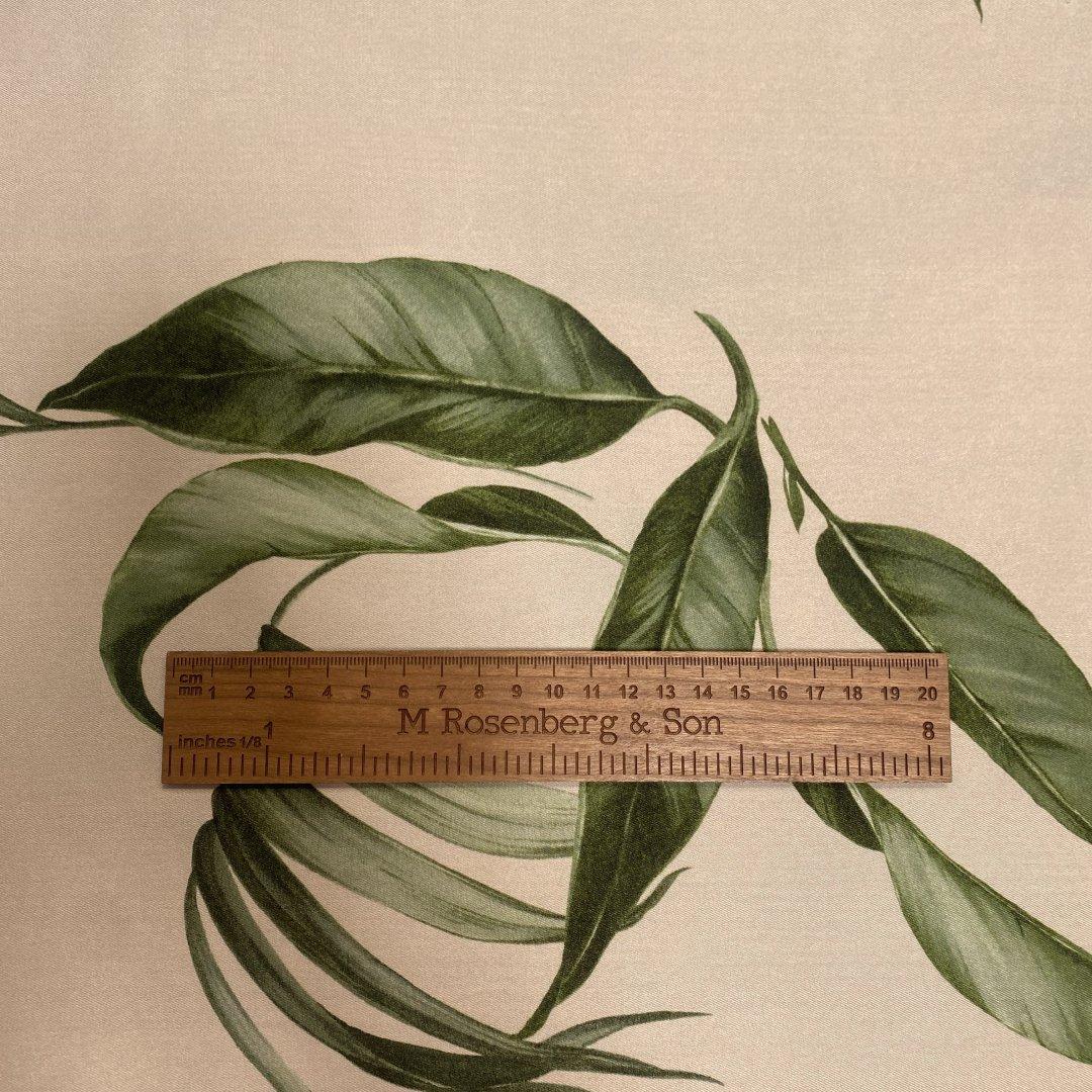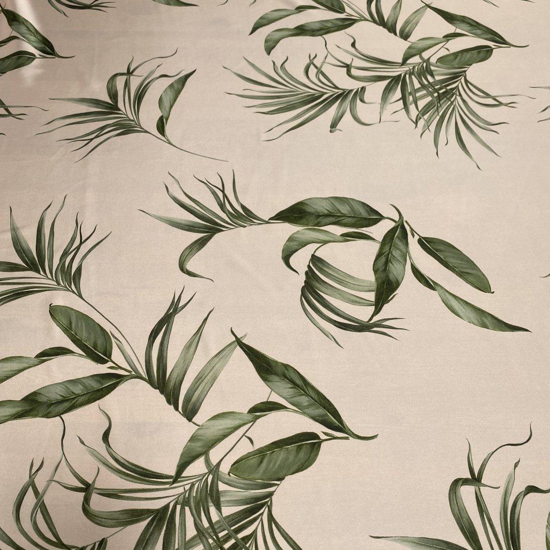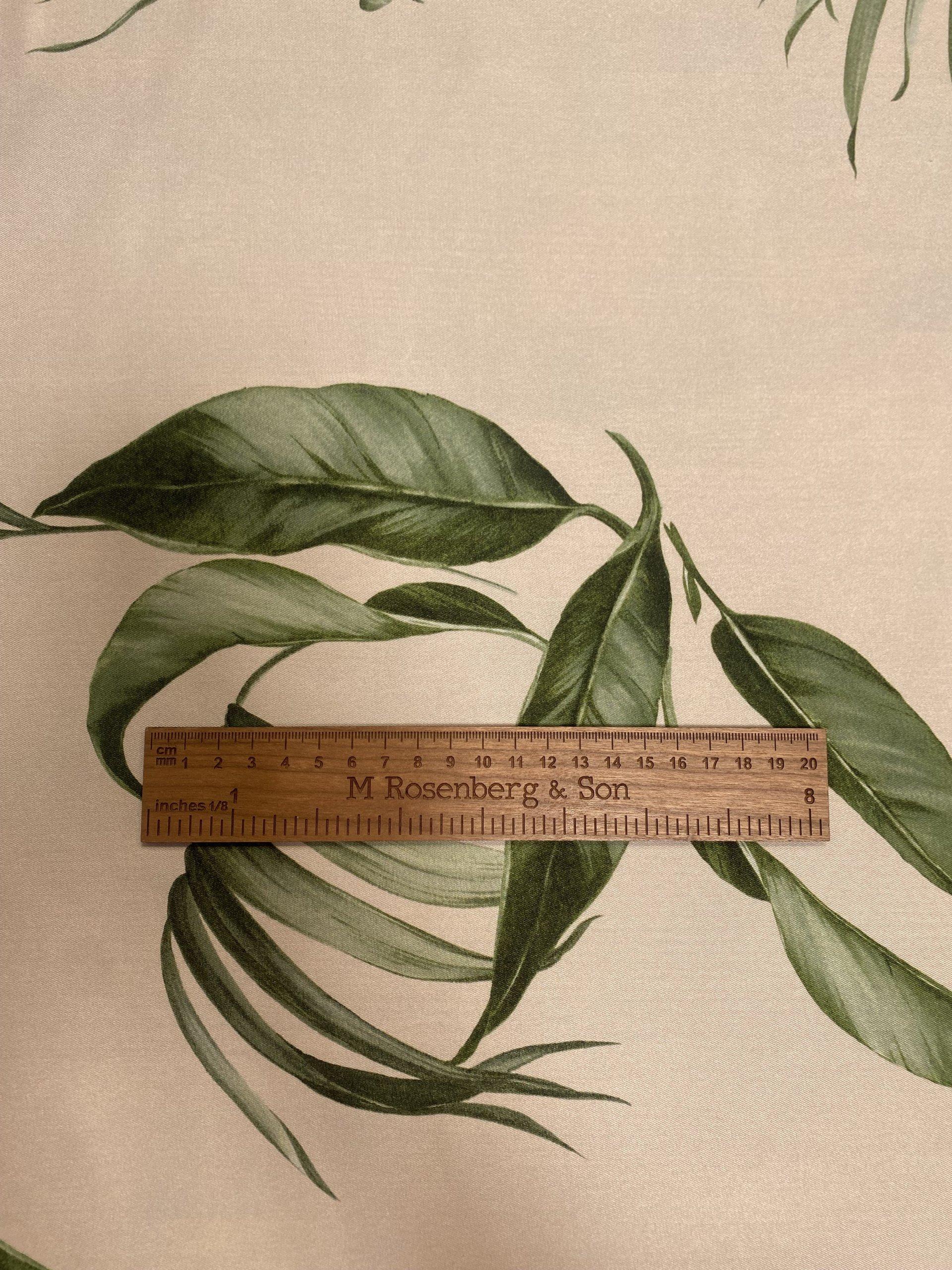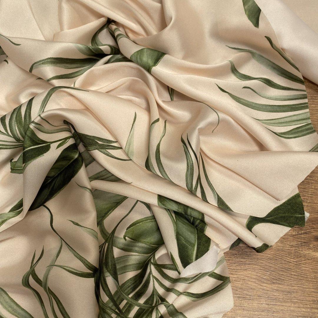 Italian Dreamy Leaves is 150cm wide. This is a stunning, subtle, medium twill weight polyester with a gorgeous fluid drape. This fabric is perfect for maxi dresses, jumpsuits, wide leg trousers, shift dresses, shirt dresses, tops, kaftans and so much more. Italian Dreamy Leaves is ideal for day to evening wear. This is a truly beautiful fabric- the true colour way is shown on the mannequin.
