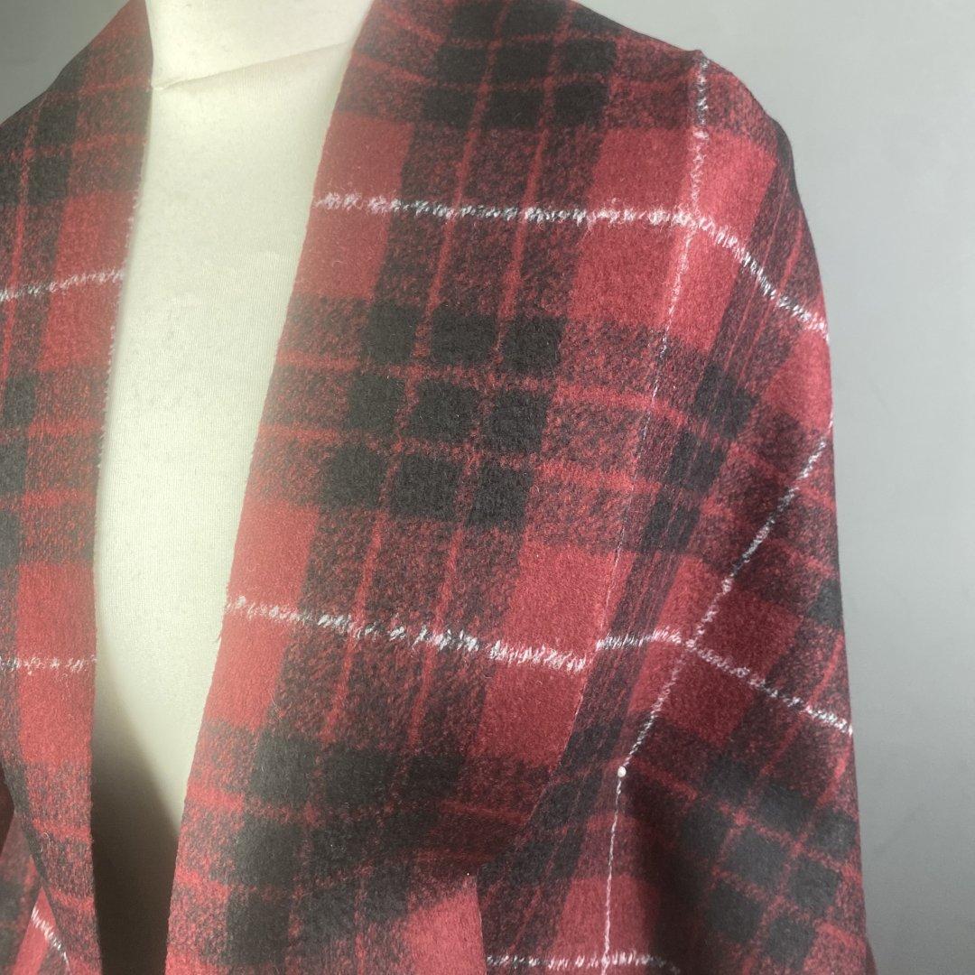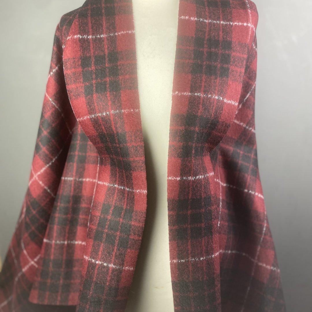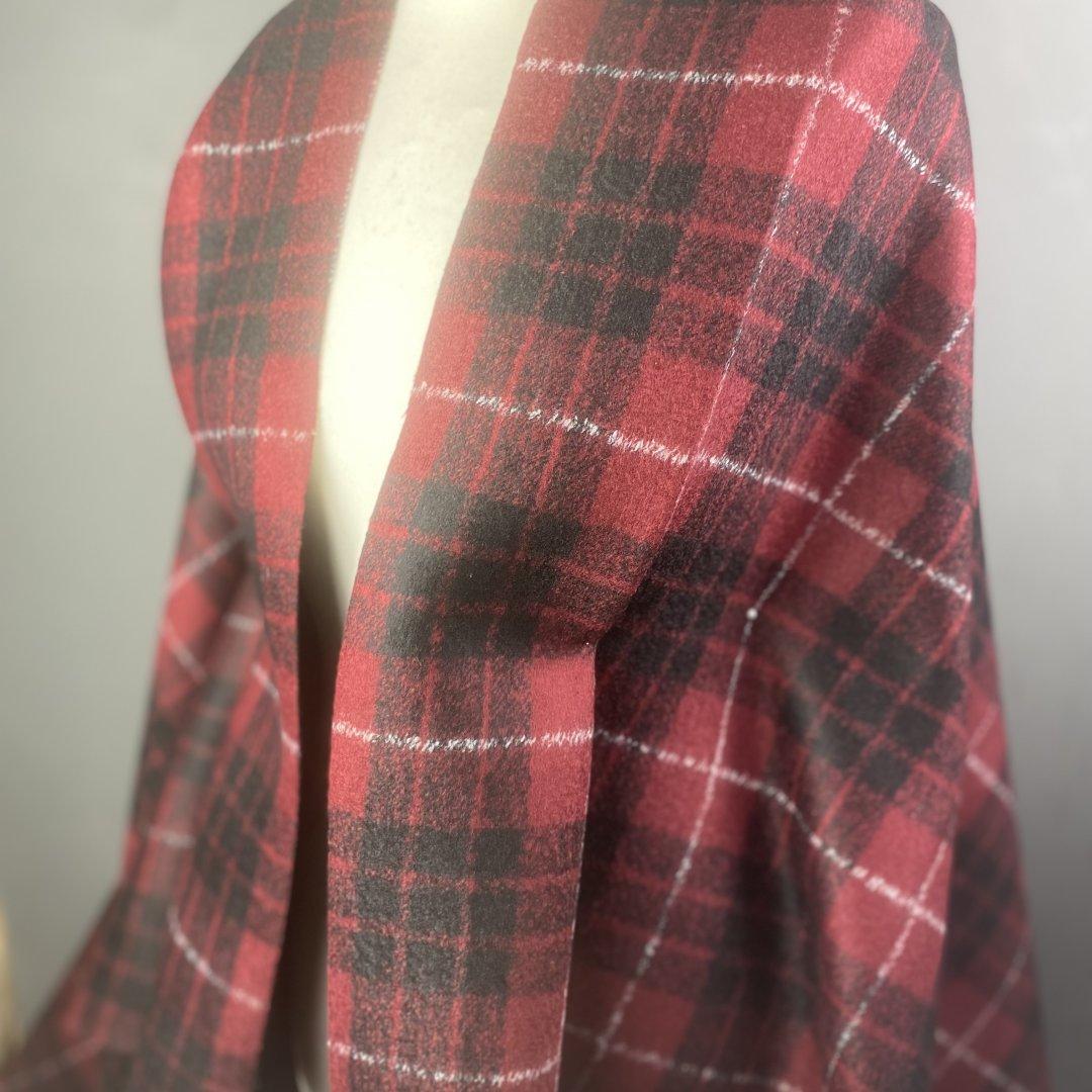 Italian Fashion Bonded Reversible Jacketing is 150cm wide. This is a gorgeous ‘scuba like’ fabric with a classic timeless red, black and white print on one side and a plain black on the other side. This cloth was made for wrap coats, jackets, shift dresses and more. Very easy to sew as it doesn’t fray. Nothing haunts you like the fabric that you didn’t buy…