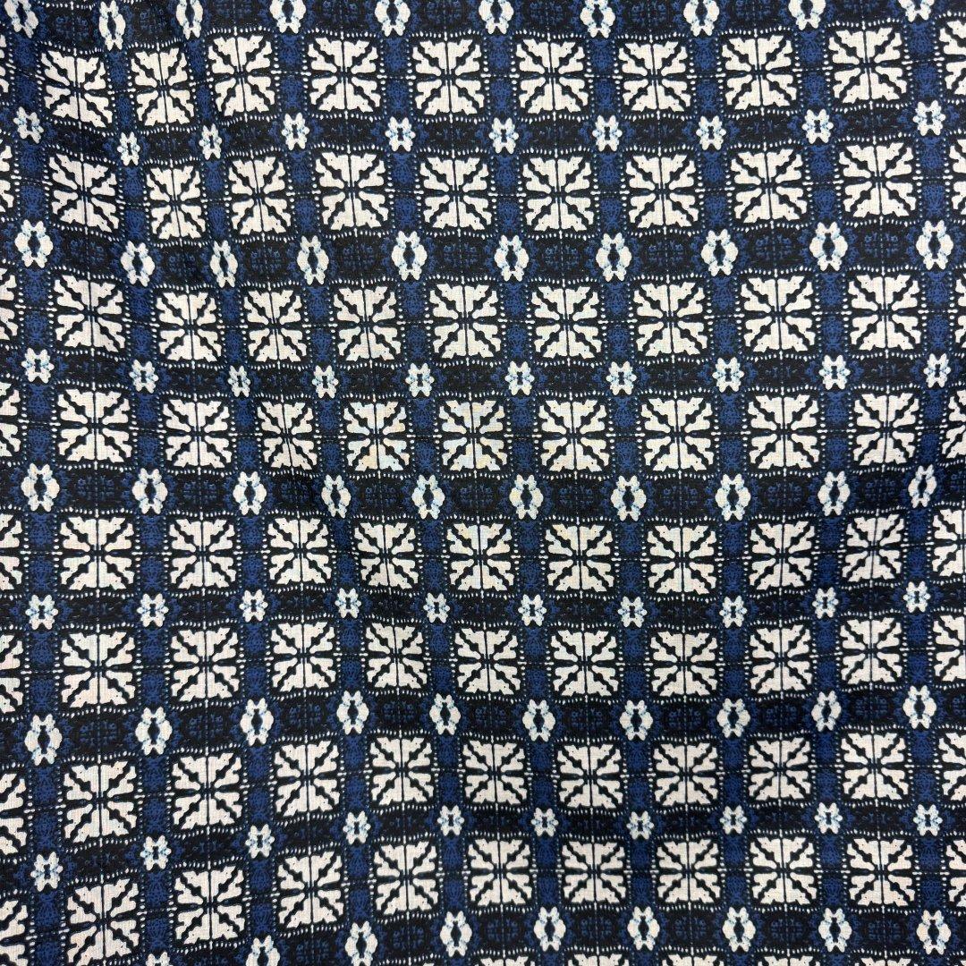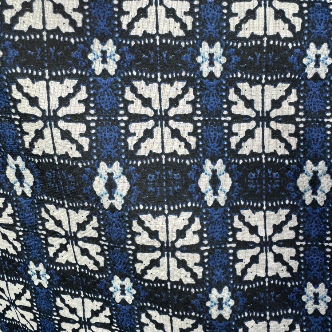 Italian Fine Lawn Tiles is 140cm wide. This is a stunning one of a kind printed fine lawn cotton. The movement and texture of this cloth is like no other fine lawn we have had. The quality is impeccable which you can feel  instantly as you move the fabric. The print and colour choice will create a chic and stylish look that is perfect for everyday wear.  Make this a staple in your spring/ summer wardrobe.