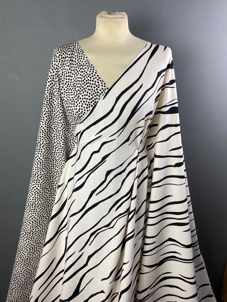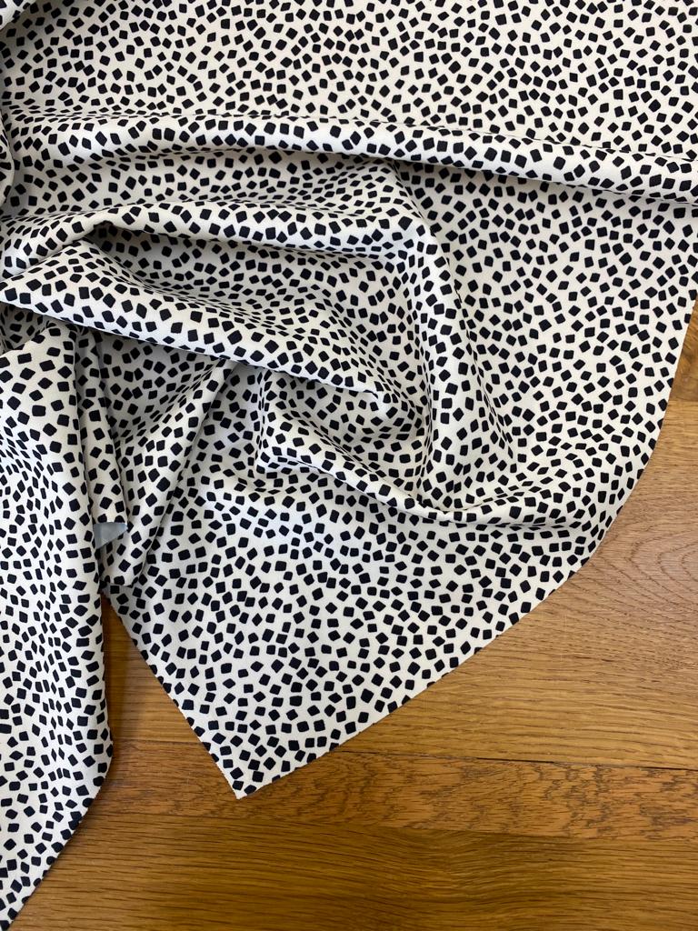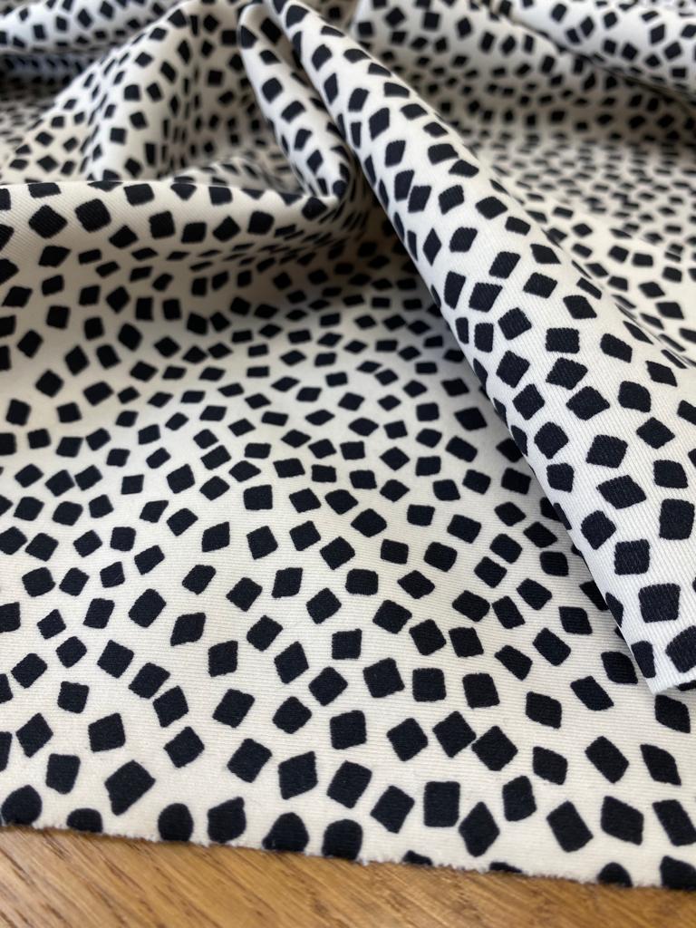 Italian Fine Scuba 5 is 145cm, 58″ wide. Scuba is a stretch fabric that is double knit made from polyester and spandex.  It offers a small amount of a sponge like texture to the cloth. It is a pleasure to sew with as it doesn’t fray and glides between the sewing machine and your fingers. Perfect for tight dresses and skirts, box please skirts, bomber jackets, tops, leggings, tracksuits and so much more. Mix and matches well with Fine Scuba 4 as seen in the pictures.