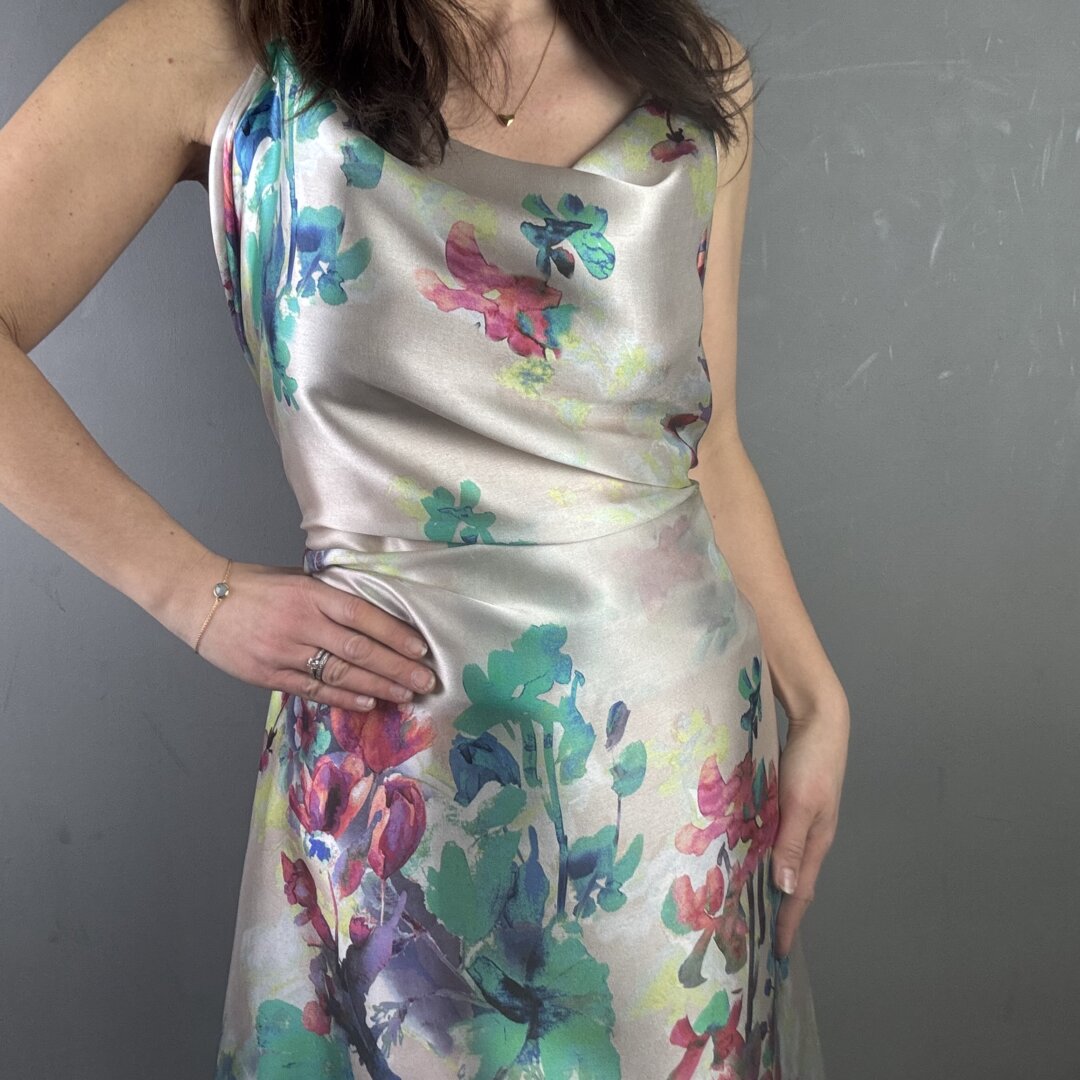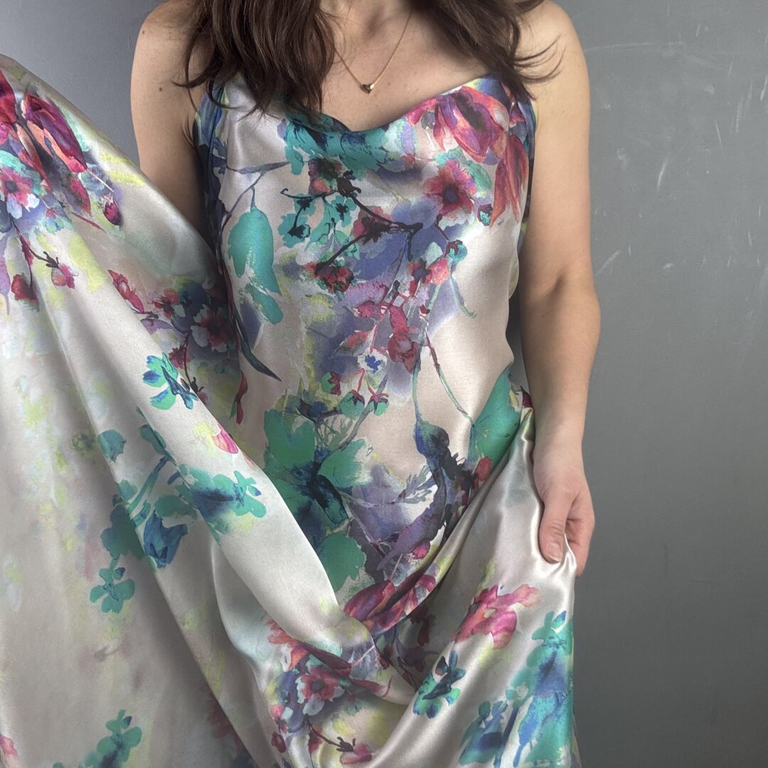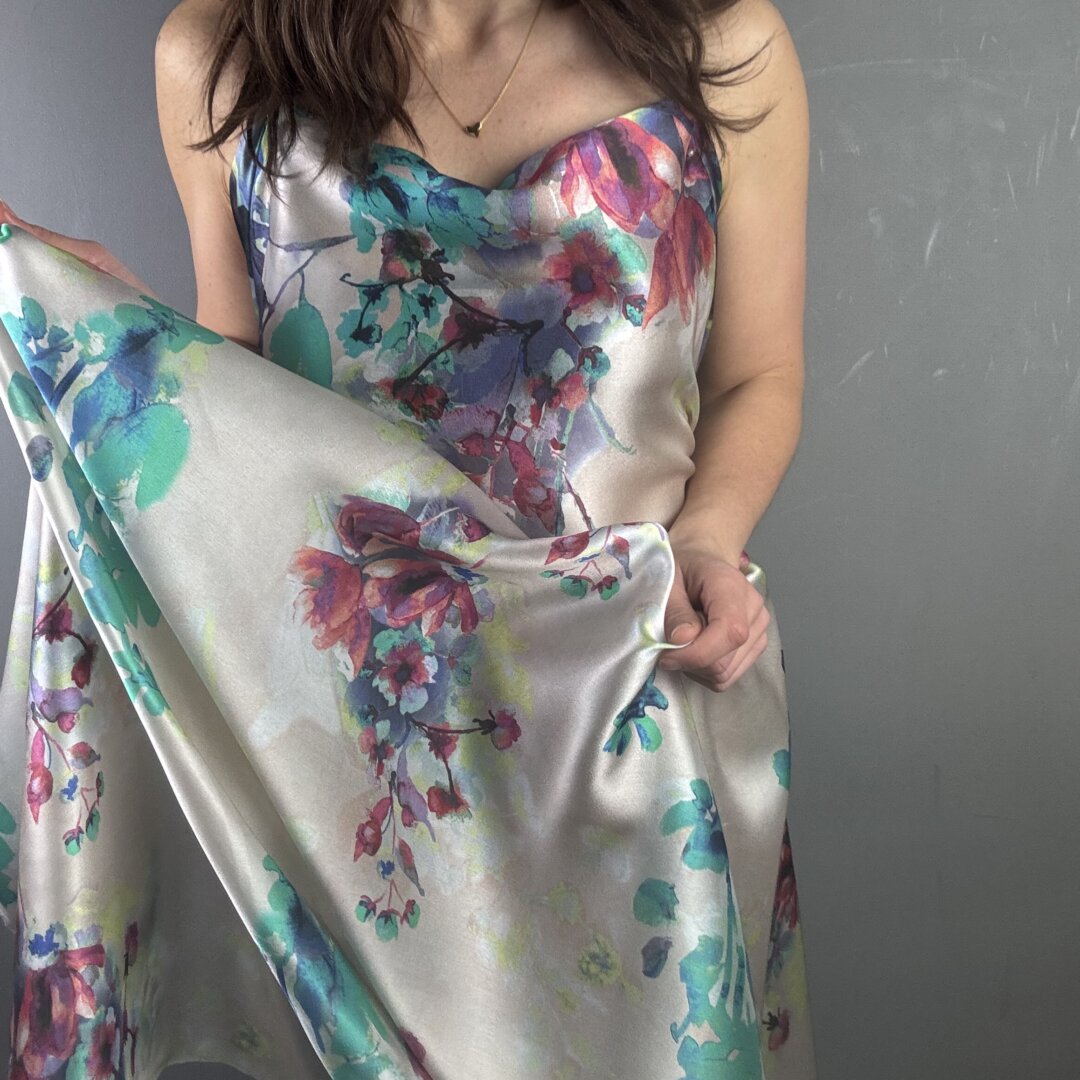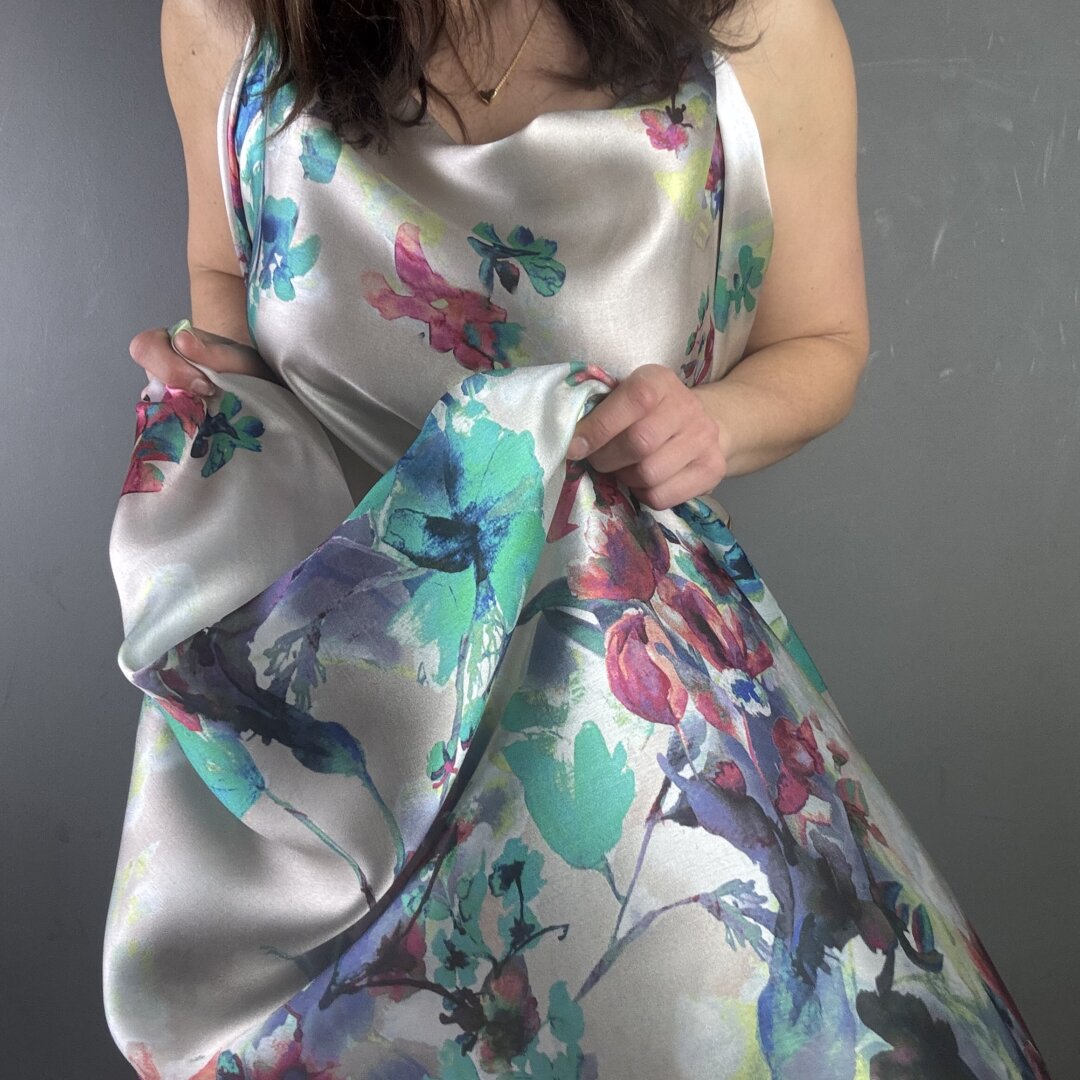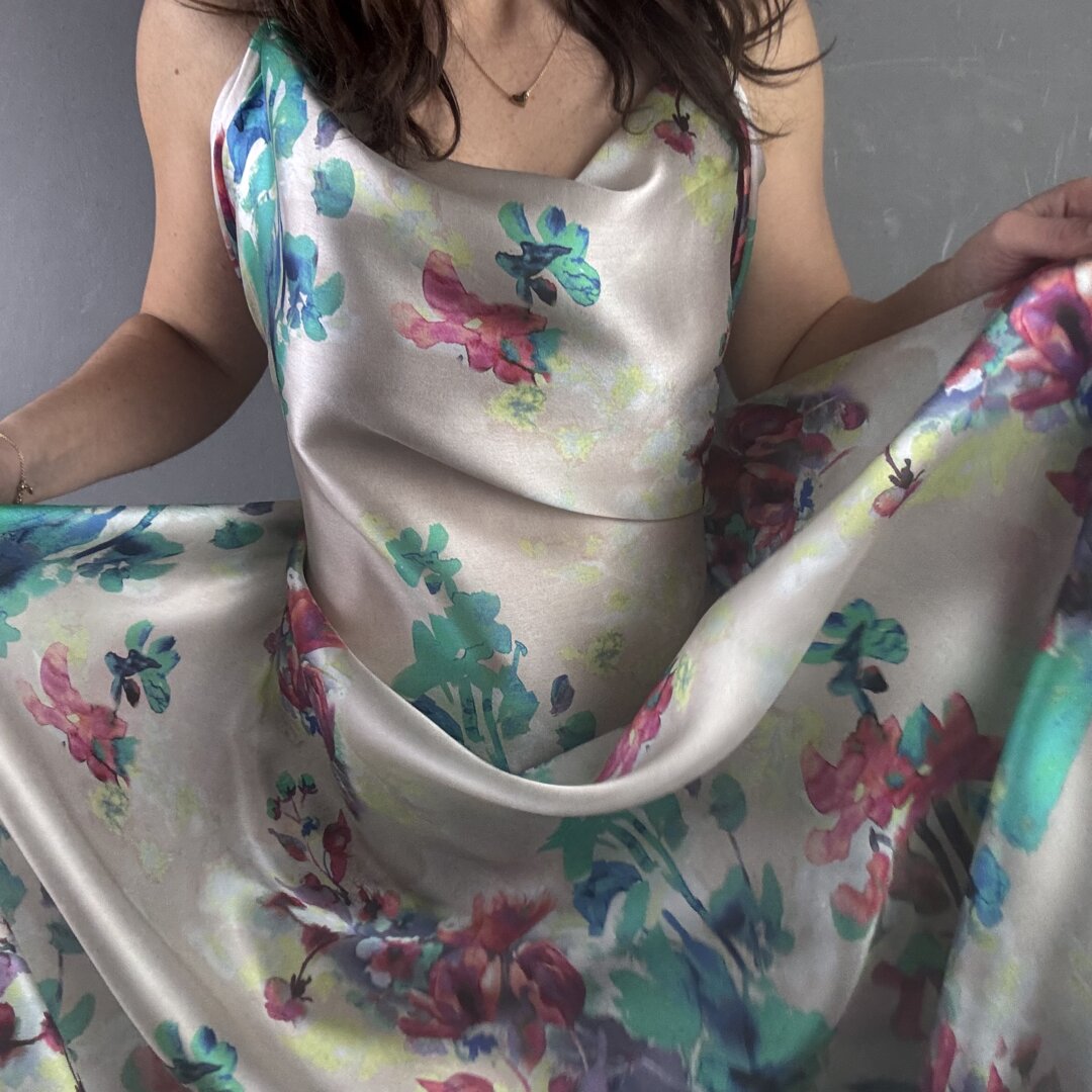 This exquisite Italian Flower Silk is a lightweight, floaty fabric with an irresistibly soft, buttery feel. It drapes effortlessly over the body, creating a graceful, fluid silhouette while feeling luxuriously smooth against the skin. A truly sensational quality silk that not only looks stunning but feels incredible to wear.