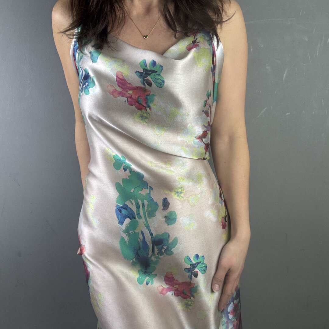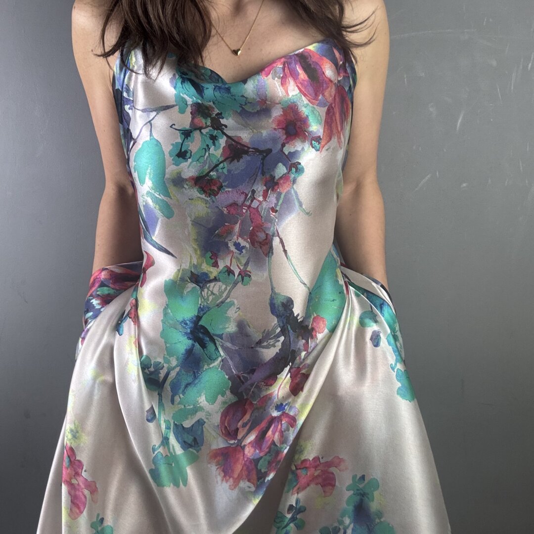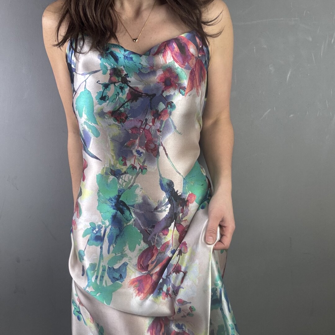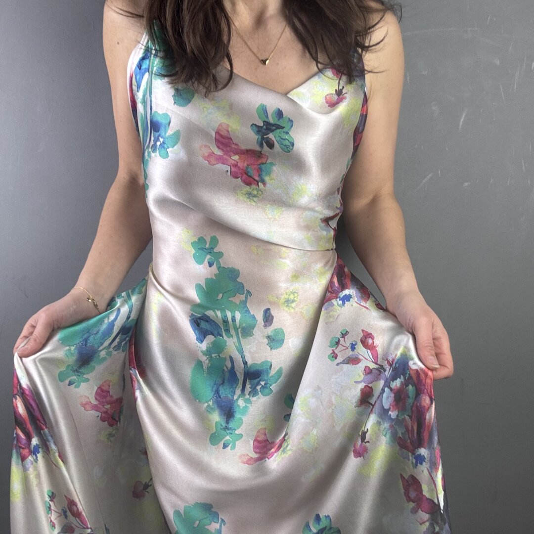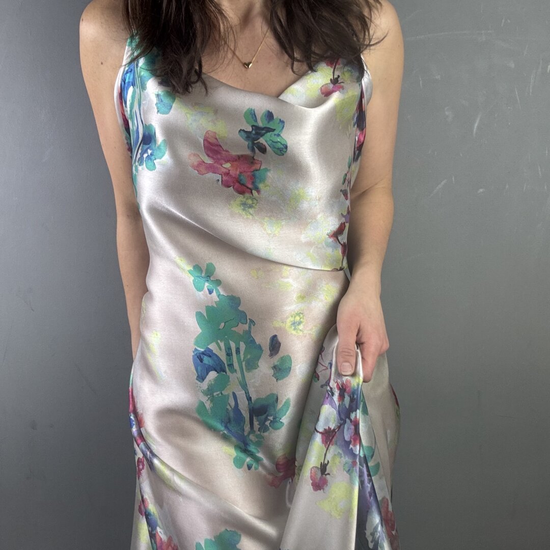 This exquisite Italian Flower Silk is a lightweight, floaty fabric with an irresistibly soft, buttery feel. It drapes effortlessly over the body, creating a graceful, fluid silhouette while feeling luxuriously smooth against the skin. A truly sensational quality silk that not only looks stunning but feels incredible to wear.