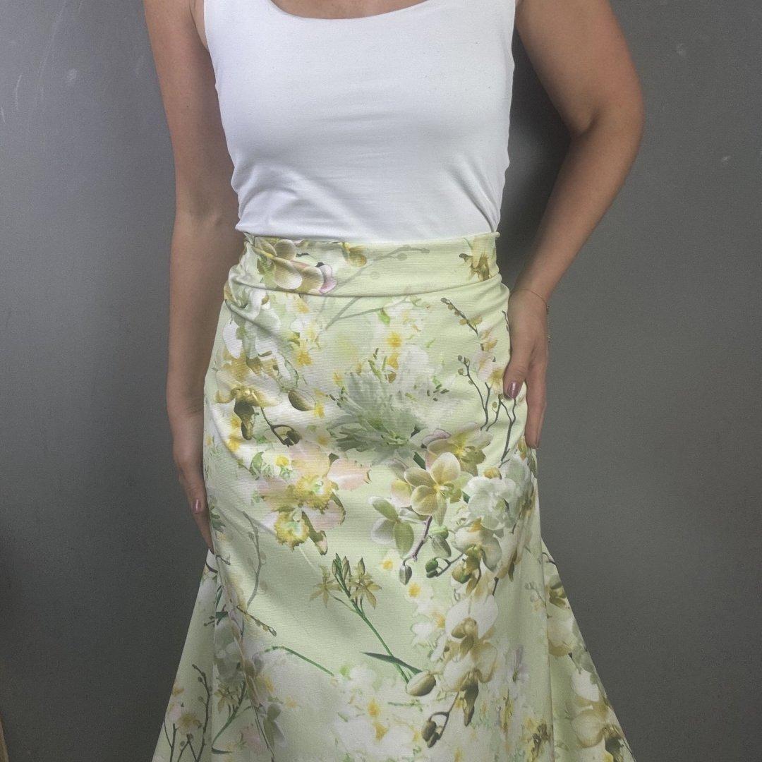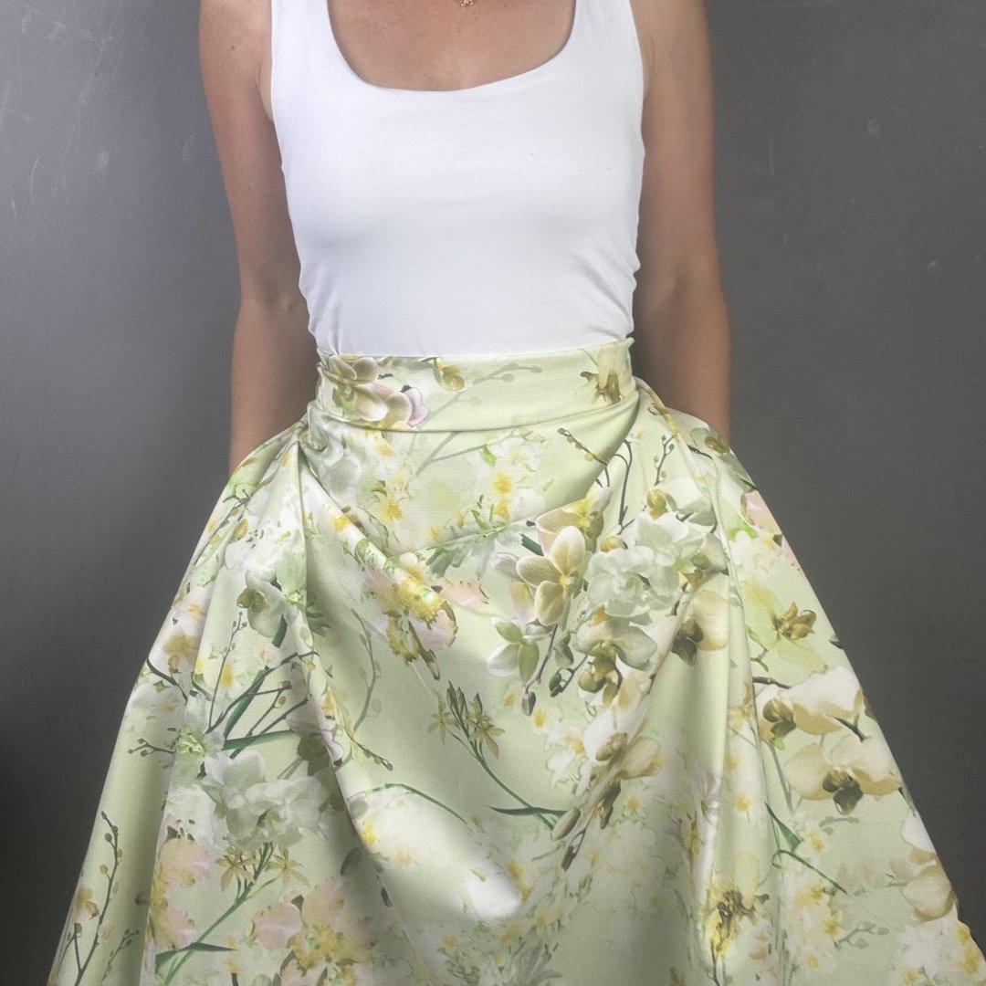 Italian Lime Flowers is suitable for circle skirts, A- line skirts and dresses, shift dresses, summer weight jackets, box pleat skirts and so much more. This very special fabric is suitable for day and evening wear. Enjoy this stunning Italian cotton.