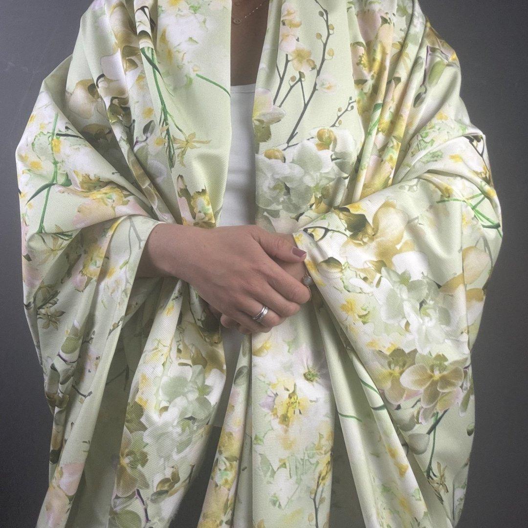 Italian Lime Flowers is 140cm wide. This is a sensational quality heavy cotton from a very well known Italian fashion house. Italian heavy cotton will be a pleasure to sew and create your go- to statement summer garment. This cloth has a grosgrain texture meaning it’s a strong and durable cloth…. there is also an added bonus of a small amount of stretch. Watch the video to ‘feel’ the cloth.