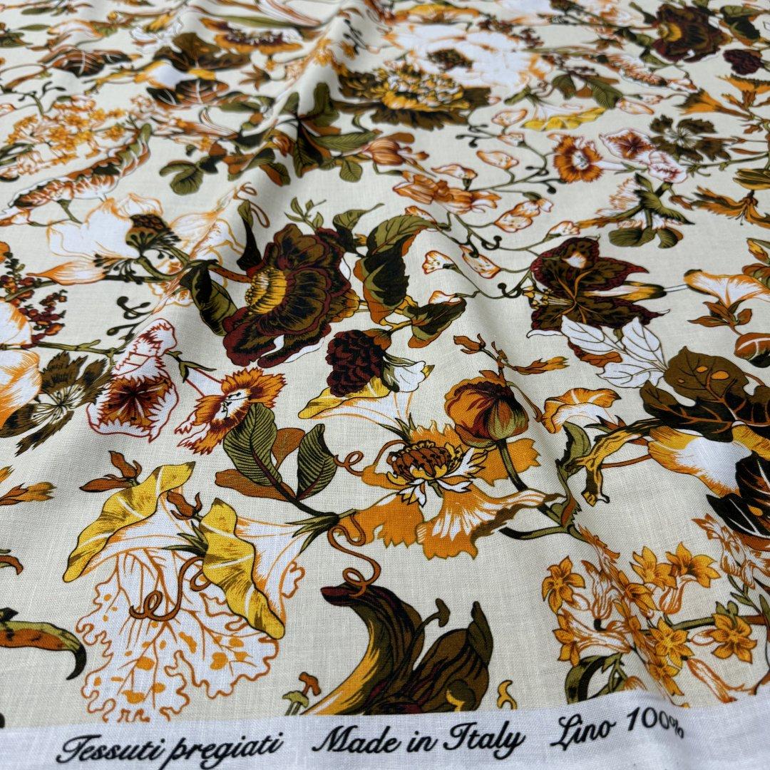 Italian Linen and Rayon Autumn Life is ideal for day and evening wear. This is a very special Italian cloth that will create a statement garment. This fabric will see you from summer into autumn nicely as an everyday blouse or dress.