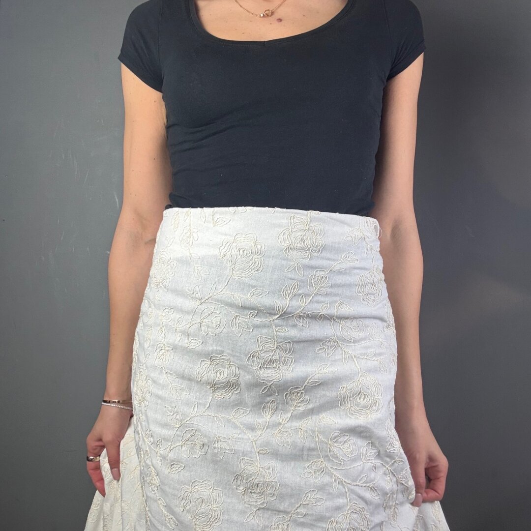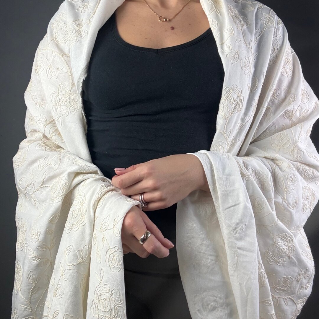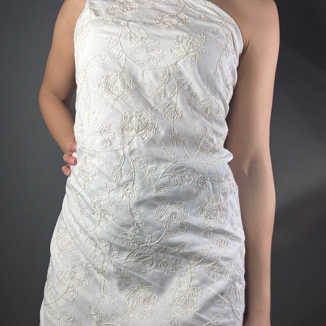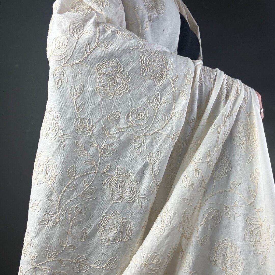 Delicate floral embroidery adds a refined, feminine touch, elevating the fabric from simple to standout. Light, airy, and comfortable against the skin, it’s perfect for creating everyday pieces with a sophisticated edge.