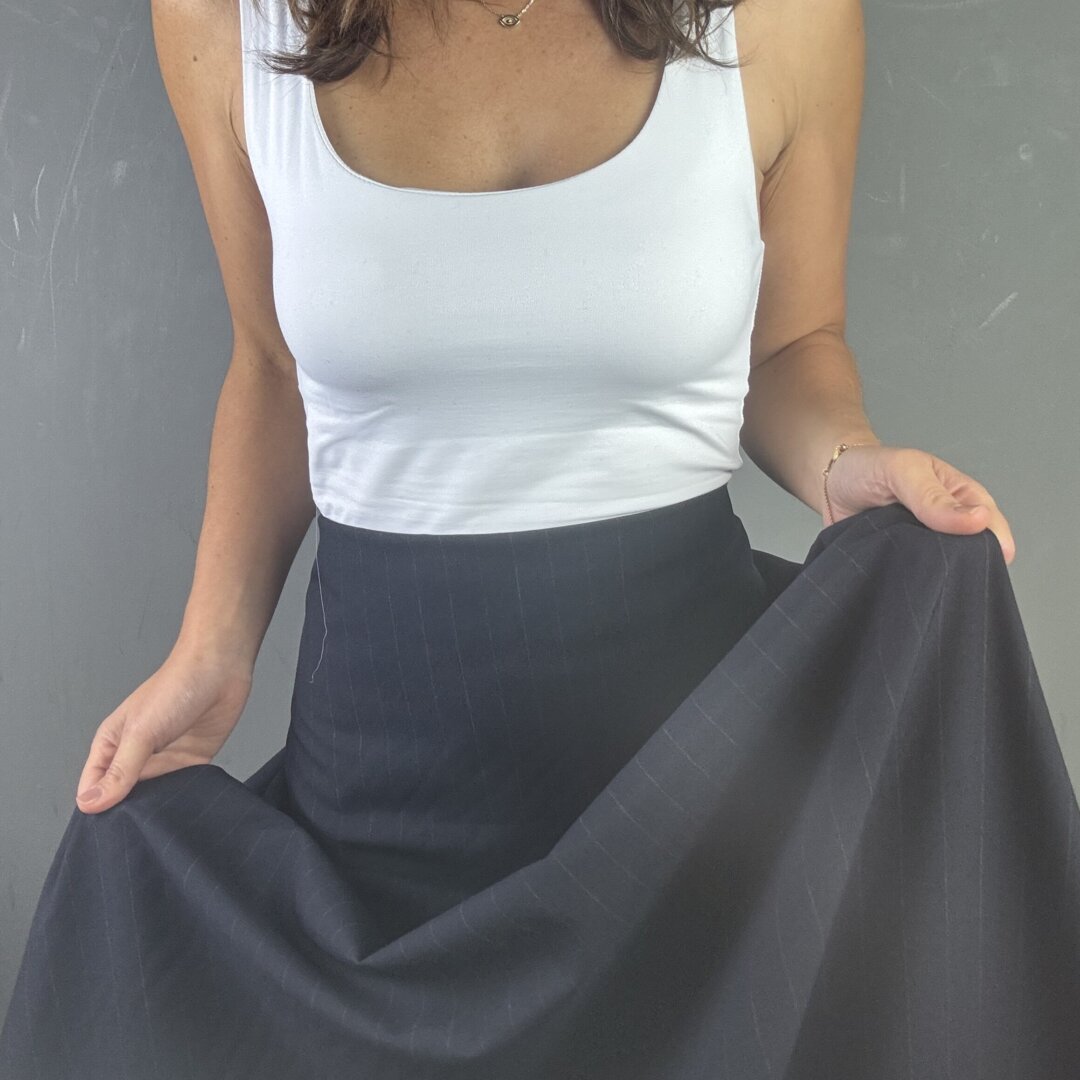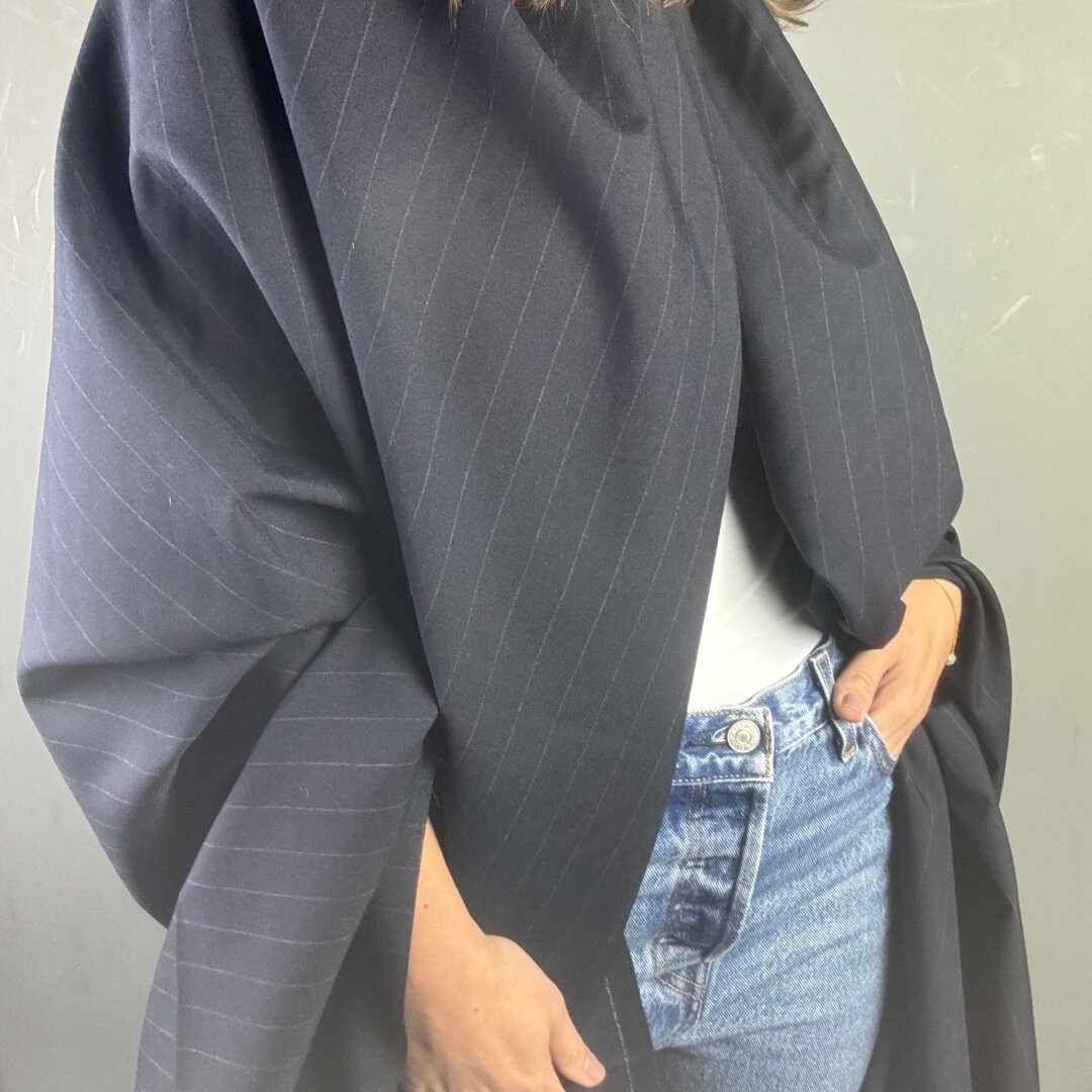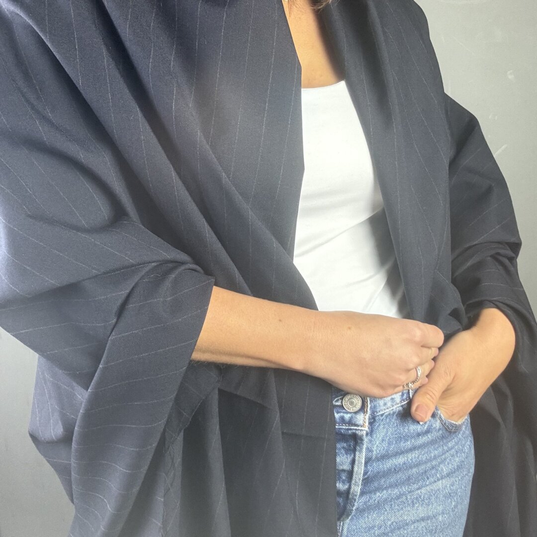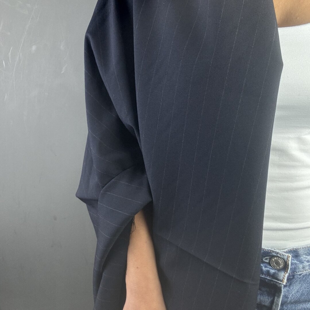 This Italian navy pinstripe fabric is a classic with a twist — powerful yet elegant, it’s the kind of fabric that instantly elevates your style. Made from a high-quality blend of 80% wool and 20% rayon, it offers both structure and fluidity, making it perfect for a wide range of garments. At 150 cm wide, it’s ideal for tailored jackets, trousers, jumpsuits, skirts, tops, dresses, and more. Whether you’re sewing tucks, pleats, or gathers, this fabric will hold shape beautifully while remaining comfortable to wear. A timeless staple for your winter wardrobe.