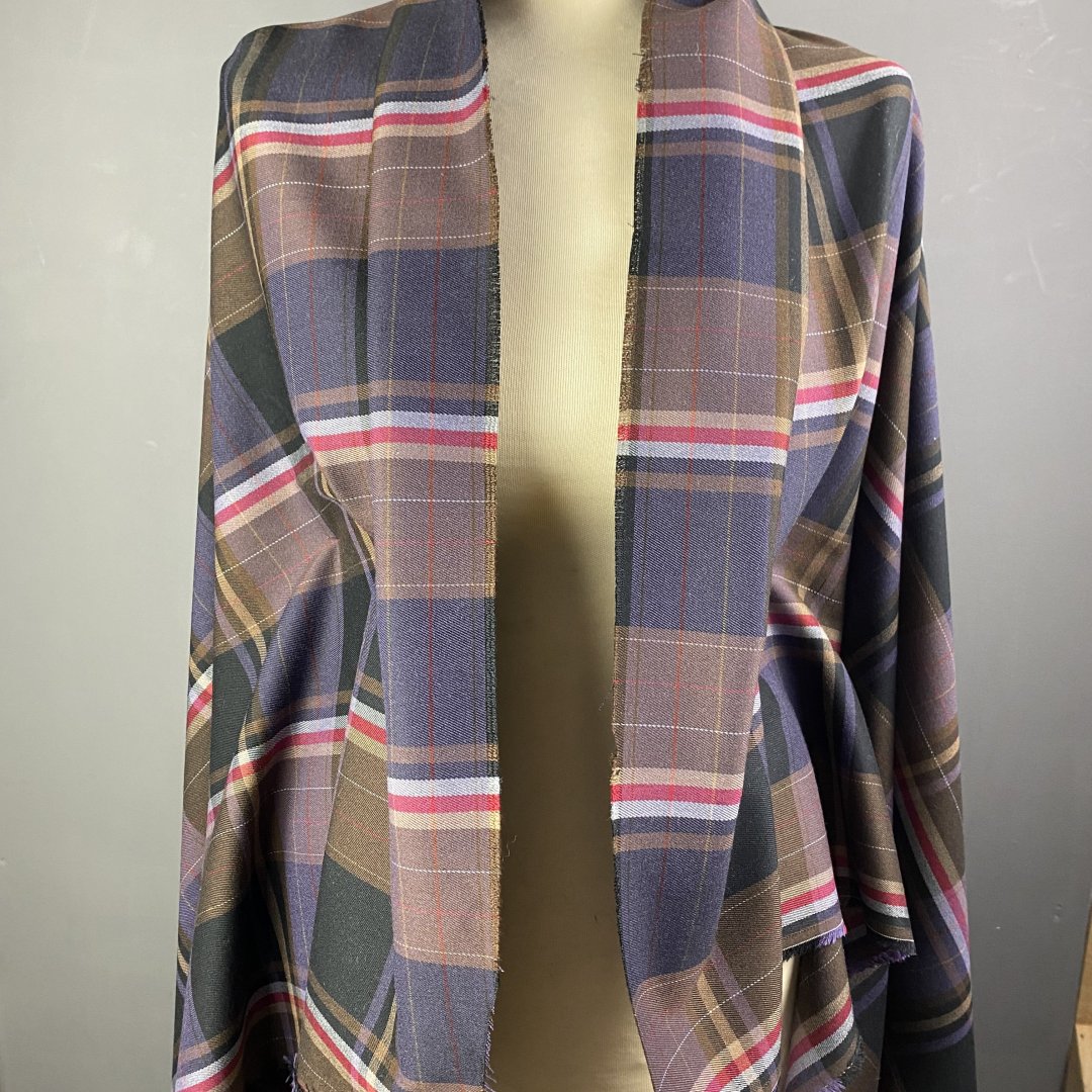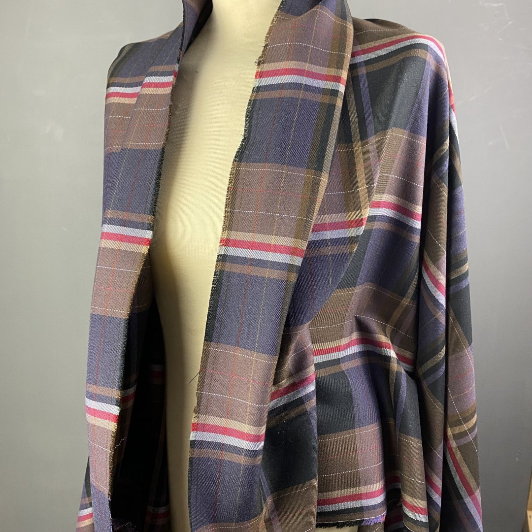 Italian Poly Viscose is 145cm wide. This light weight cloth has a small amount of stretch to it making this fabric ideal for shift dresses, skirts, Chanel inspired jackets, coats and more. This beautiful cloth has complementing colours and a heavy drape.
