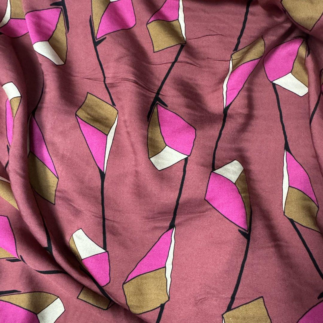 Italian Rayon Abstract Flowers is 150cm wide. This is a beautiful weight cloth with a gorgeous fluid drape. Suitable for tops, shirts, tunics, skirts, dresses, wide leg trousers, kaftans, kimonos and so much more.