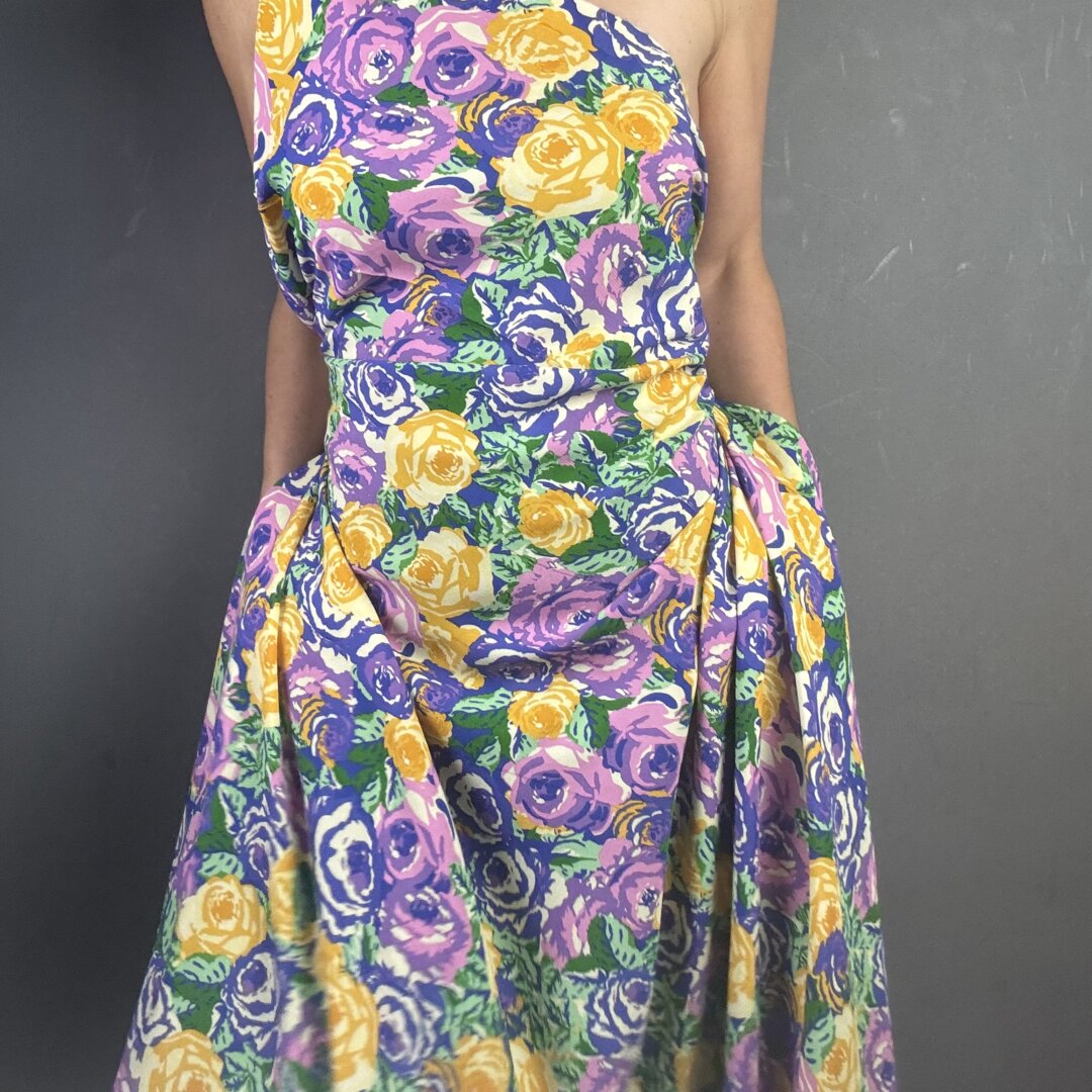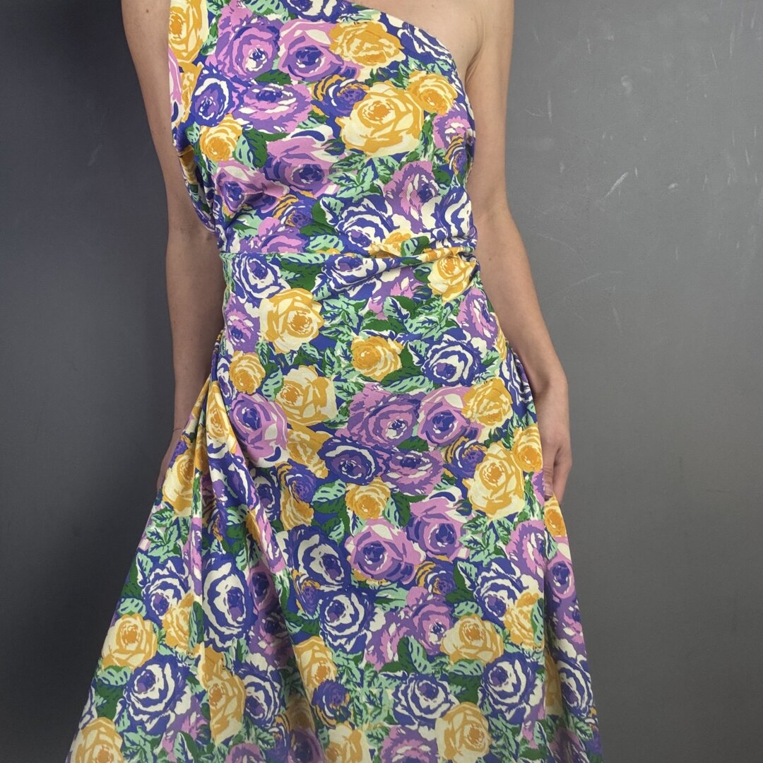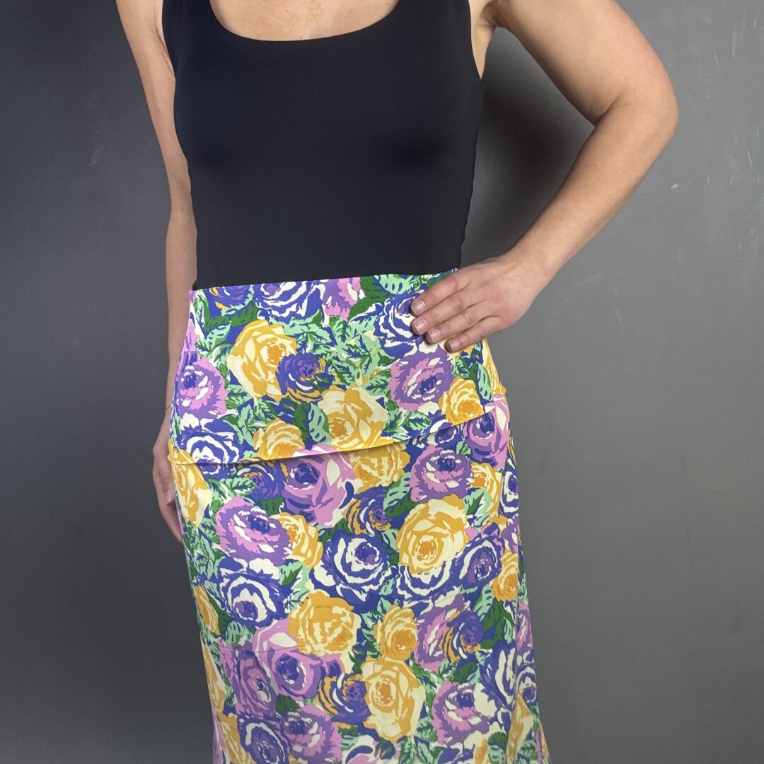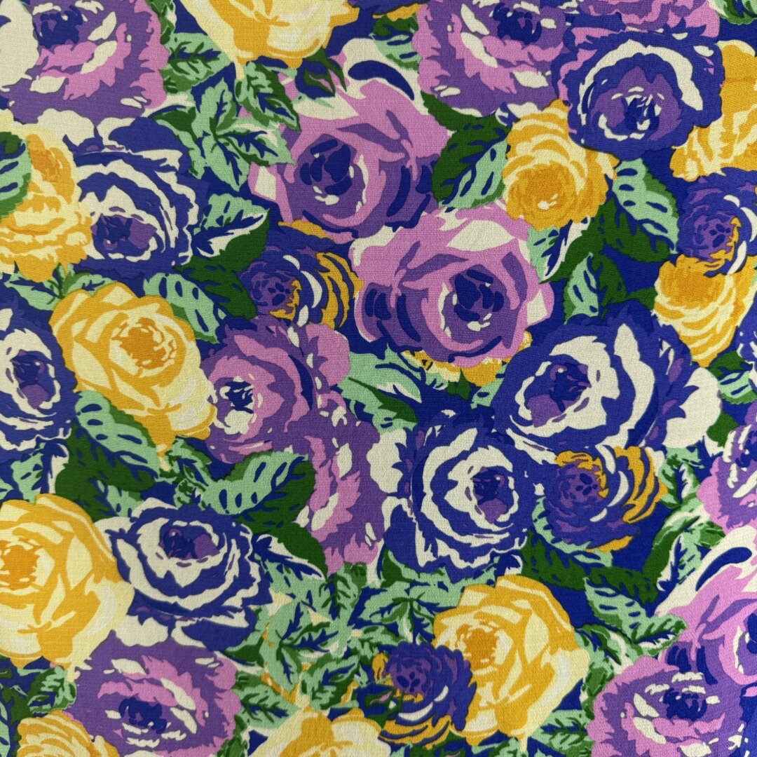 This Italian rayon colourful floral fabric is 135cm wide and features a bold, bright, and busy flower print that truly makes a statement. With a fluid handle and a beautifully heavy drape, it flows effortlessly and hangs perfectly when worn.