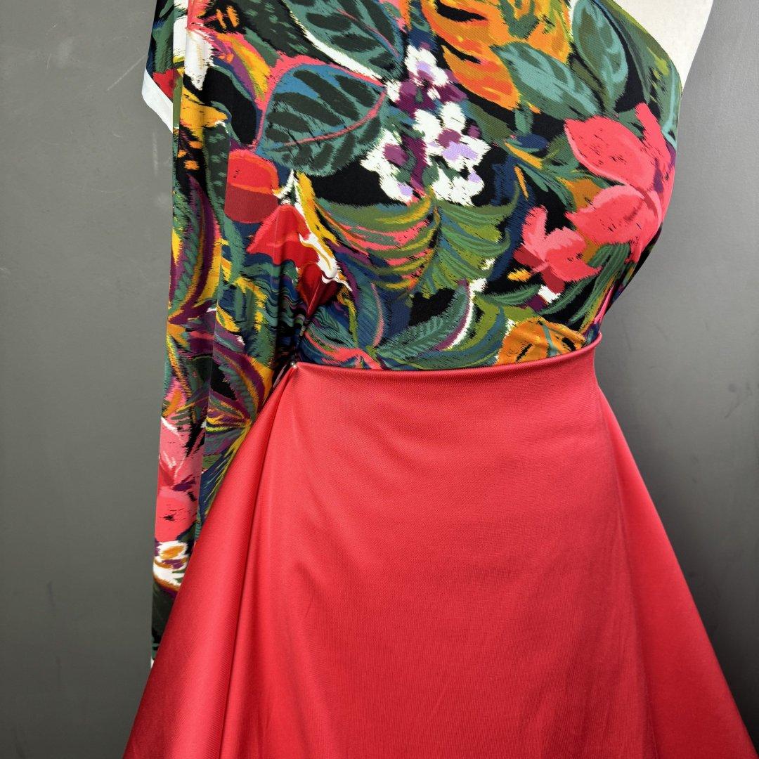 Italian Rayon, Cotton, Lycra Sateen mix and matches well with Italian Polyester Elastane Jungle Panel.