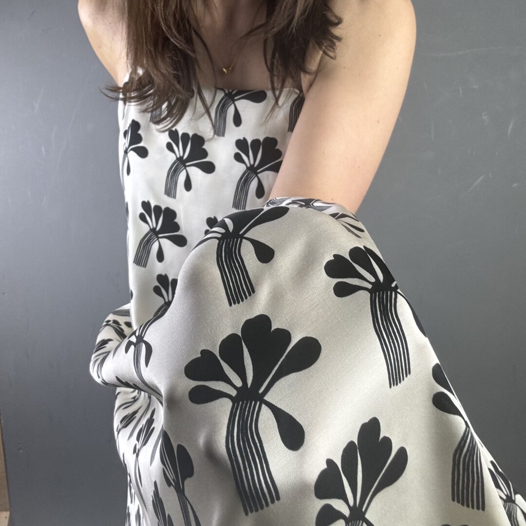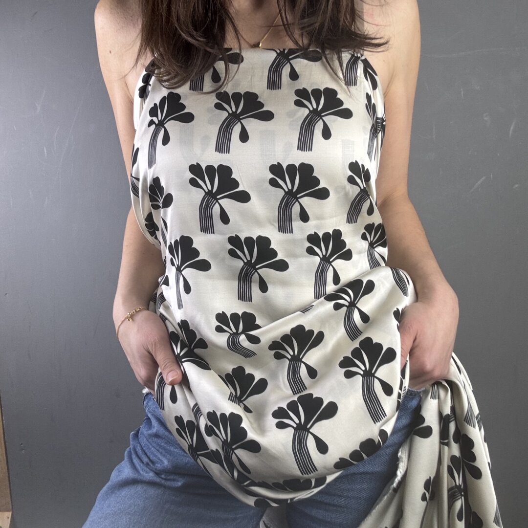 Italian Rayon Creative Trees is a beautifully lightweight fabric, 145cm wide, with a soft, fluid drape that moves effortlessly. Featuring an elegant ivory and black tree design, it’s perfect for creating floaty skirts, dresses, wide-leg trousers, jumpsuits, shirts, and more.