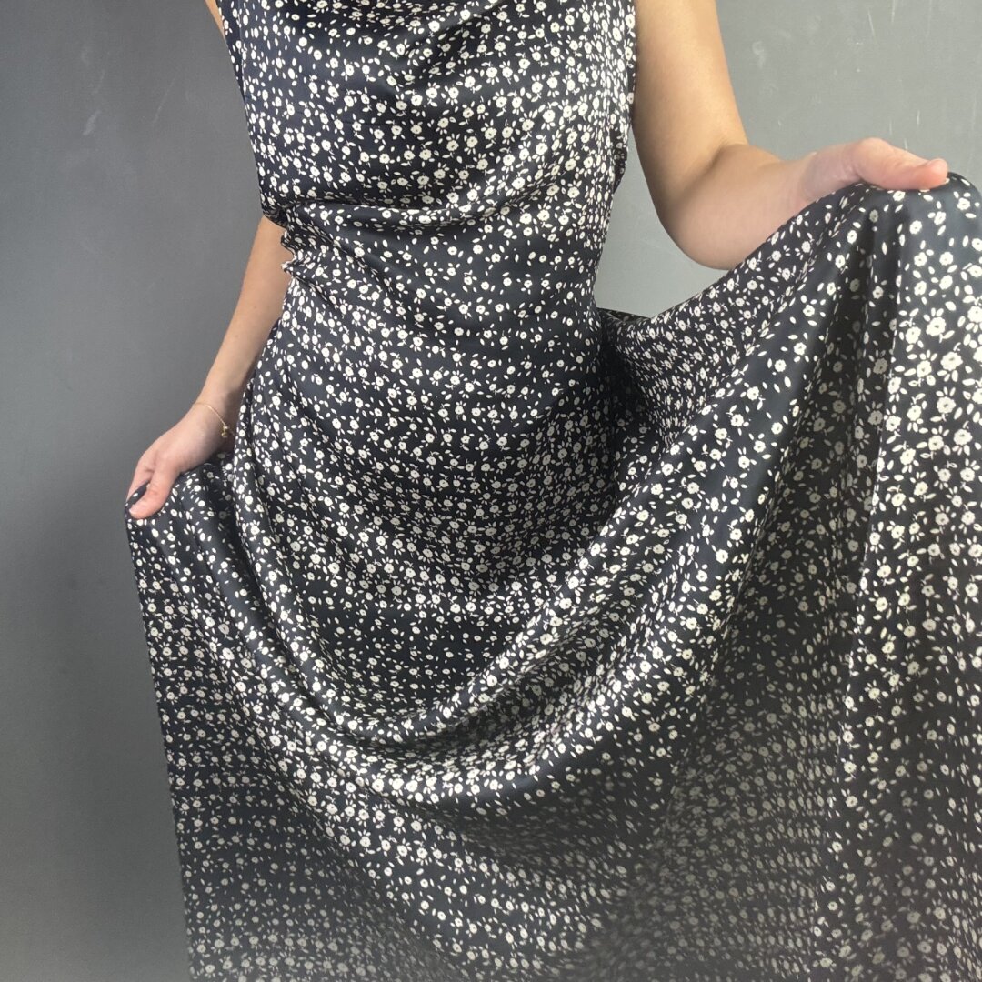 This beautiful Italian rayon features a tiny, busy floral print on a lightweight, fluid base. Soft, floaty, and drapey, it feels wonderful against the skin and moves effortlessly with the body.